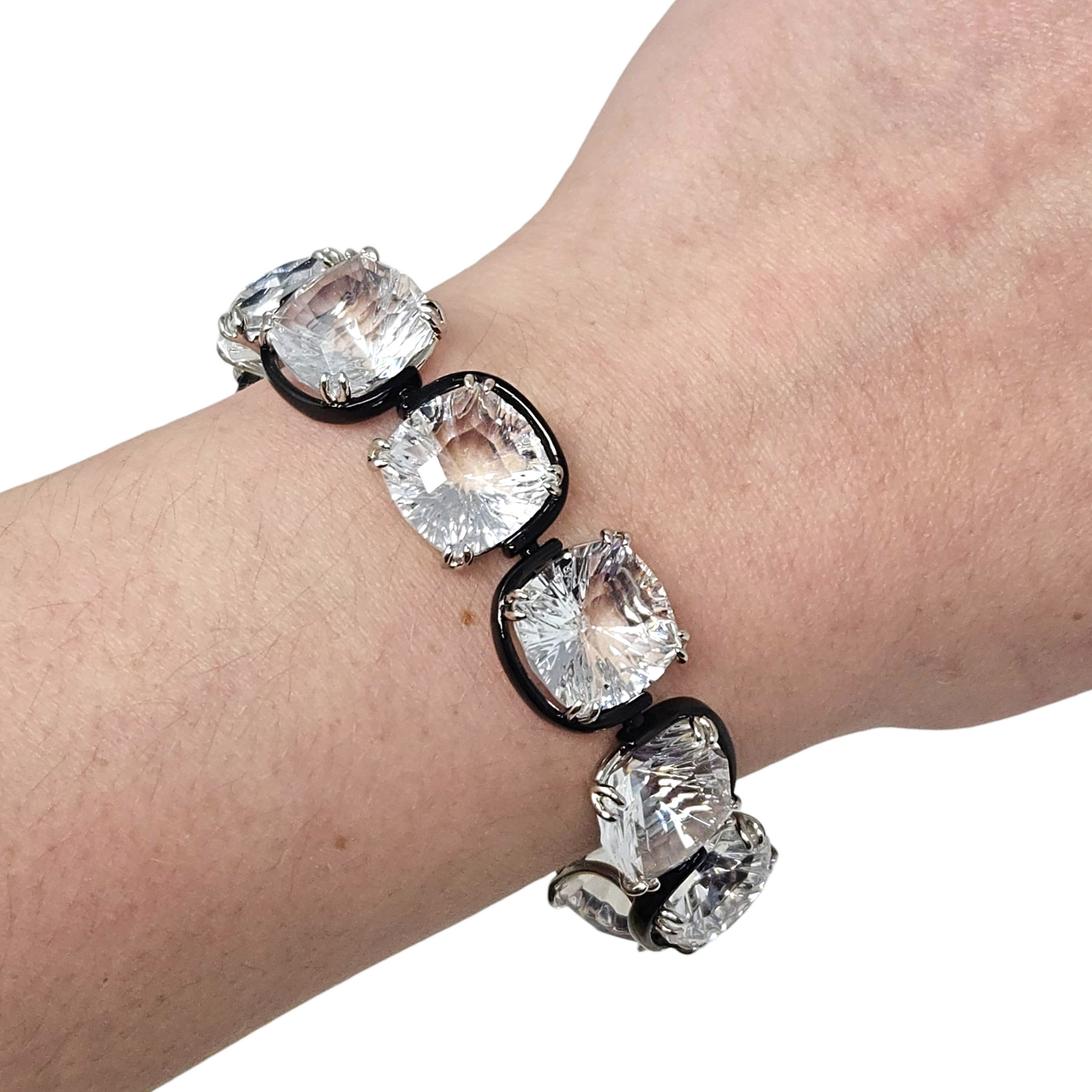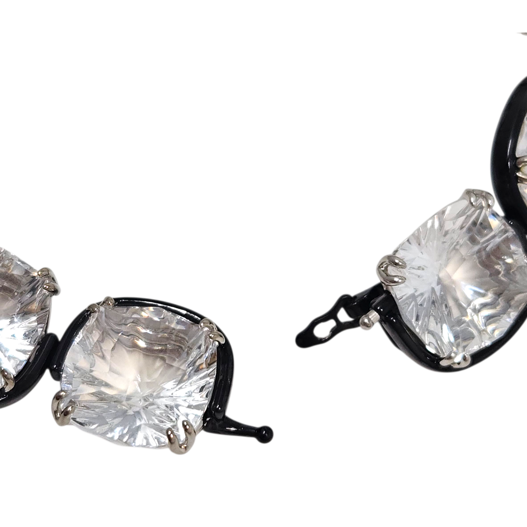 Materials: Large clear prong-set Swarovski crystals with a mixed metal frame in black & silver.