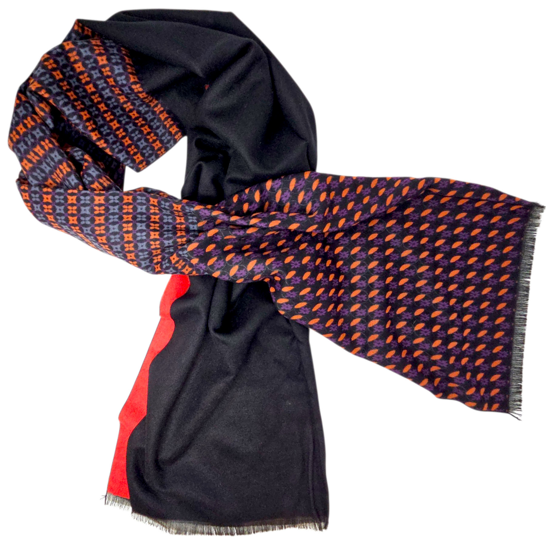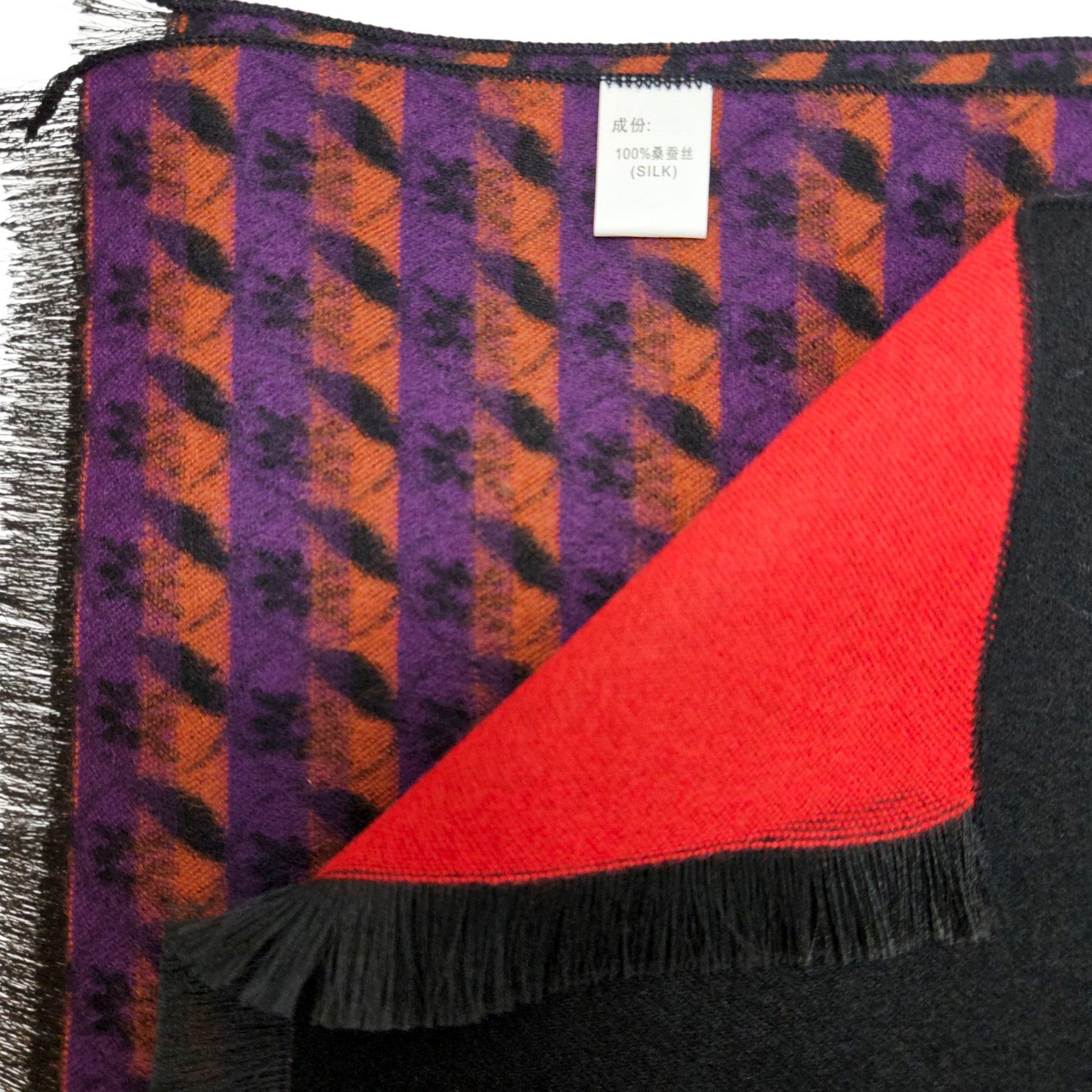 Materials: Black, red, orange, purple, & grey 100% silk.