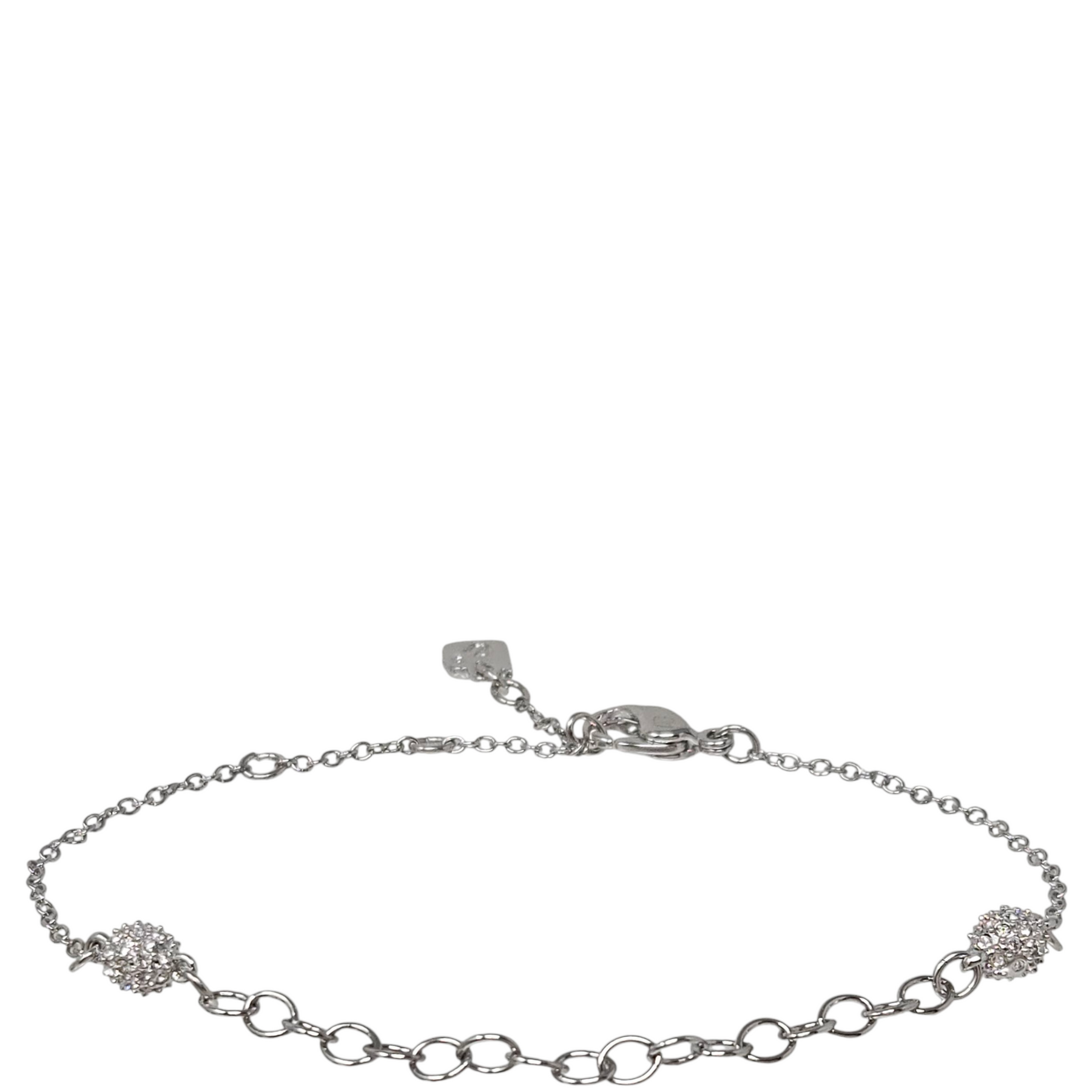 Materials: Rhodium-plating with two clear Swarovski crystal-pavé ball accents.