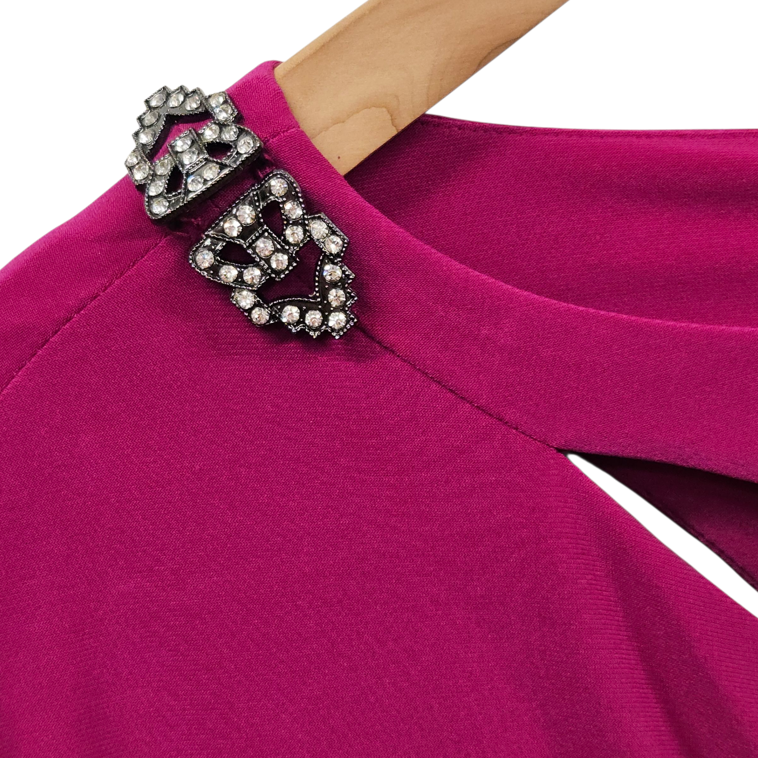 Approximate measurements: 33" bust, 30" waist, 38" hips, 8.5" armhole drop, 4.75" shoulders, 23" slit, 58" total length.