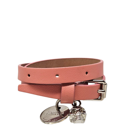 Alexander McQueen Skull-Charm Leather Wrap Bracelet