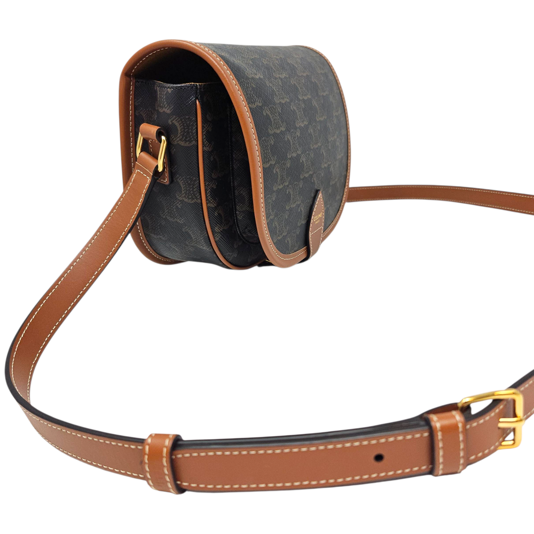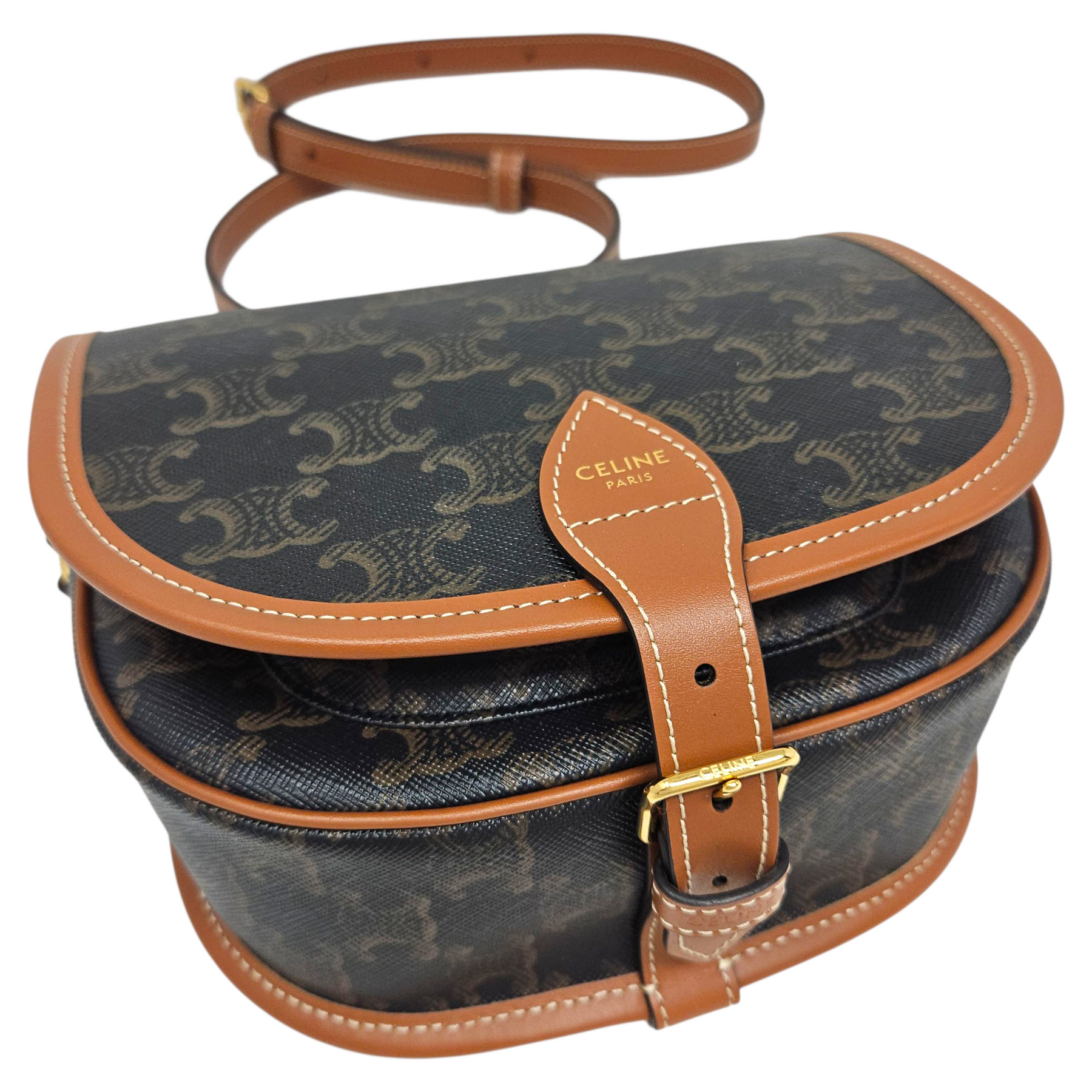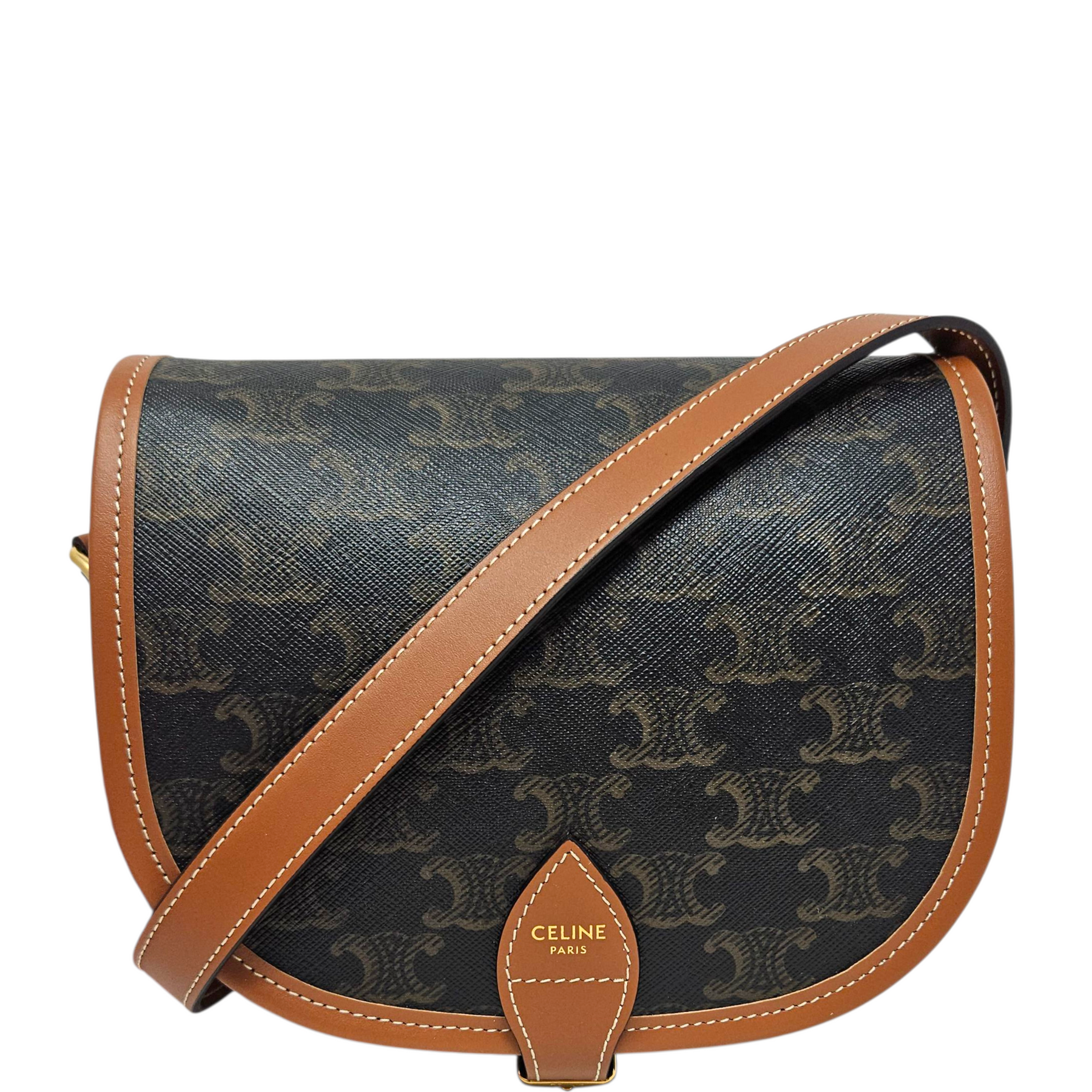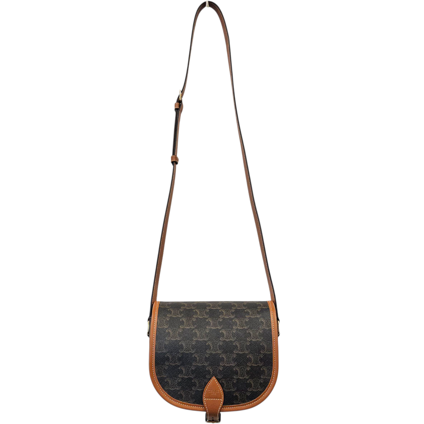 Materials: "Triomphe" coated canvas with brown leather trim, & gold-tone hardware.