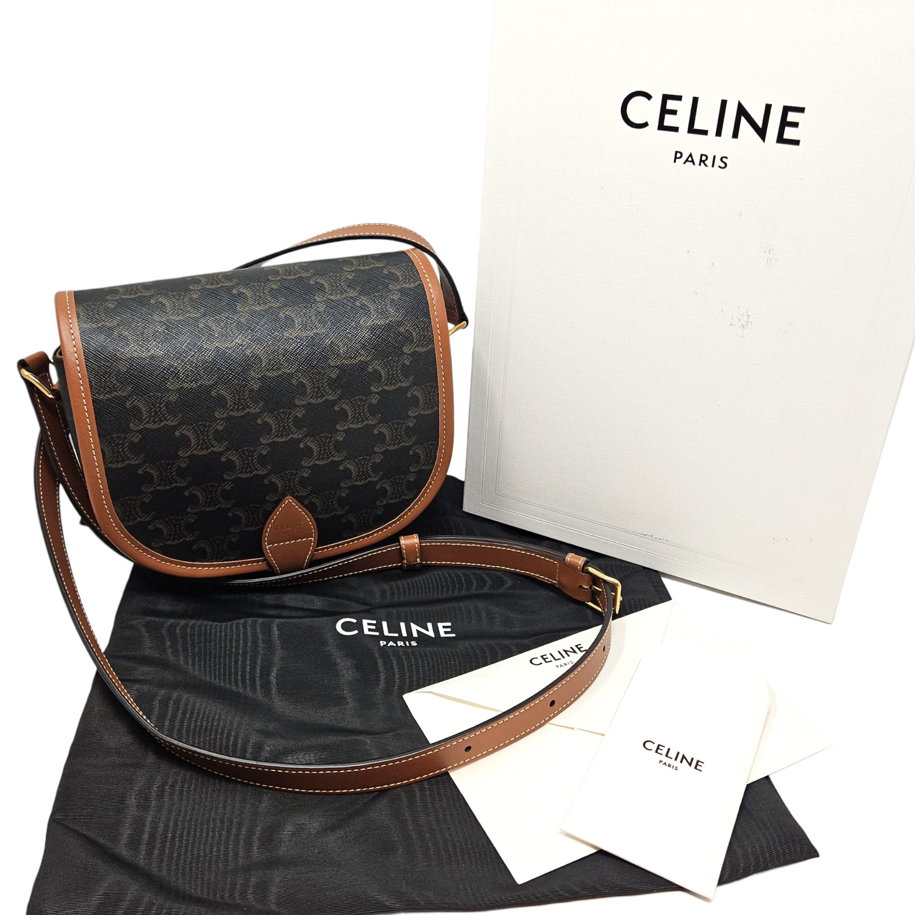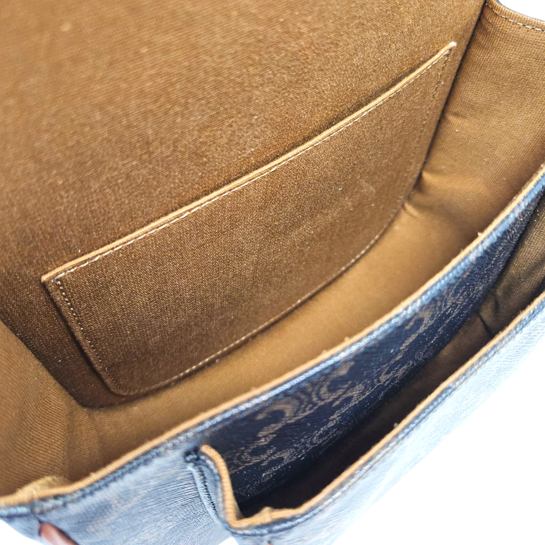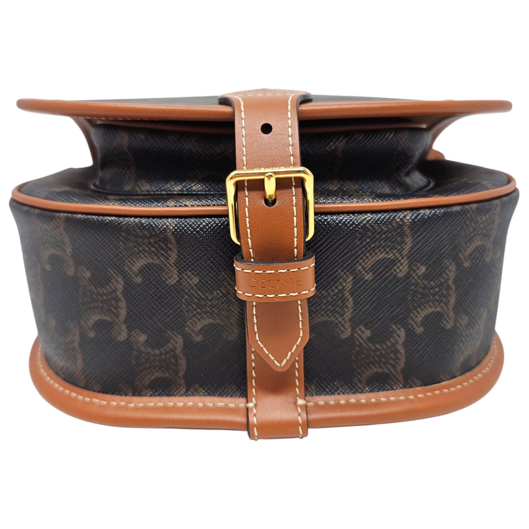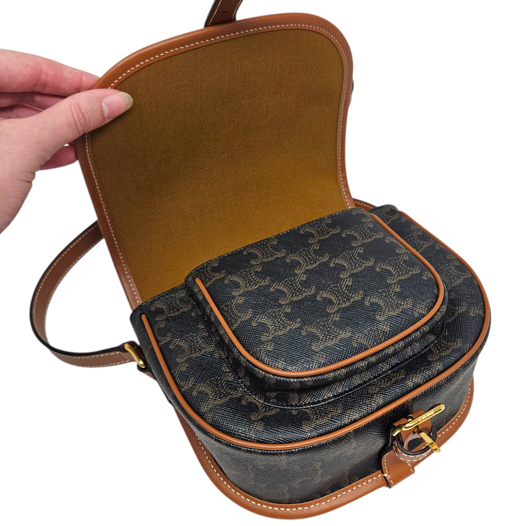 Materials: "Triomphe" coated canvas with brown leather trim, & gold-tone hardware.