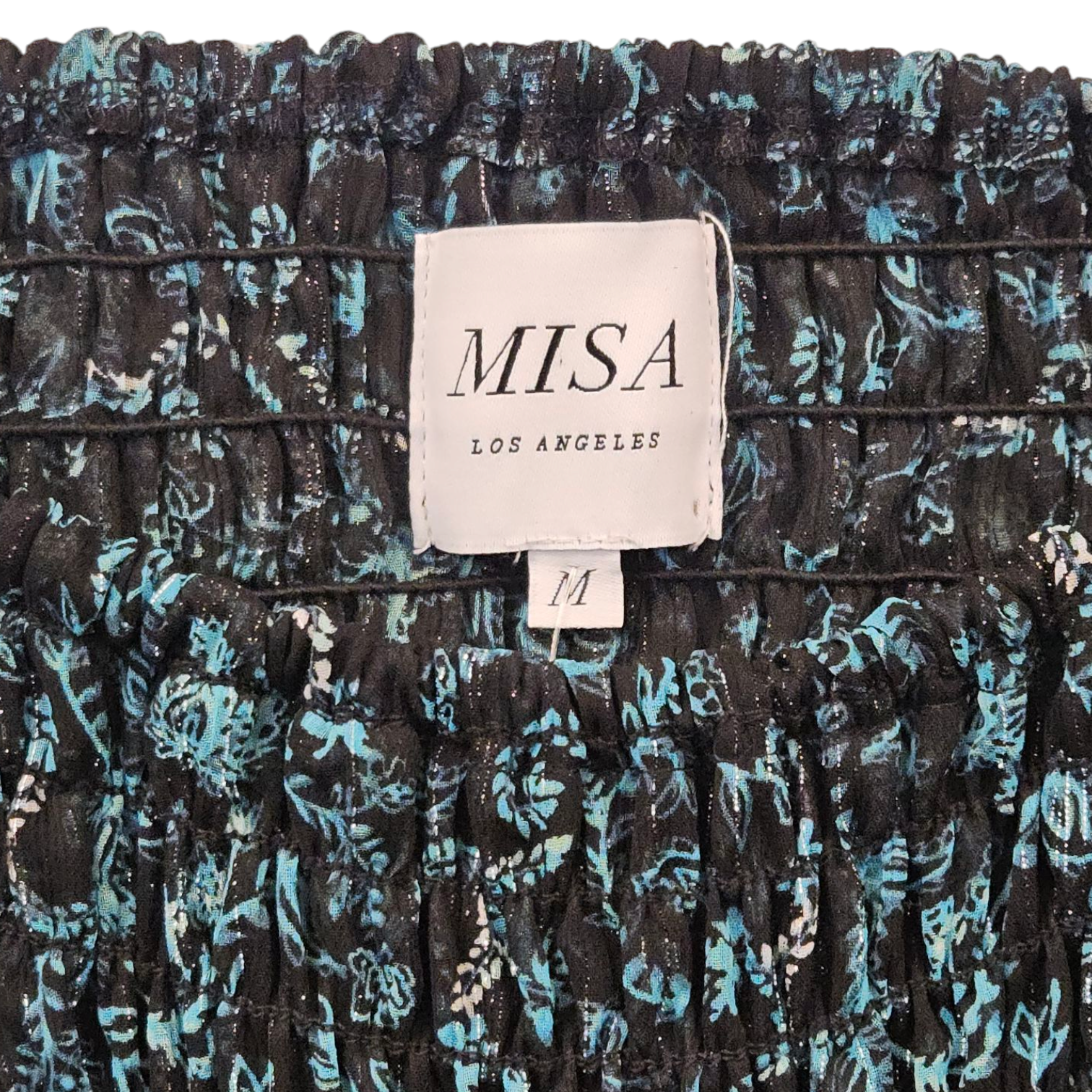 - Long bubble sleeves with elasticized sections, wear on or off the shoulders.
