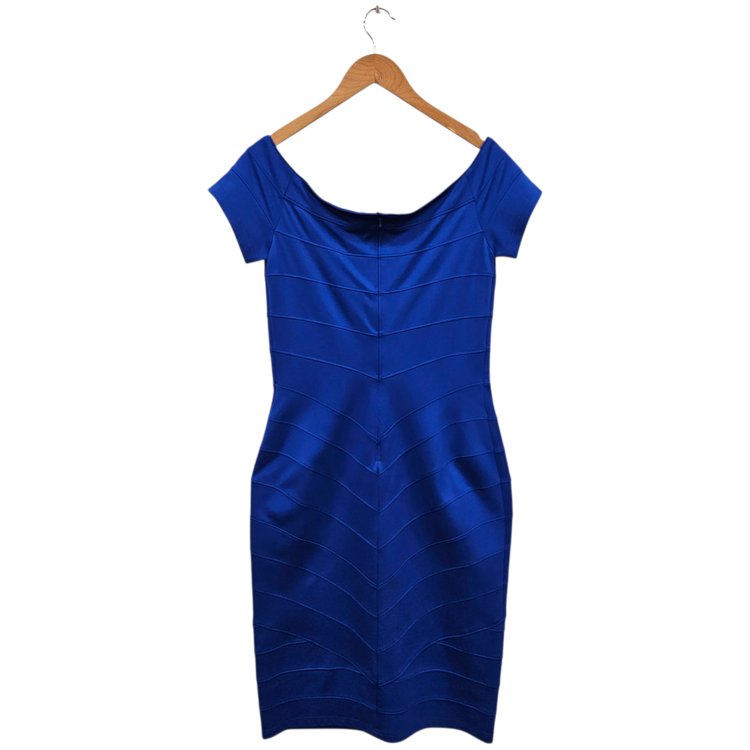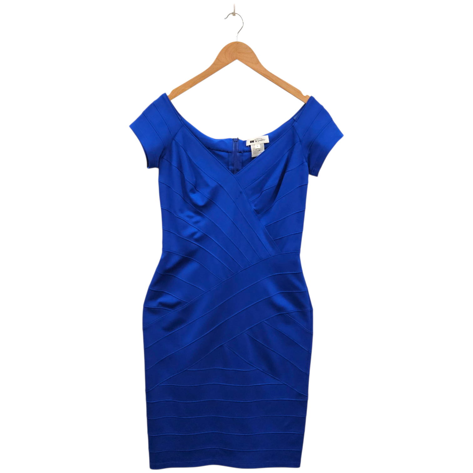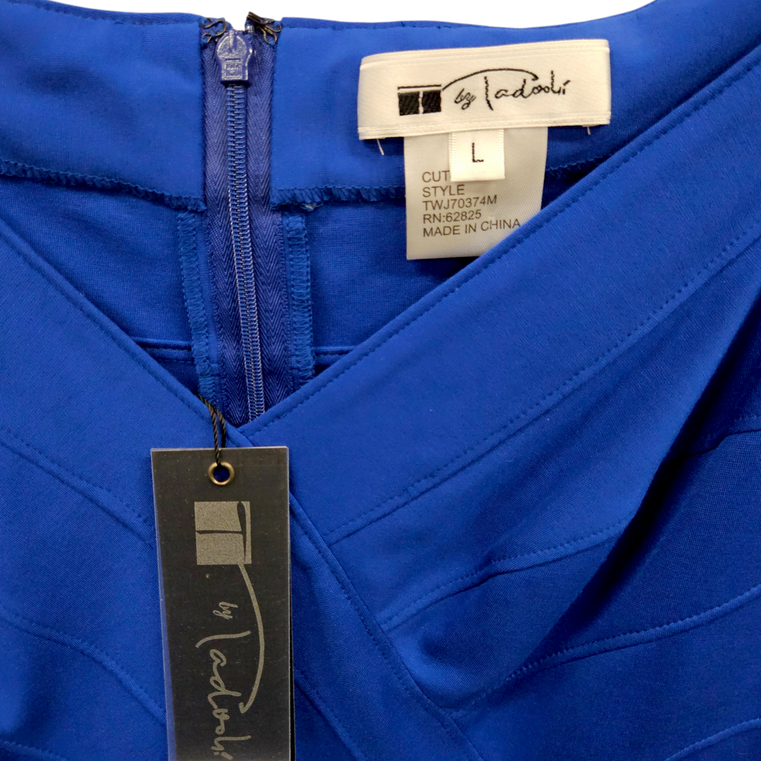 Materials: Cobalt-blue 63% rayon, 32% nylon, 5% spandex.