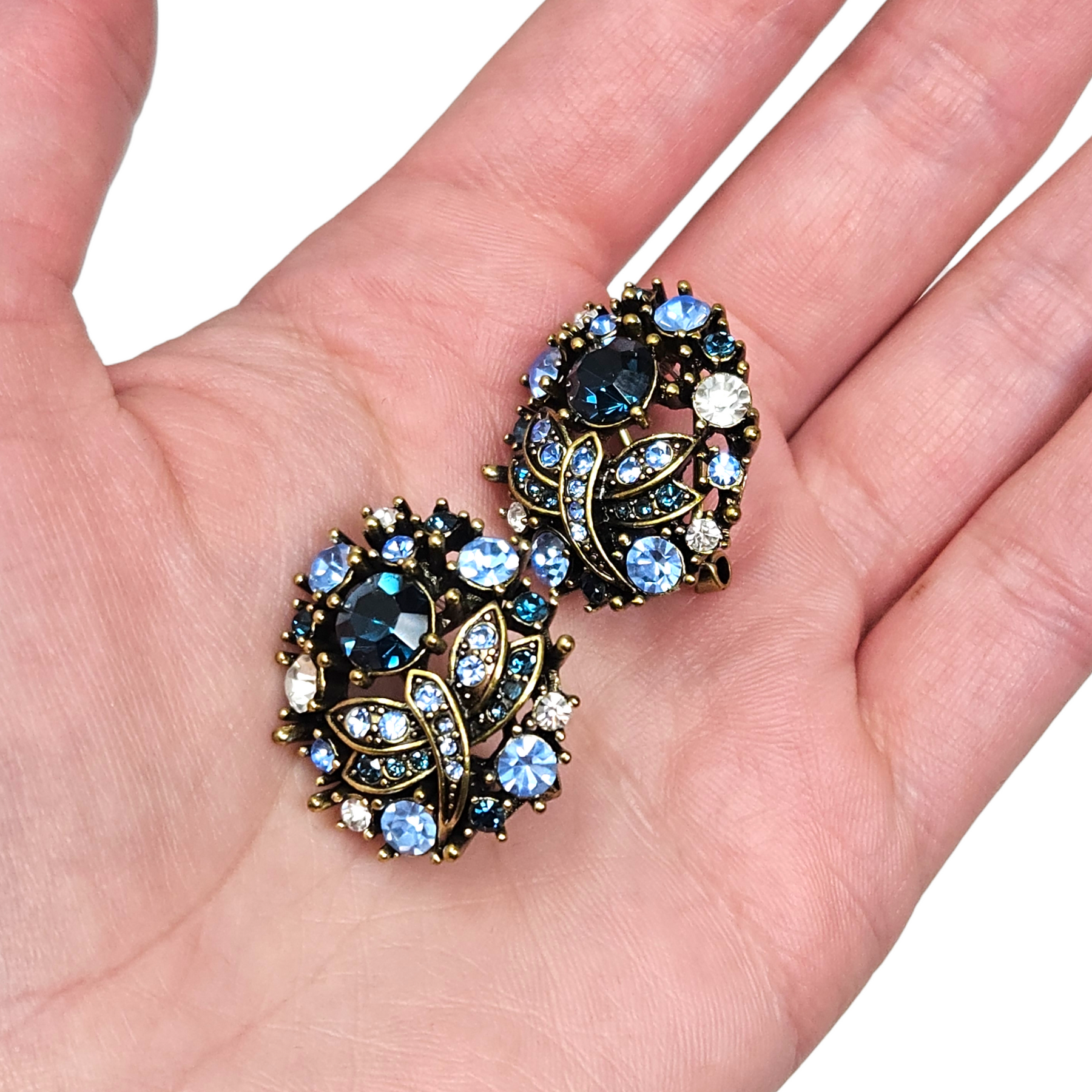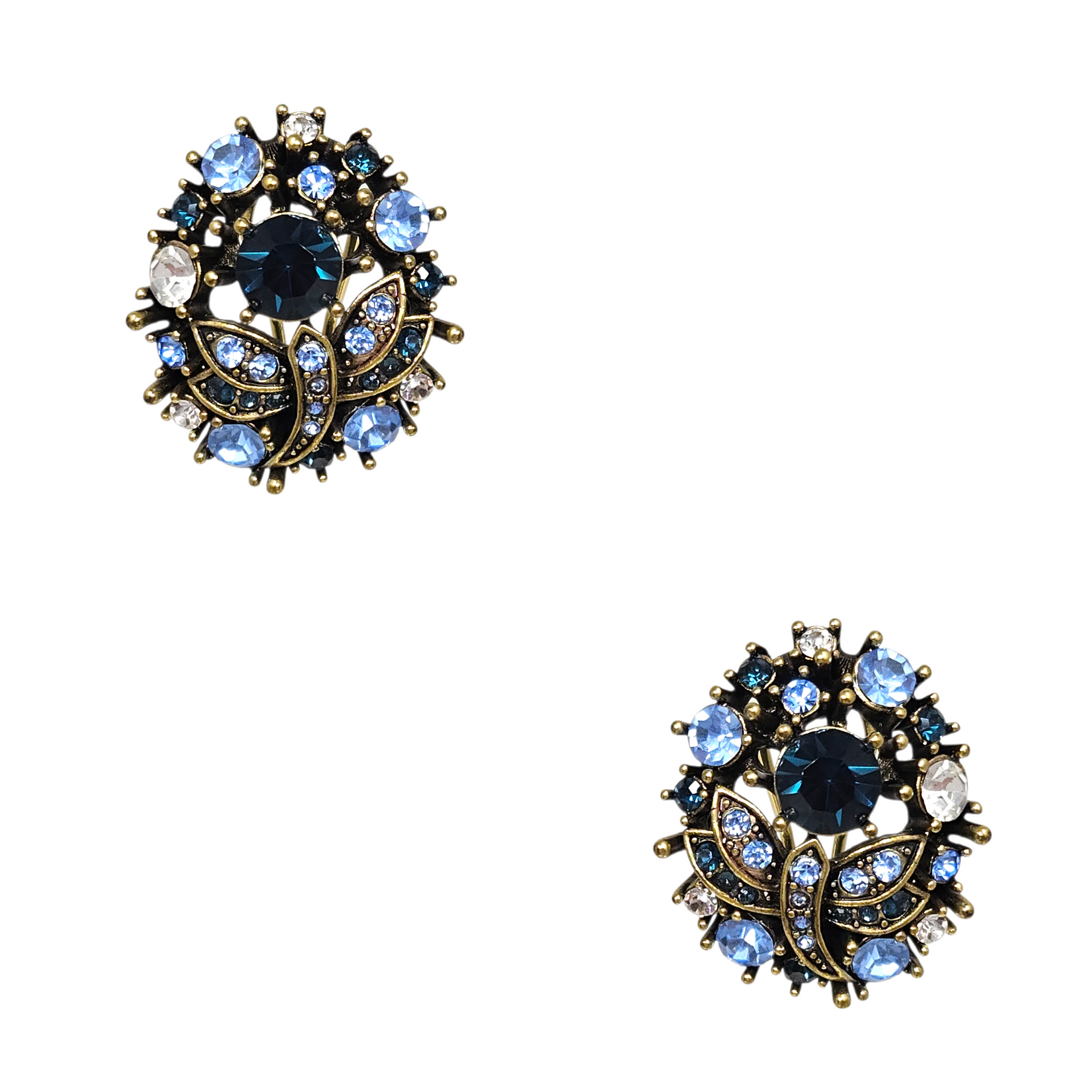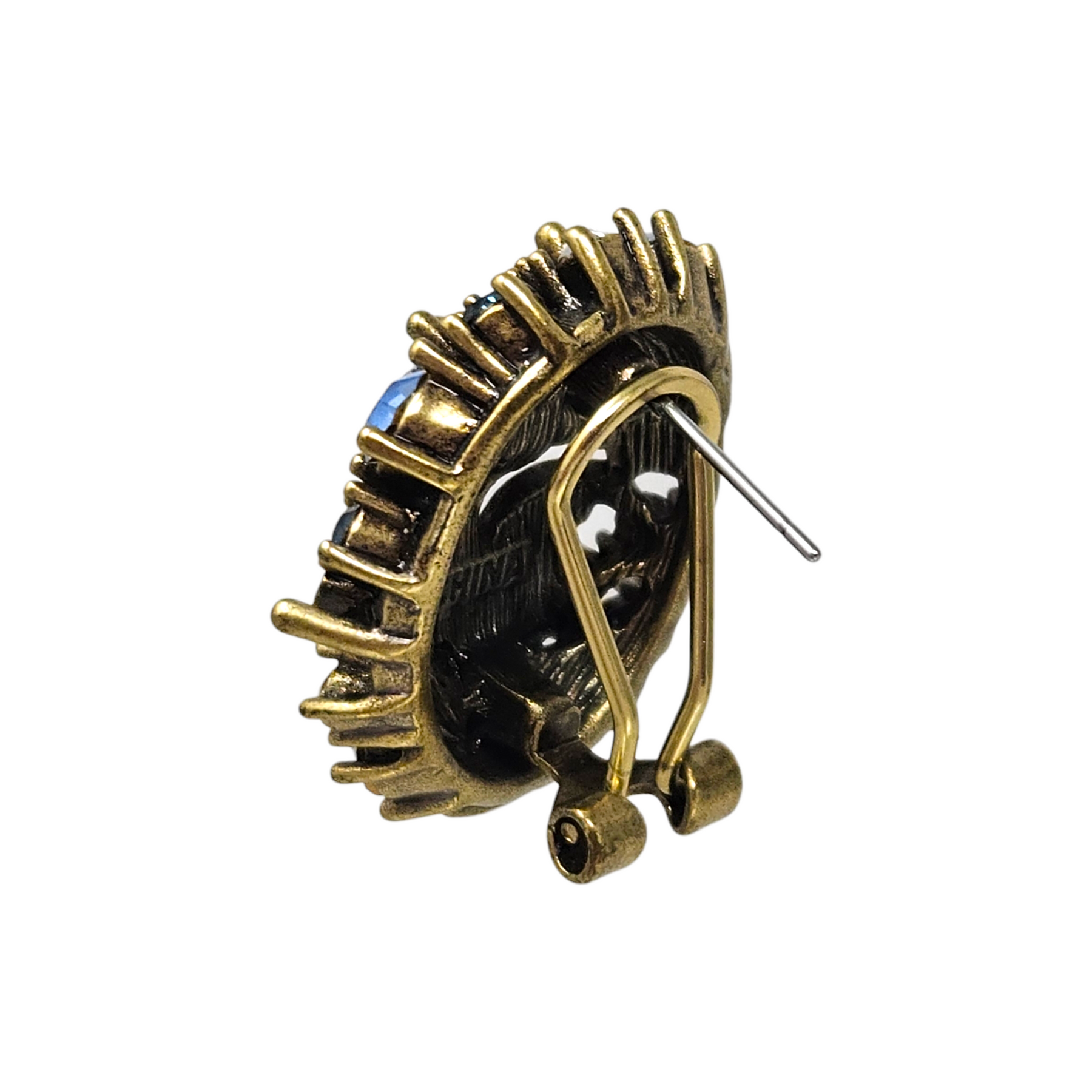 Materials: Bronze plating over brass with sparkling blue, teal, & clear crystals in a dragonfly motif.