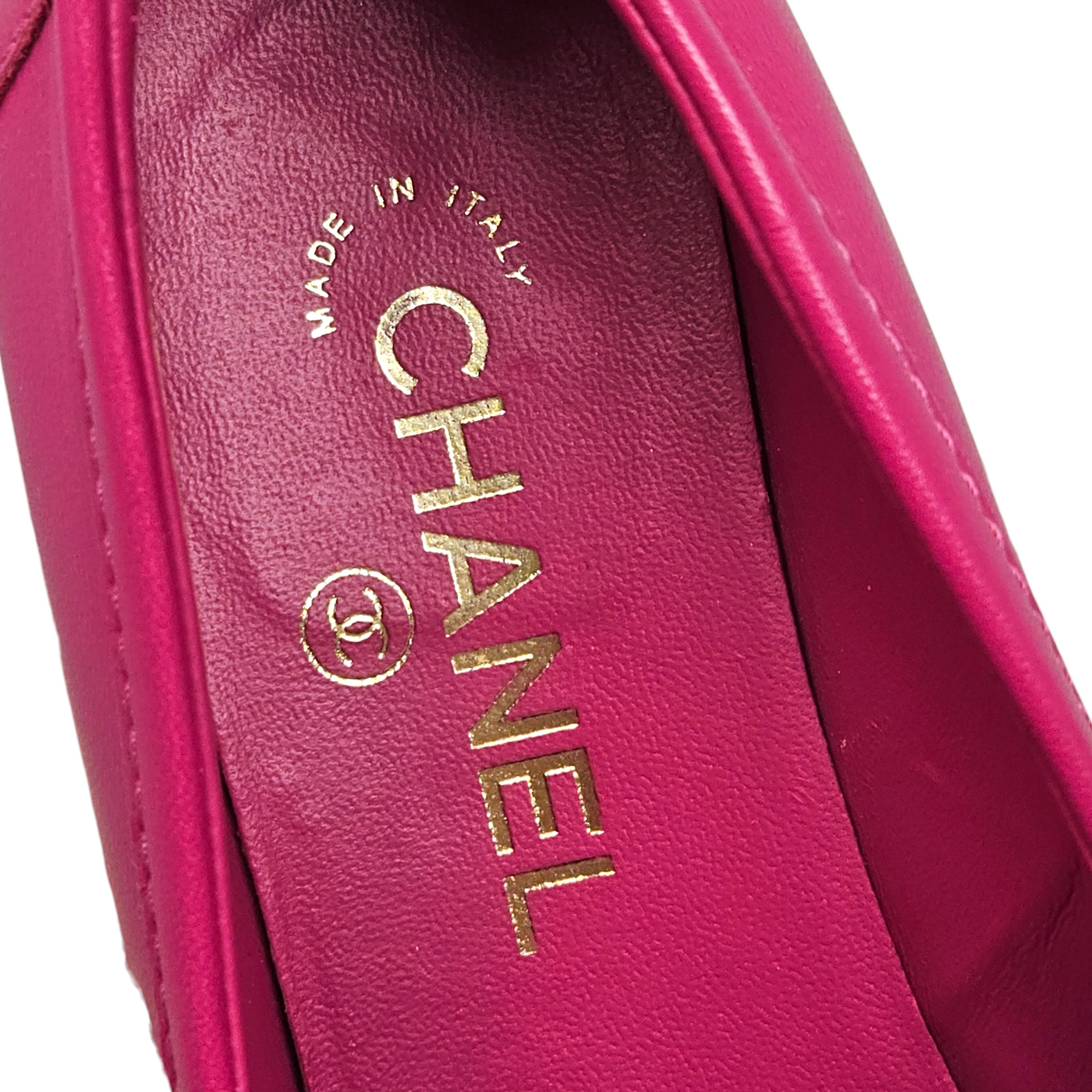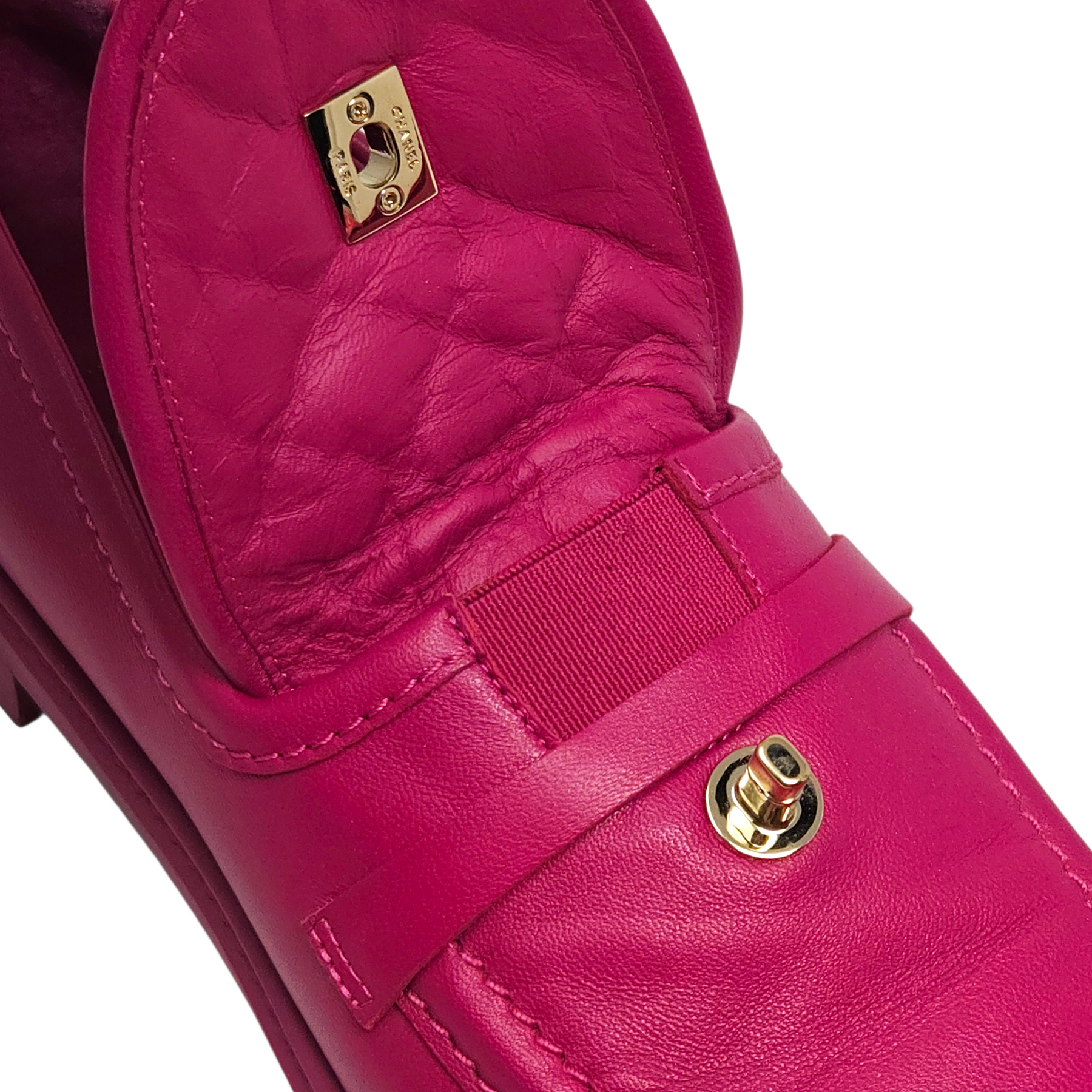 Materials: Fuschia smooth & quilted lambskin leather with gold-tone hardware.