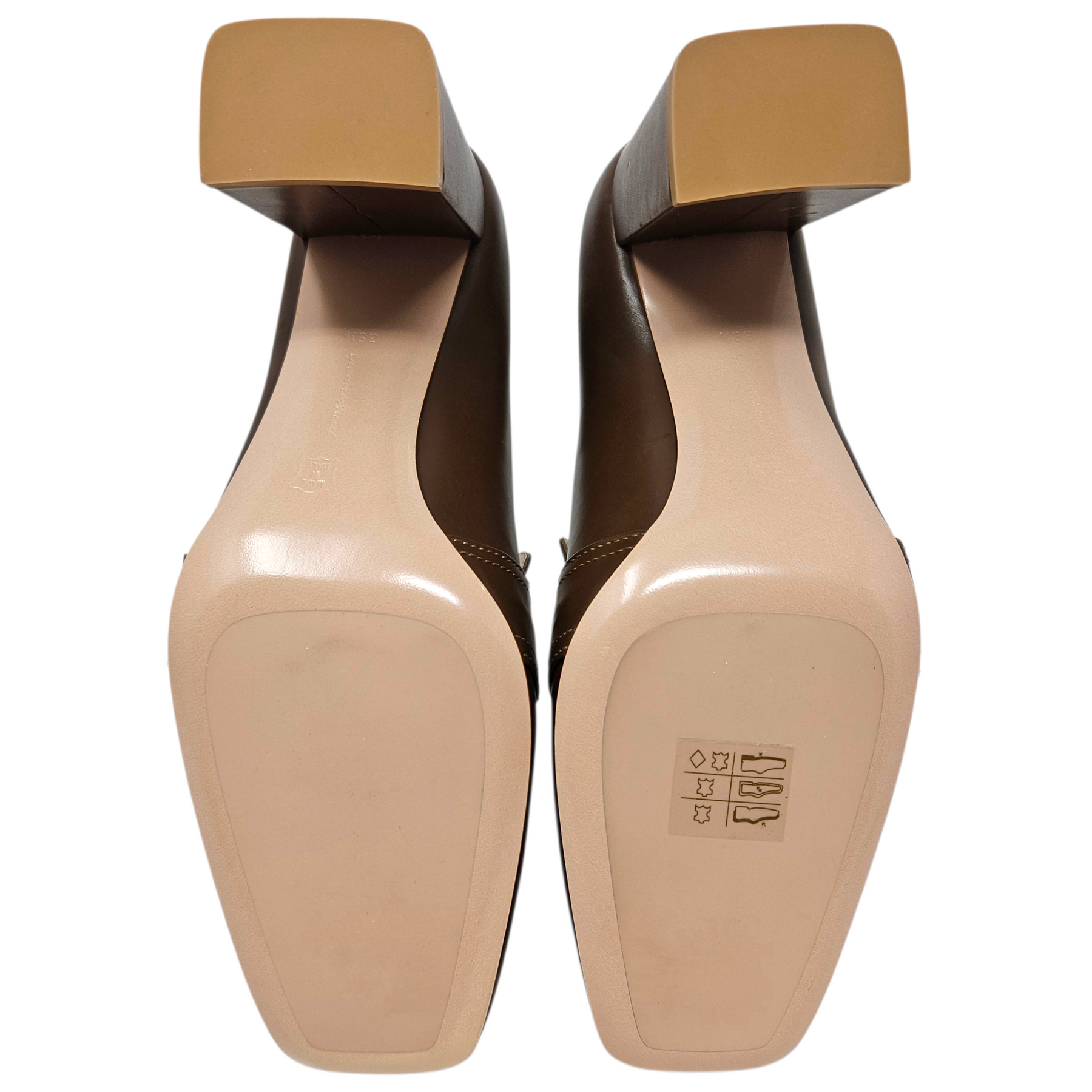 - Leather & synthetic outsoles with a chunky 3.5" heel.