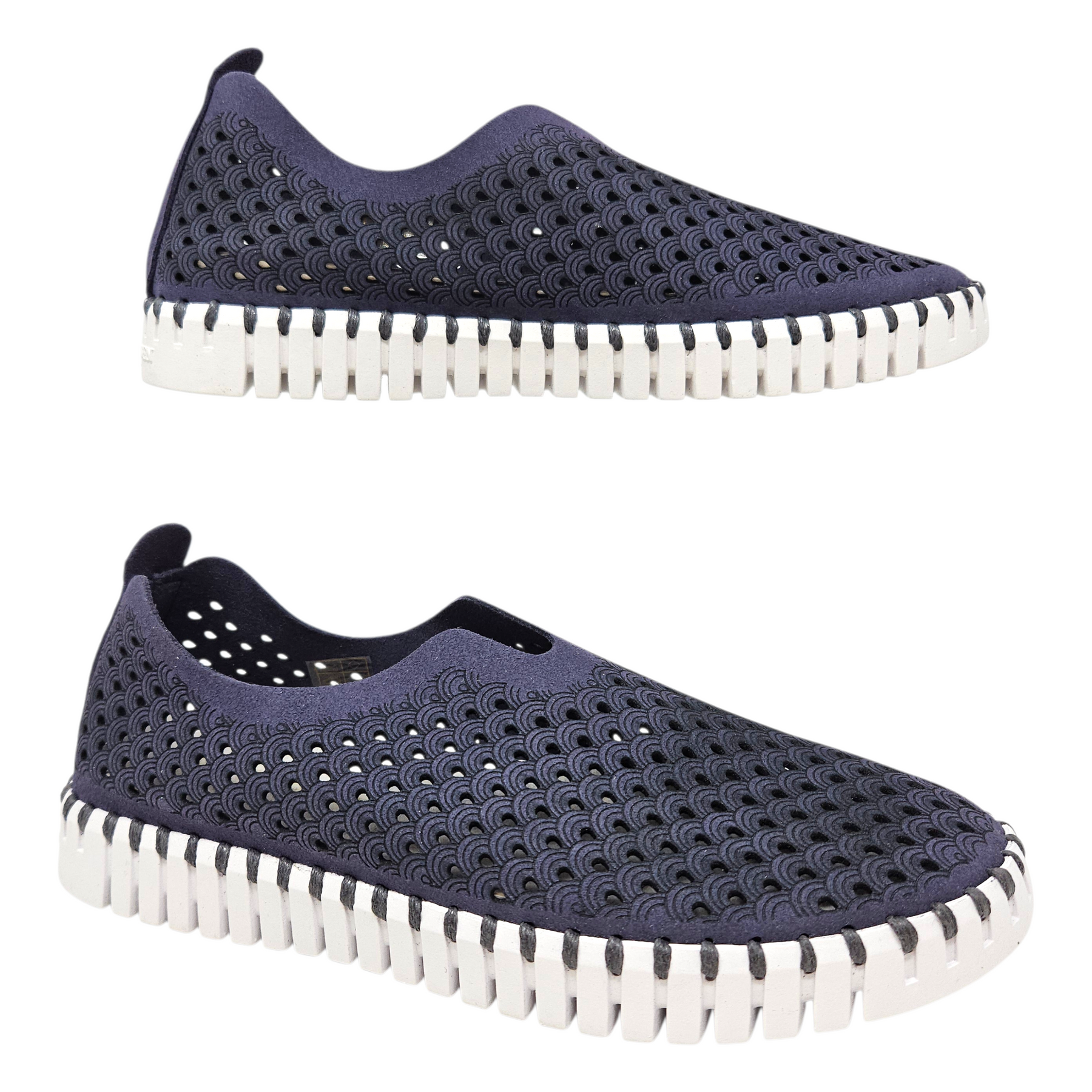Materials: Navy laser-cut recycled microfiber & mandmade materials.