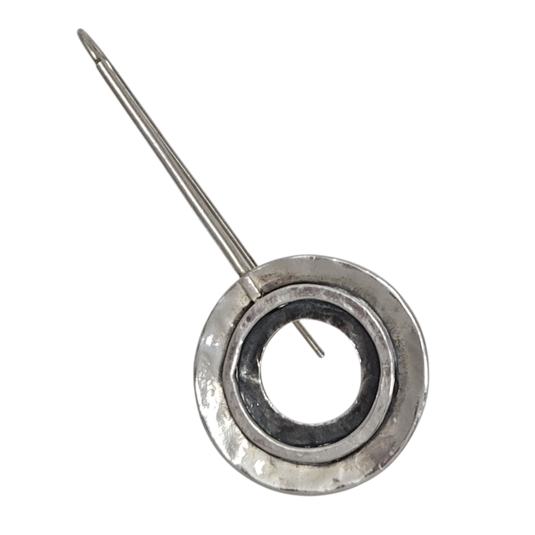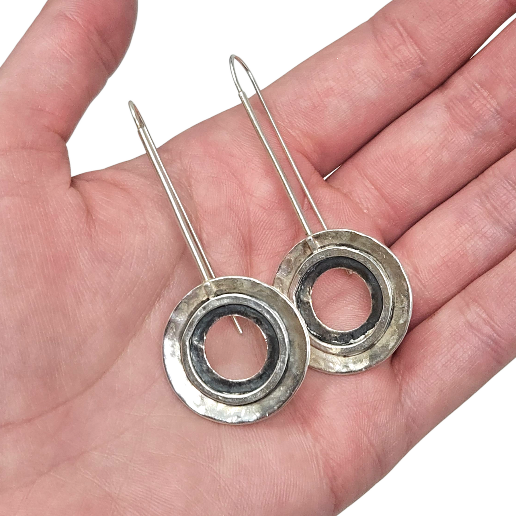 Materials: Hammered .925 sterling silver with oxidized inner circle detail.