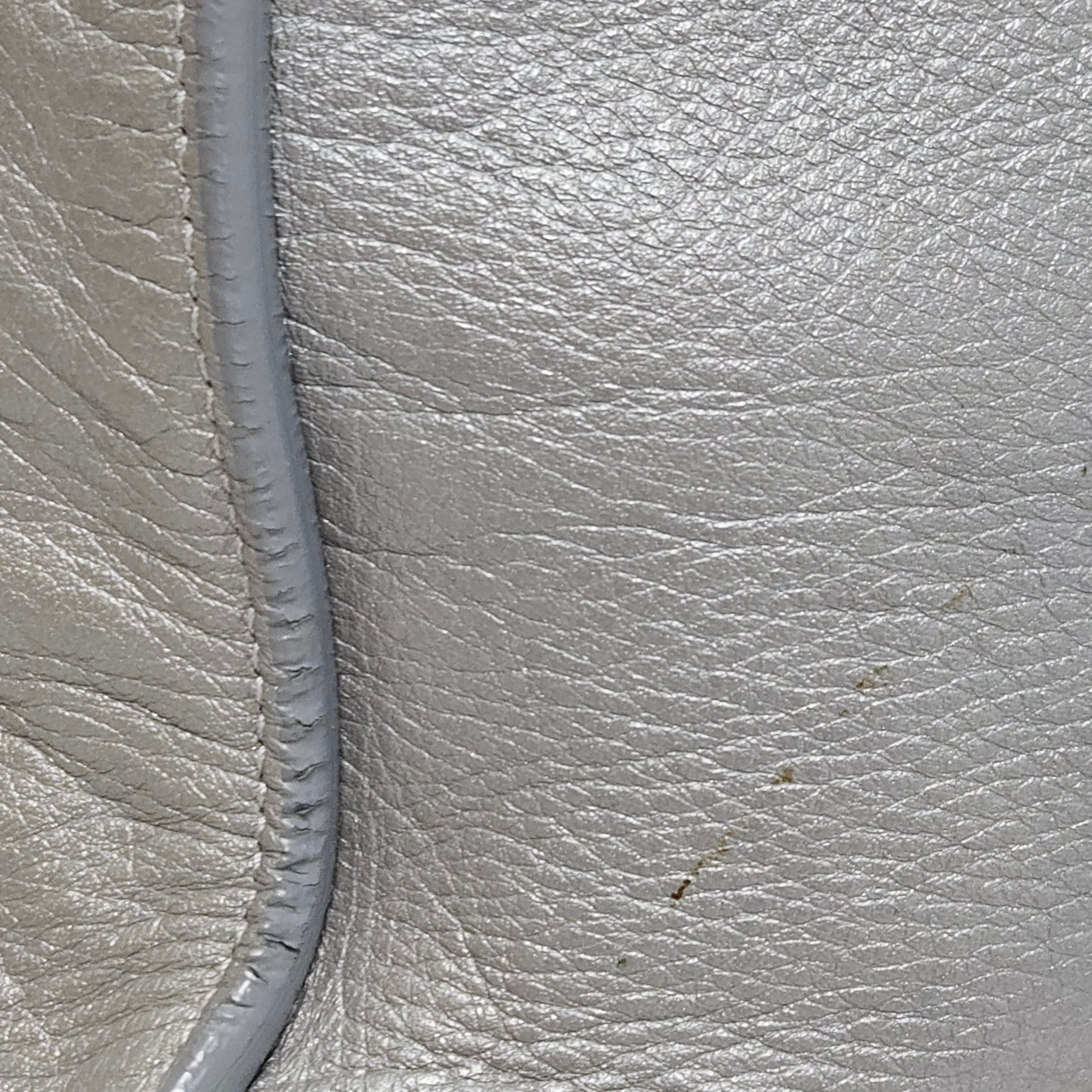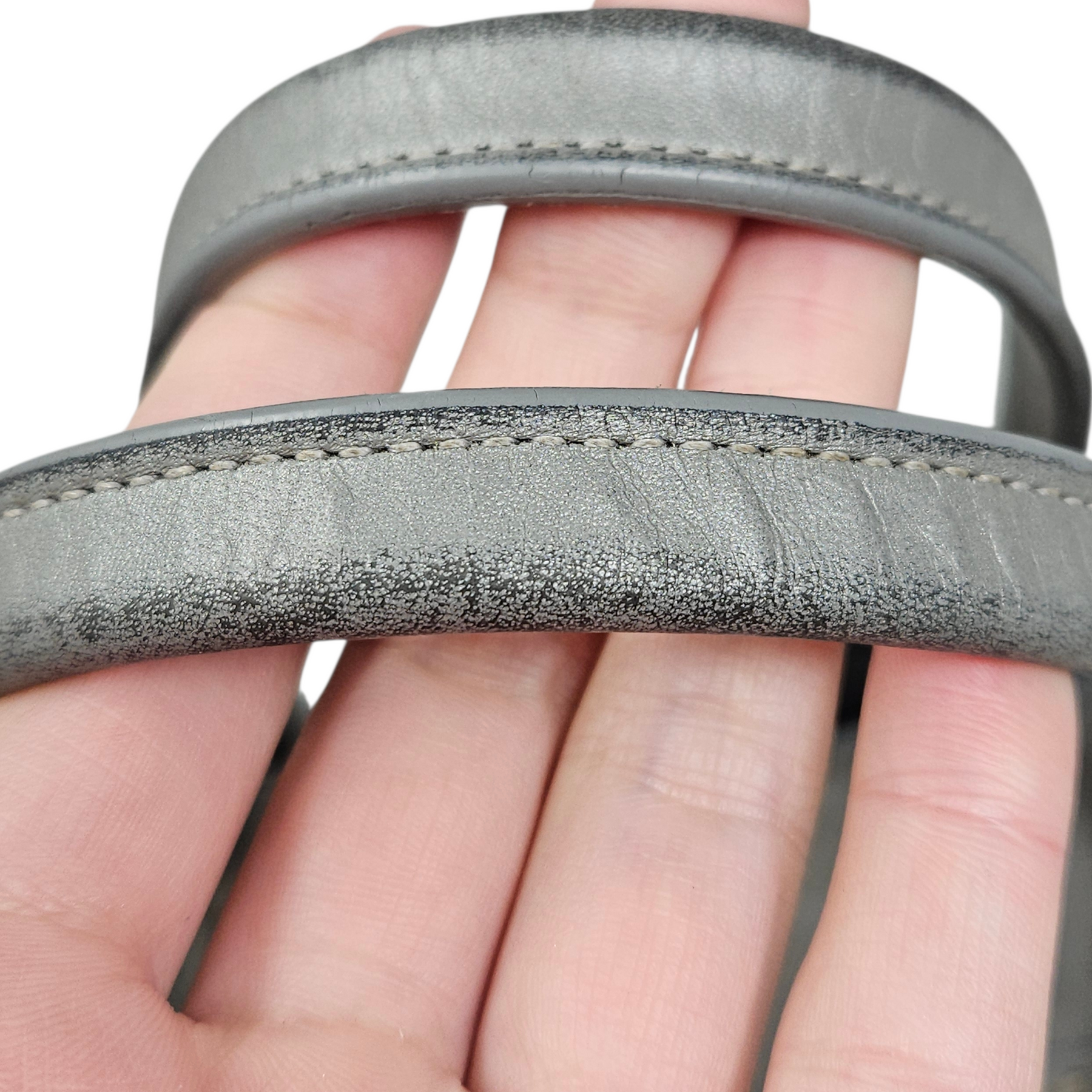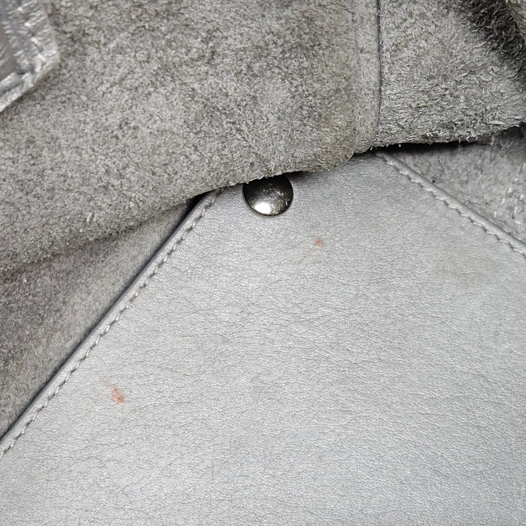 Materials: Pewter pebbled leather with silver-tone hardware.