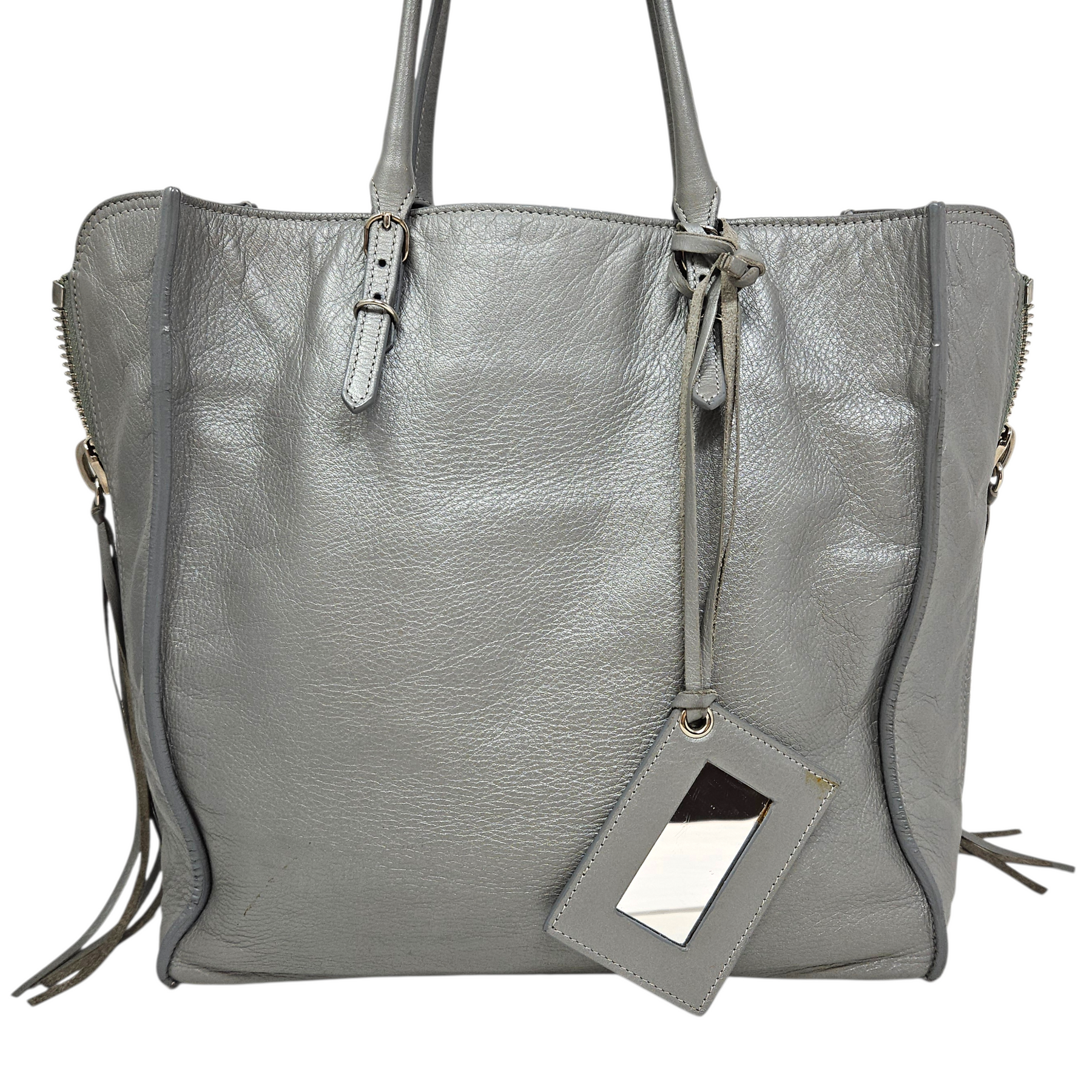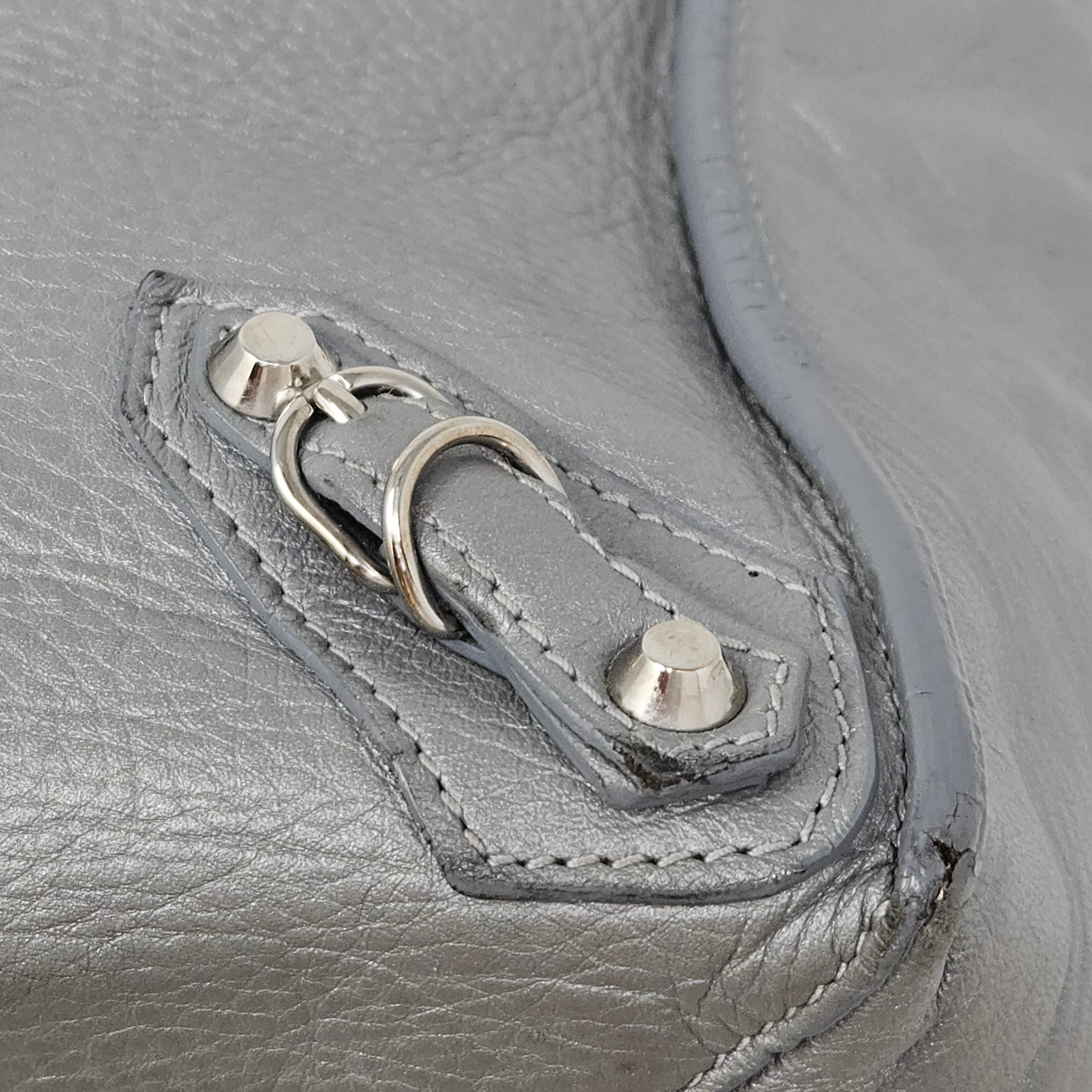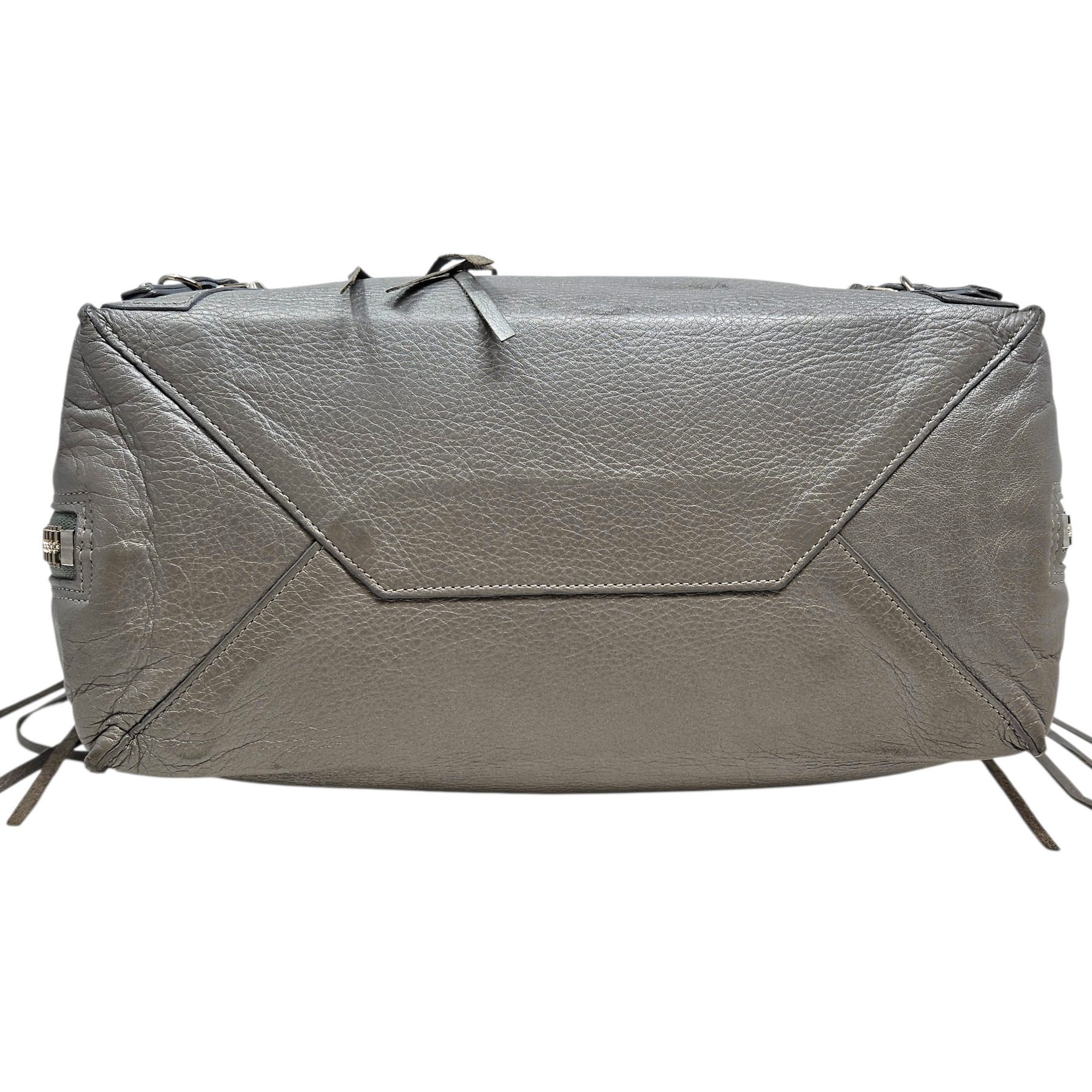 Materials: Pewter pebbled leather with silver-tone hardware.