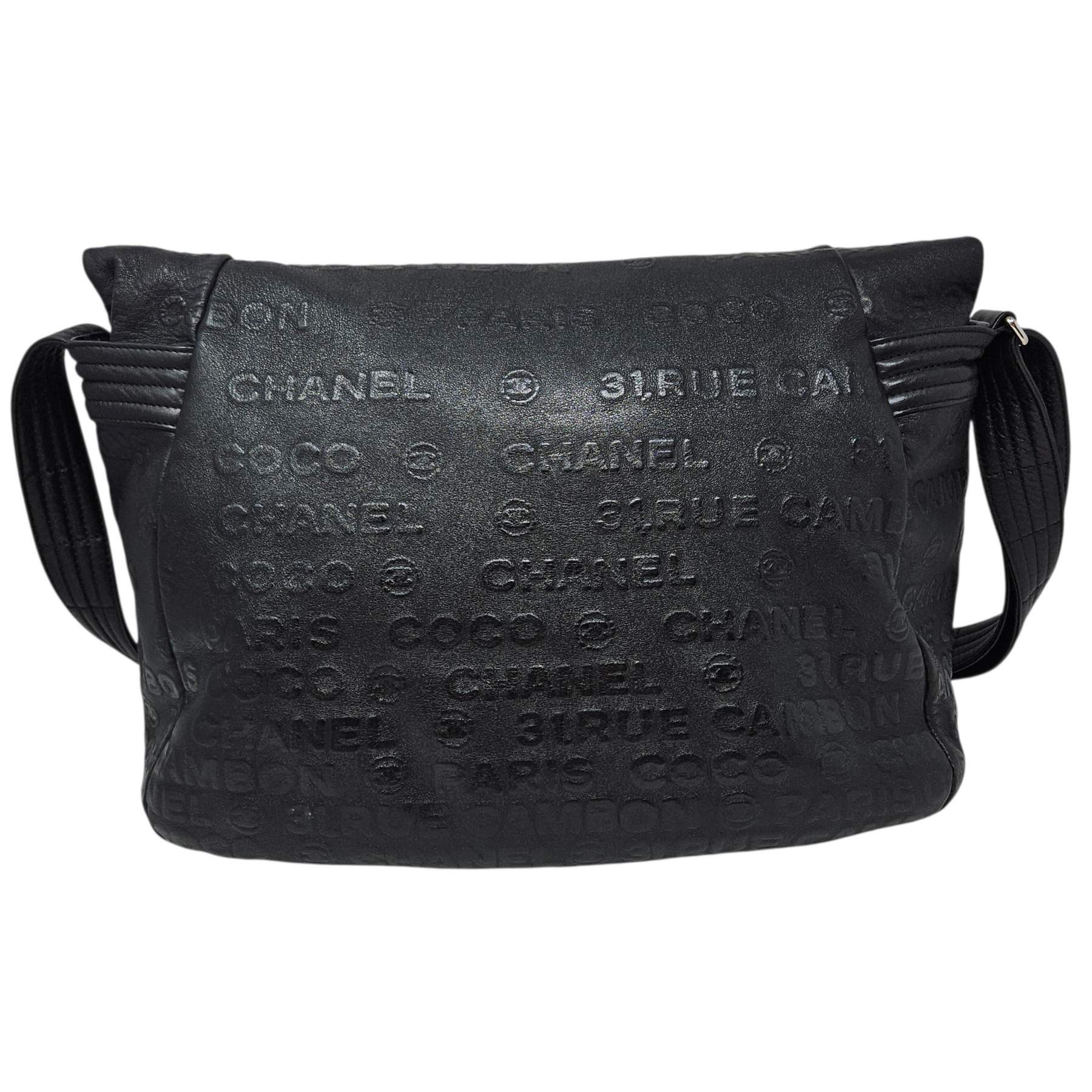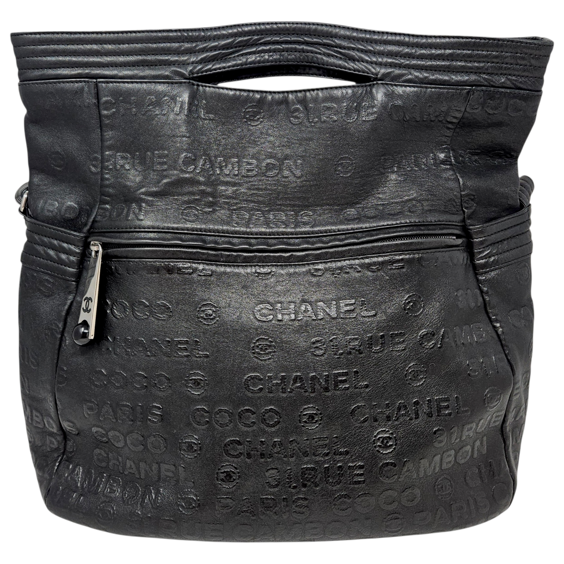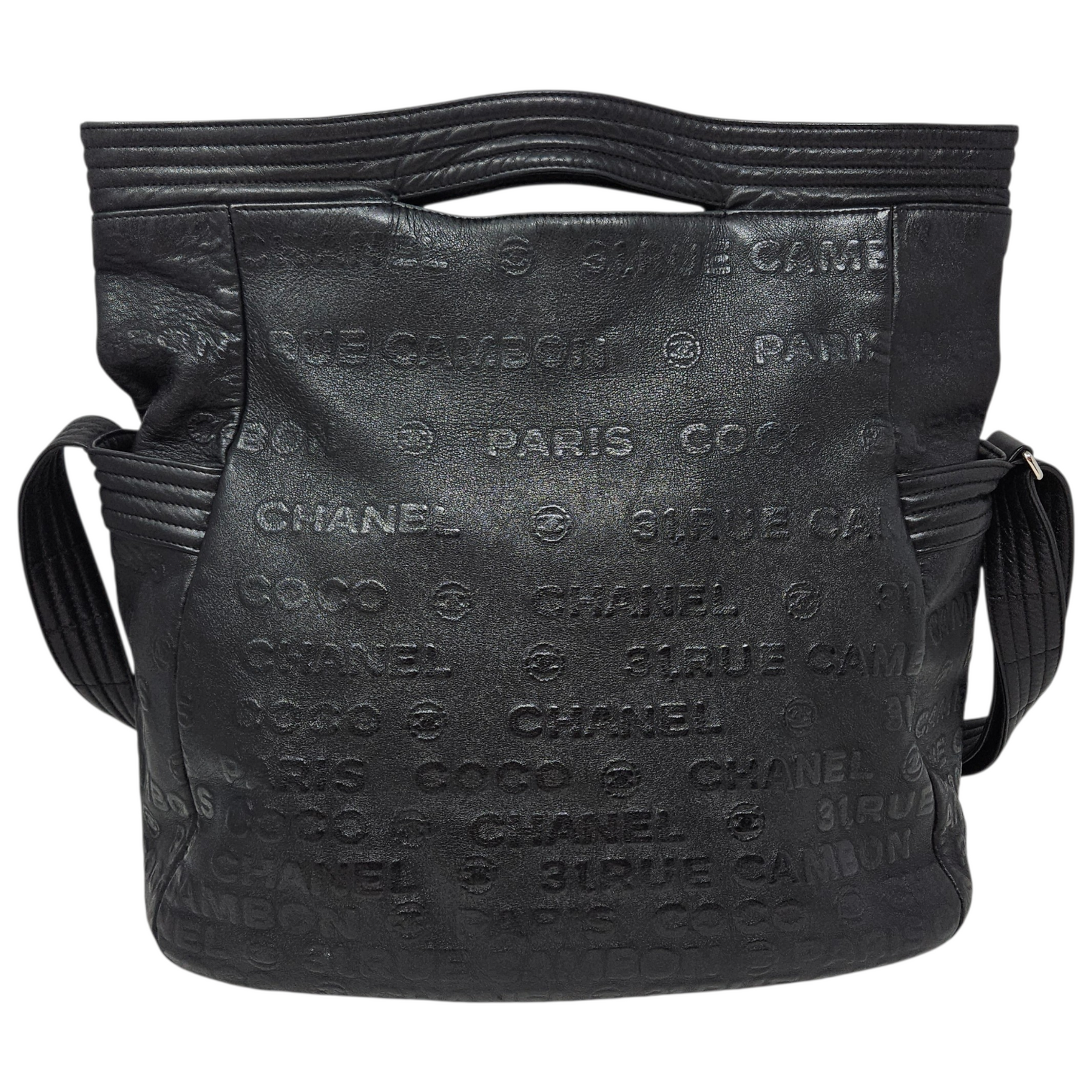 - Embossed leather with "Coco Chanel", "31Rue Cambon", & interlocking "C" logos.