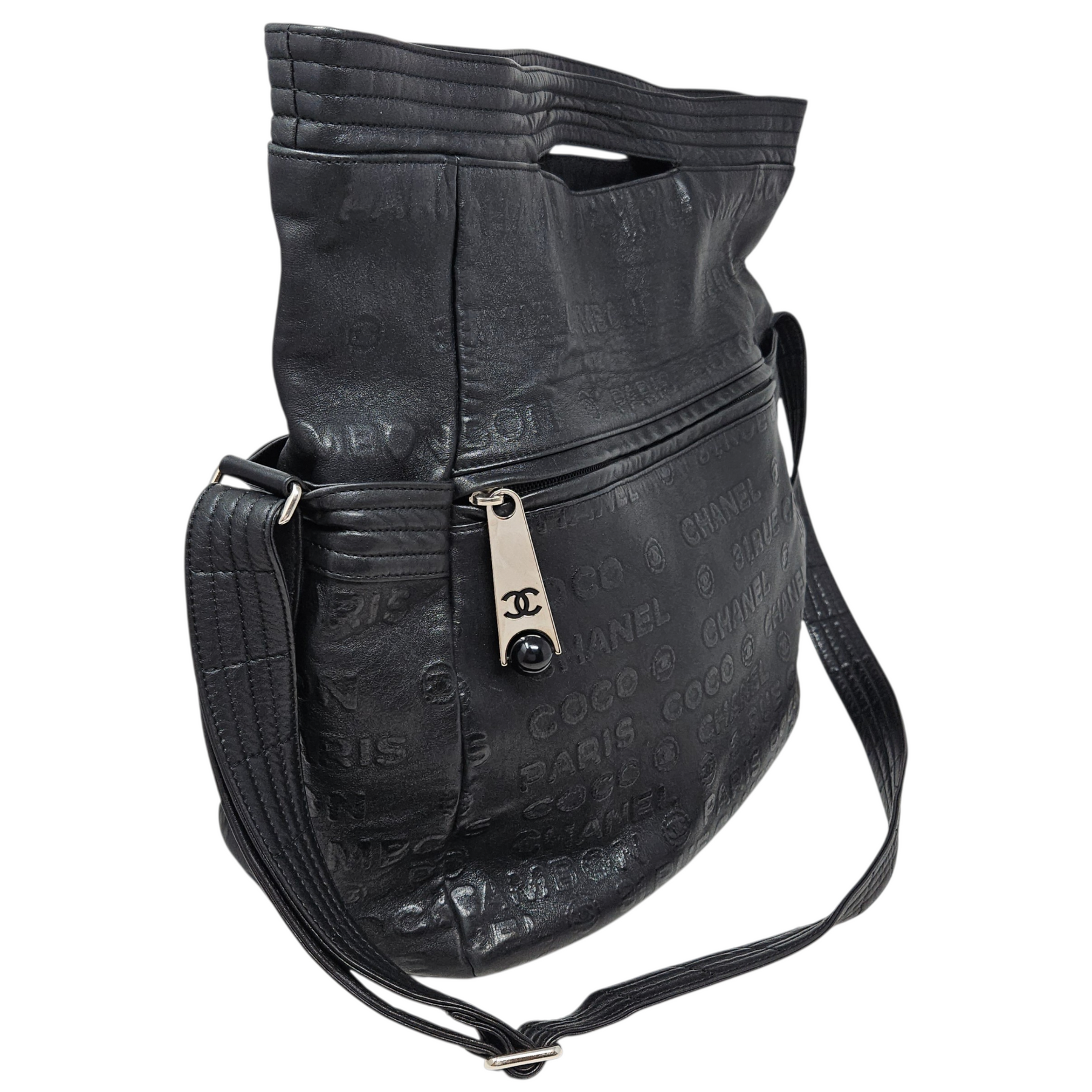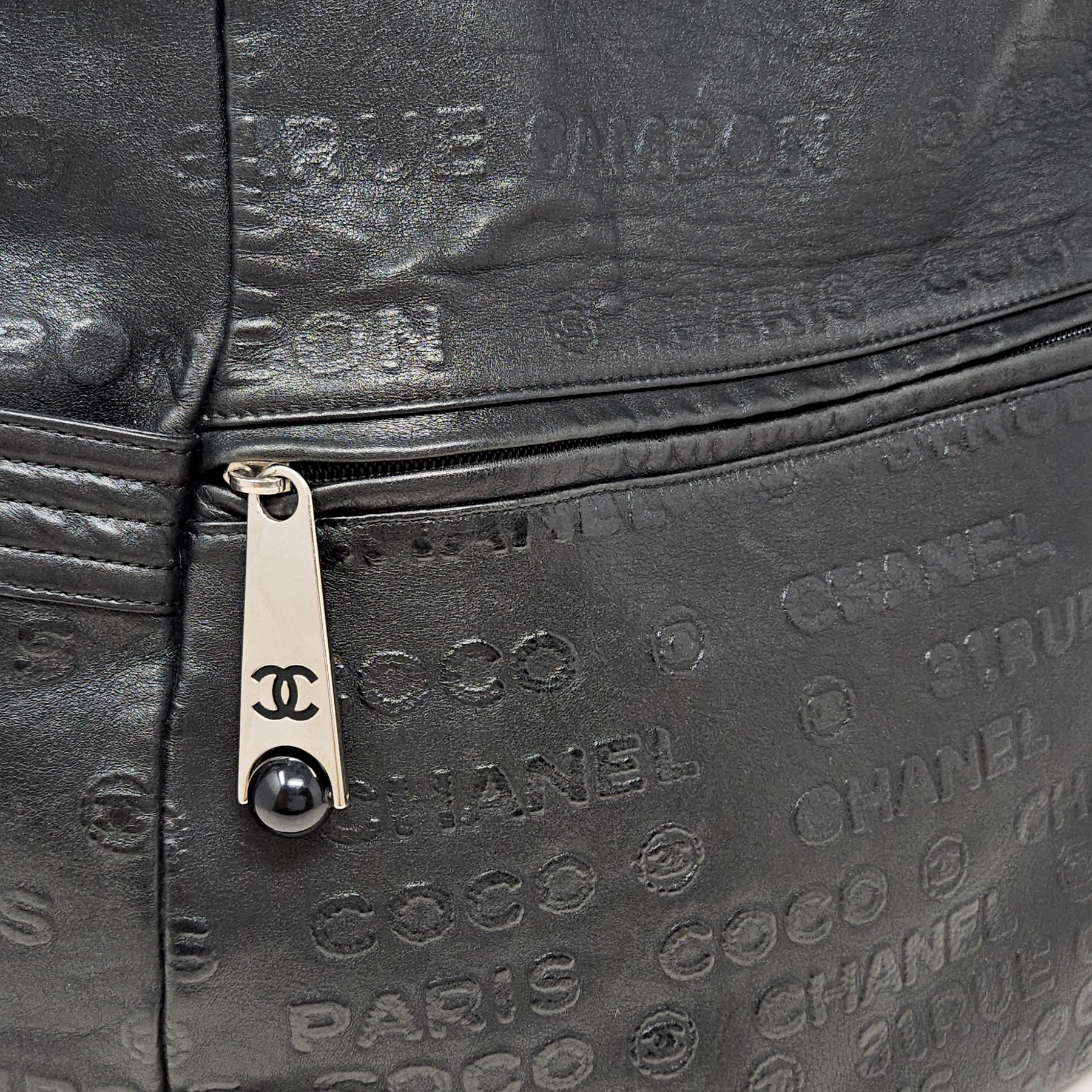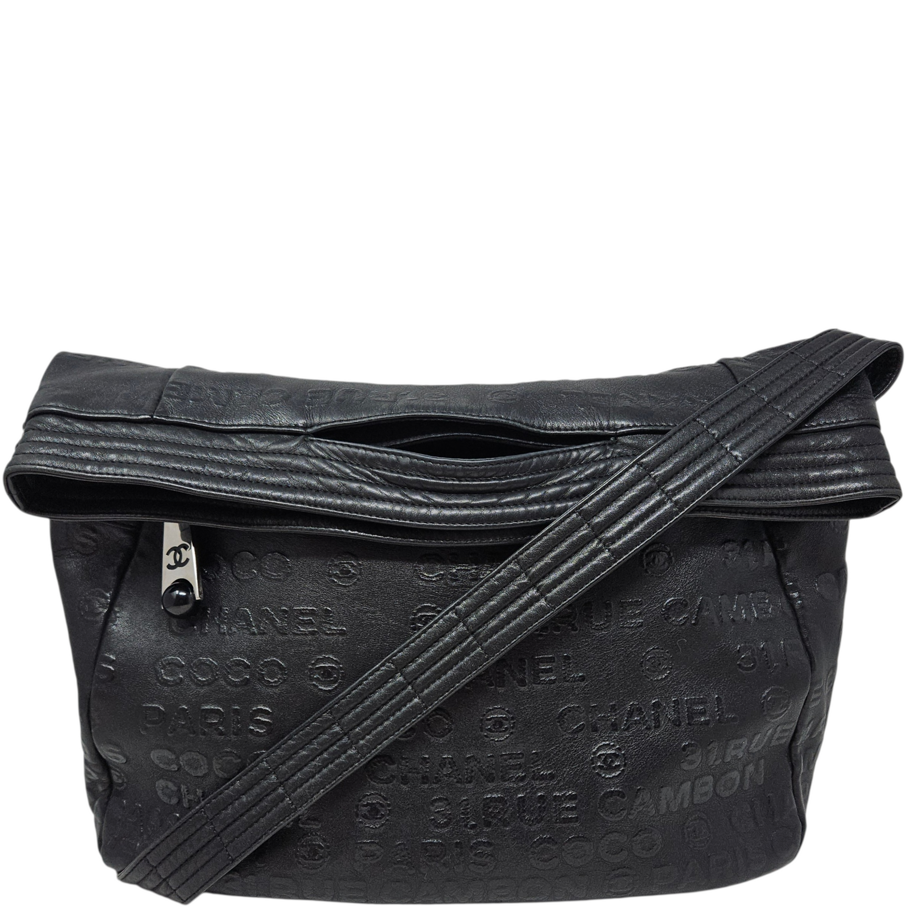 - Embossed leather with "Coco Chanel", "31Rue Cambon", & interlocking "C" logos.