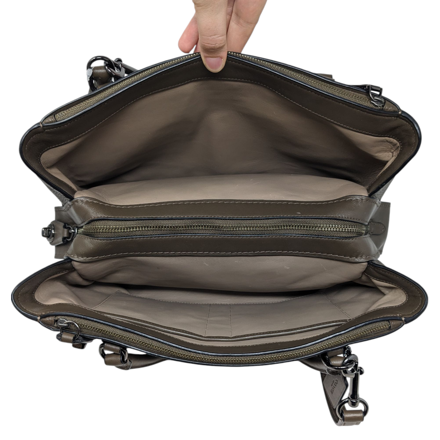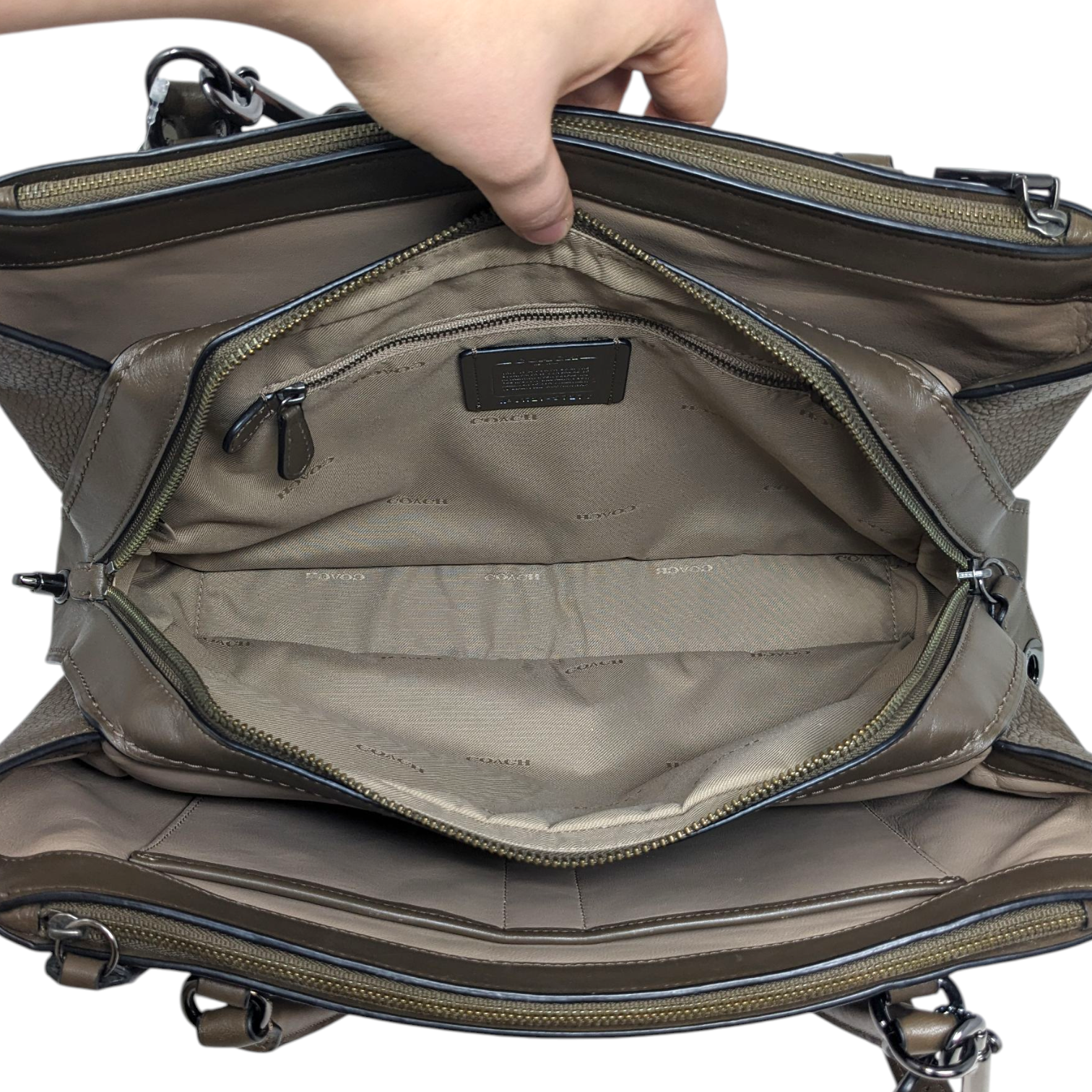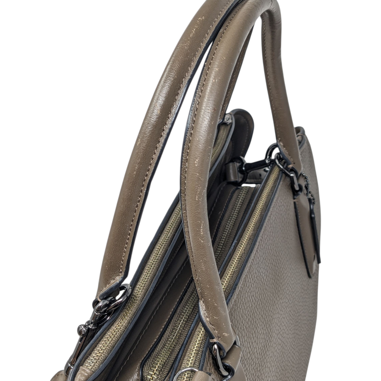 Materials: Sage brown pebbled leather with gunmetal hardware.