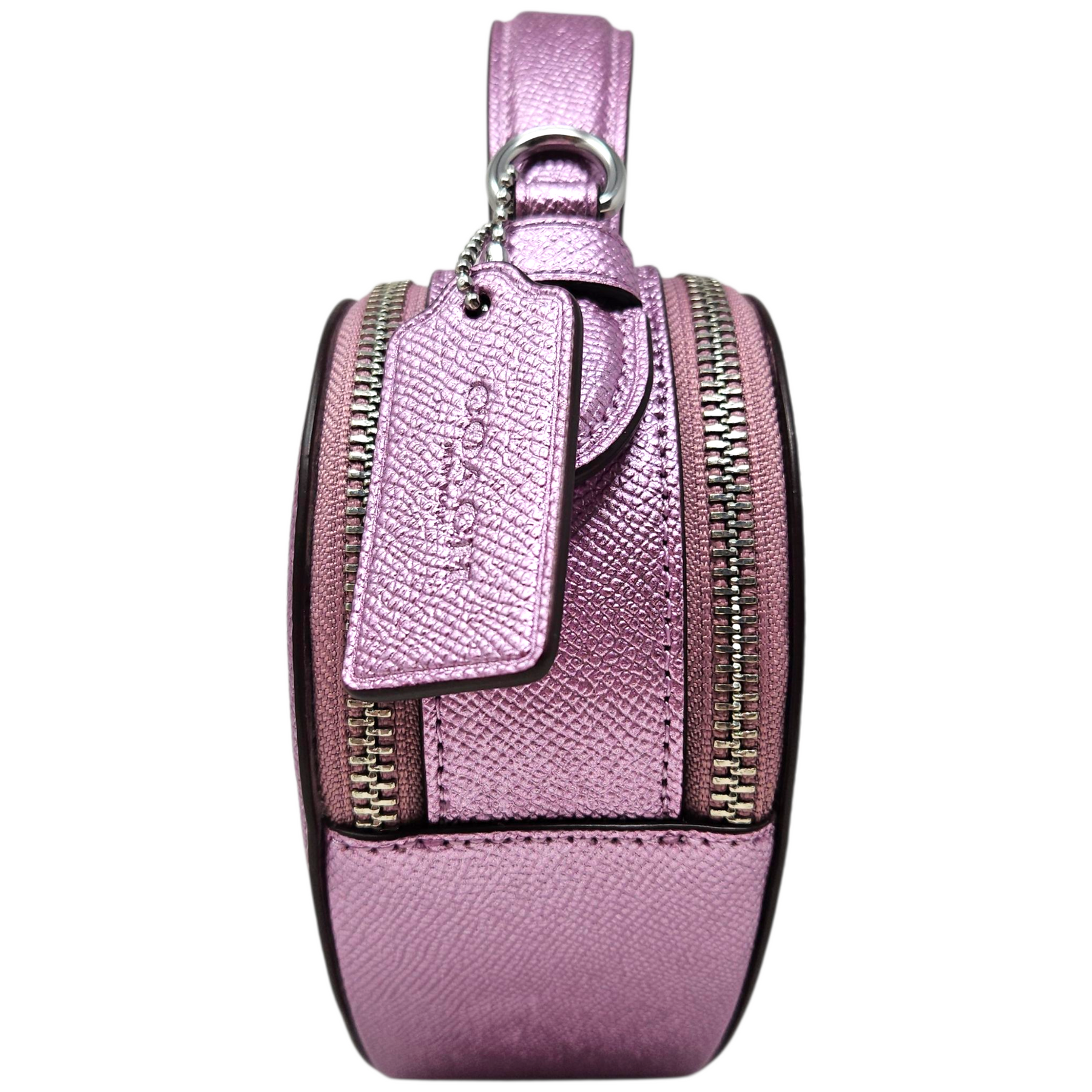 Materials: Metallic-lilac leataher with silver-tone hardware.