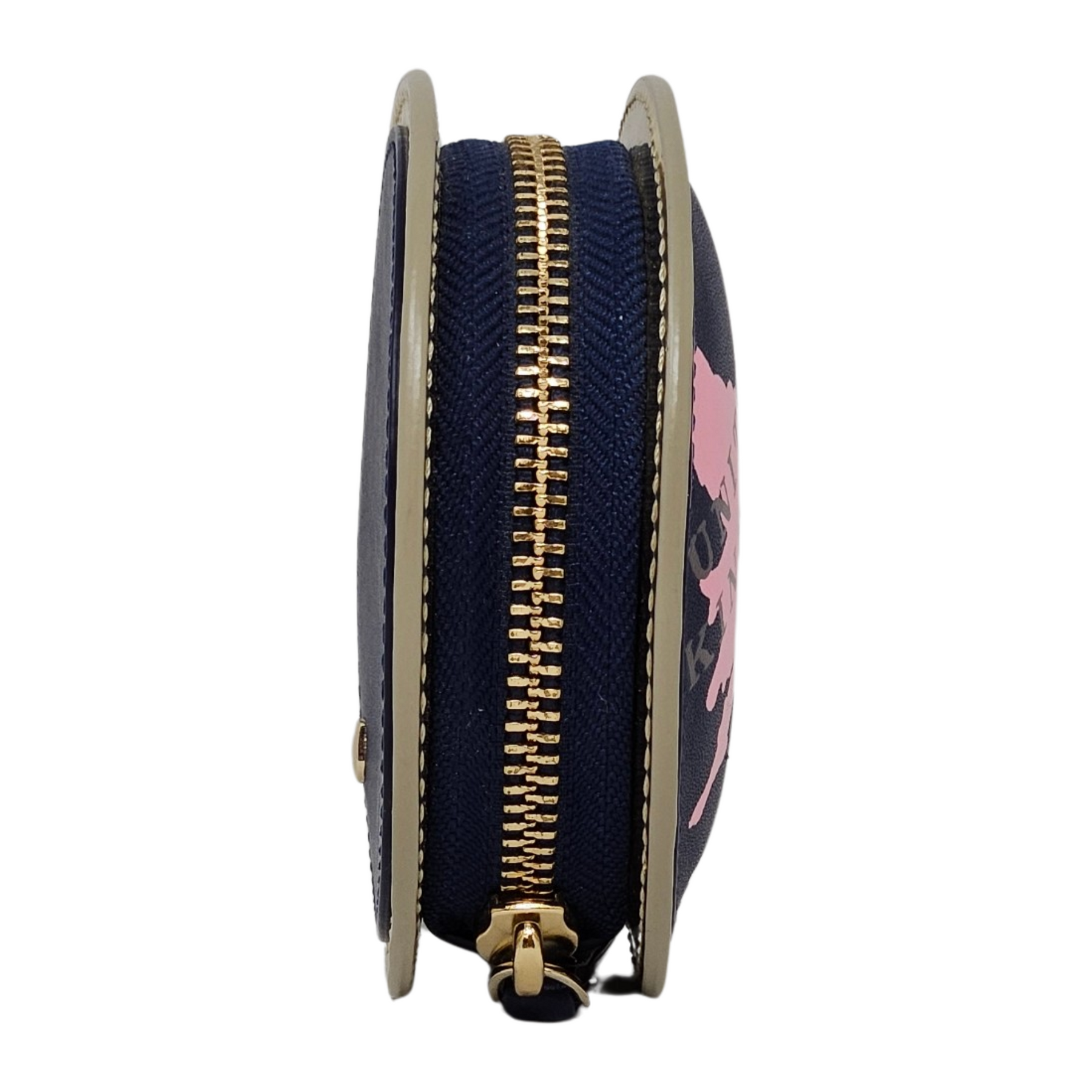 Materials: Navy, gold and pink leather and gold-tone hardware.