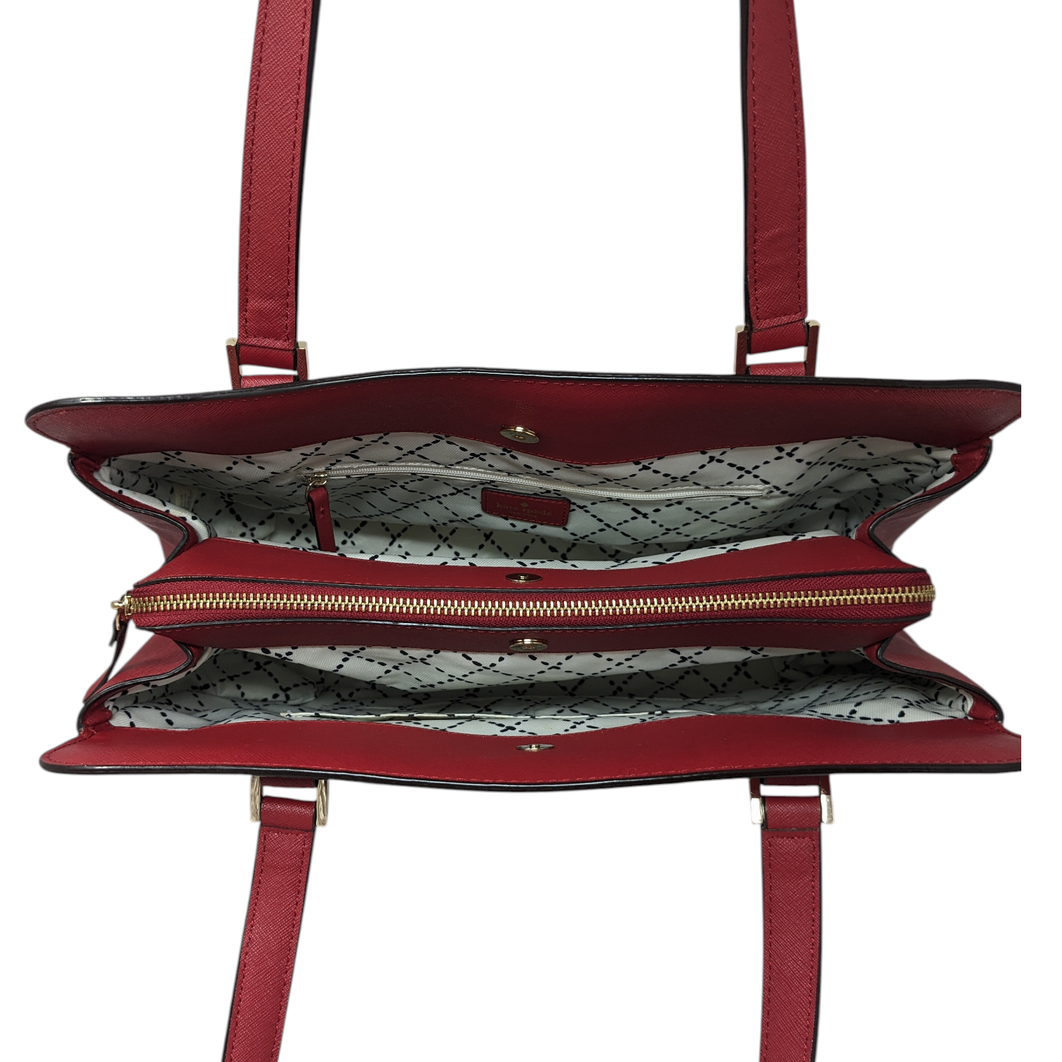 - Three compartments with magnetic snap closure, one with top zip closure.