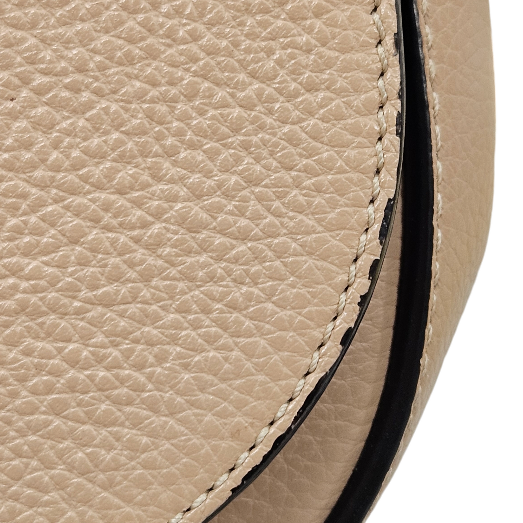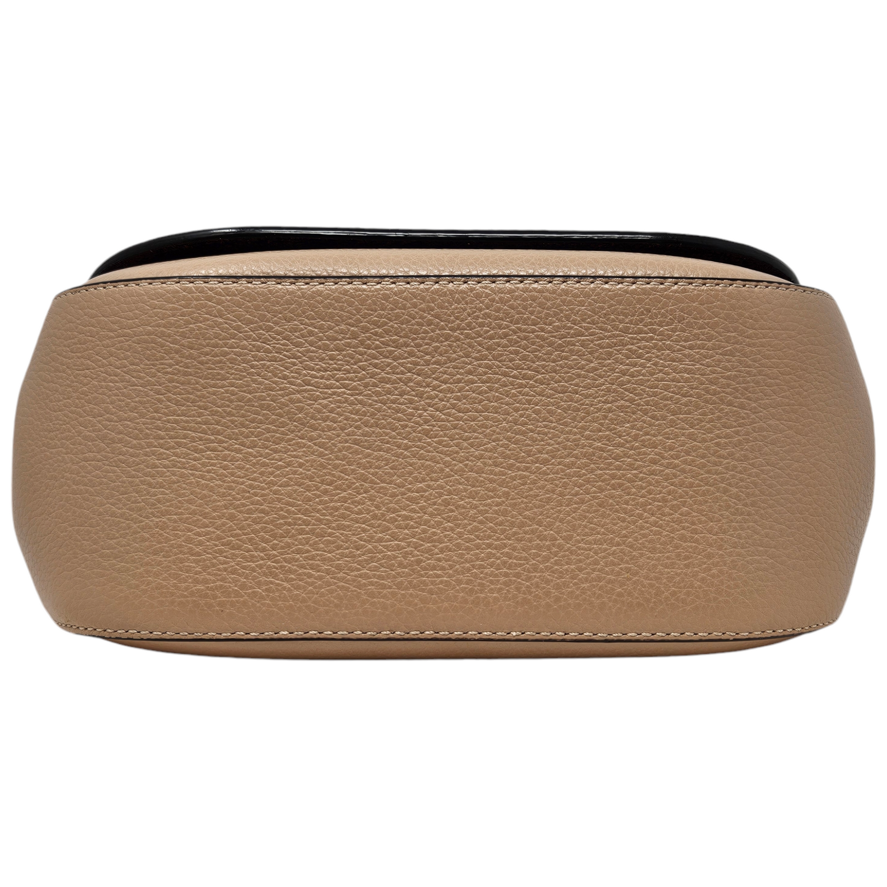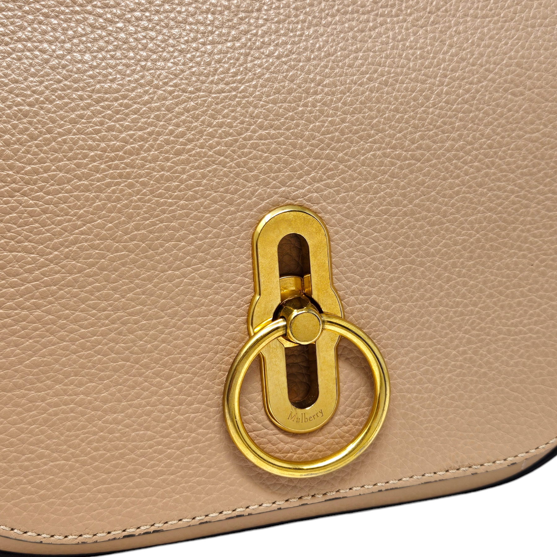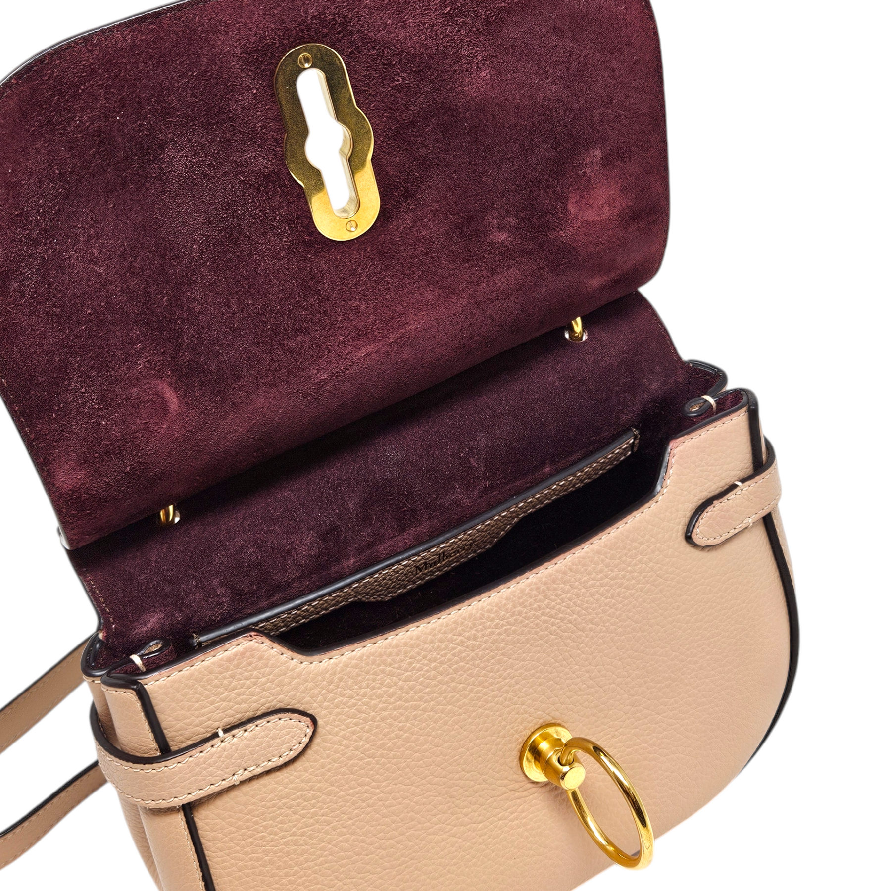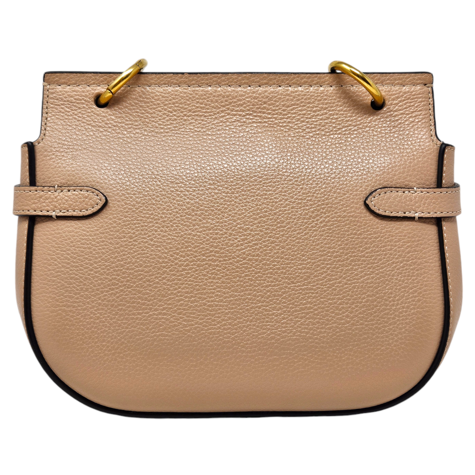 Materials: "Rosewater" (beige) pebbled leather with brass-finish hardware.
