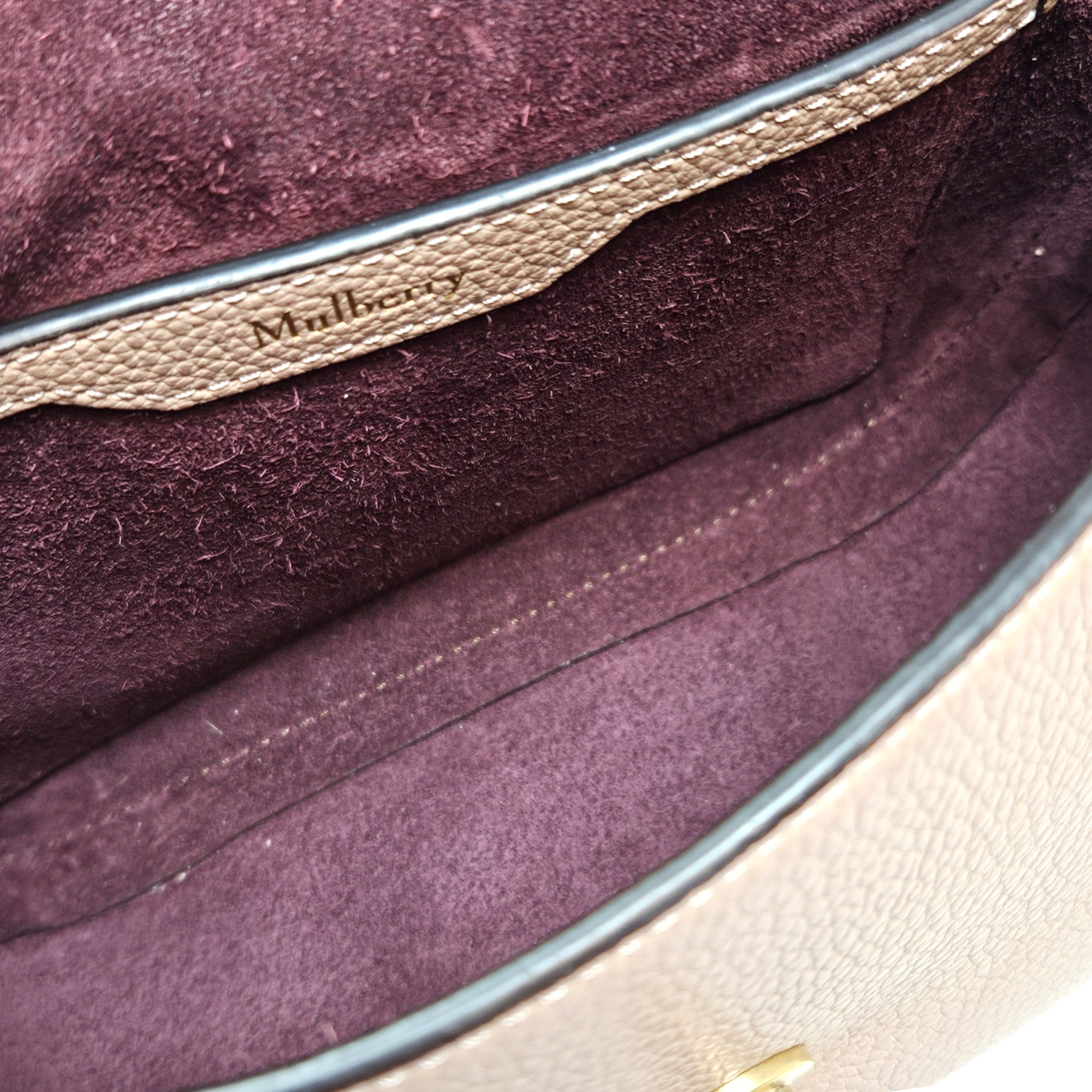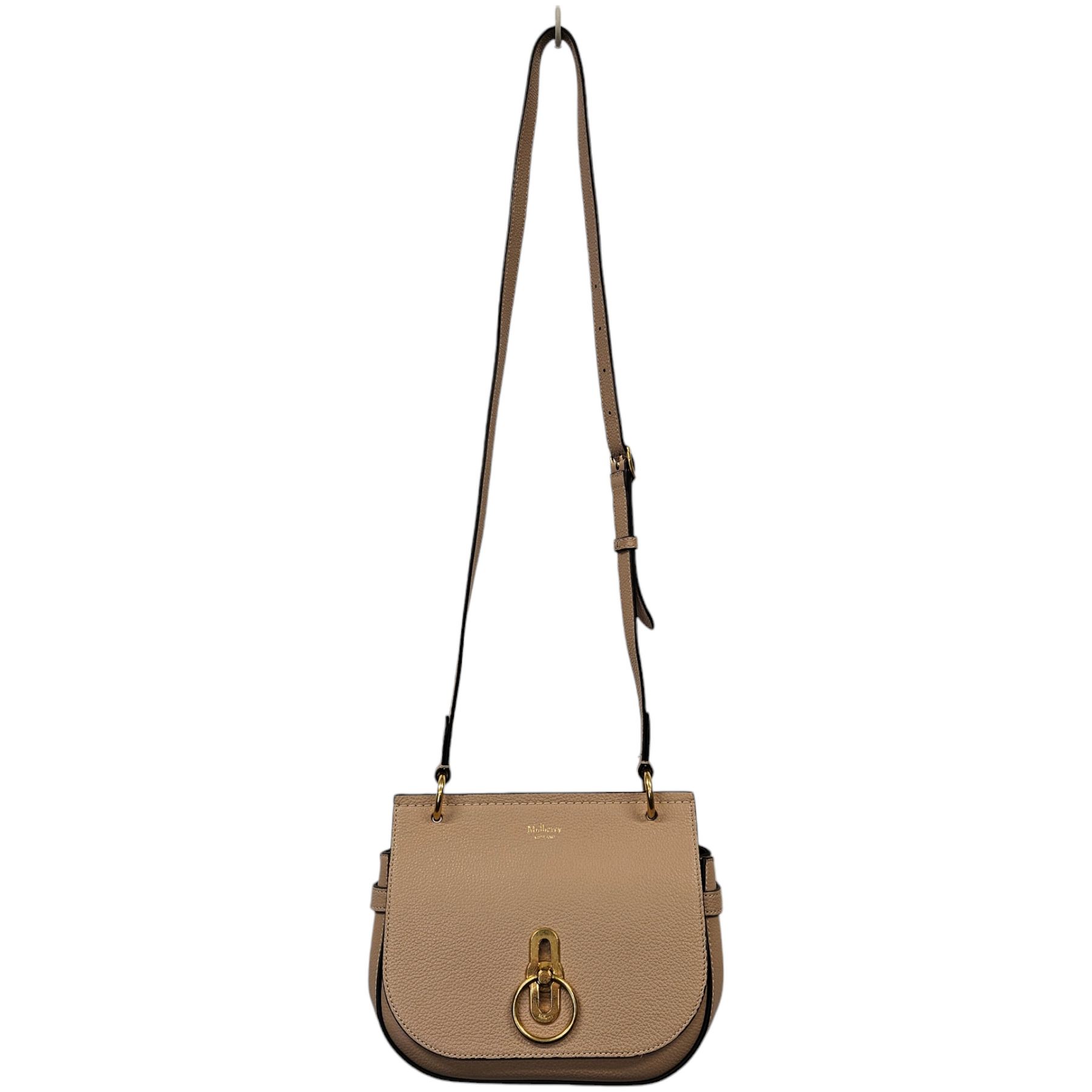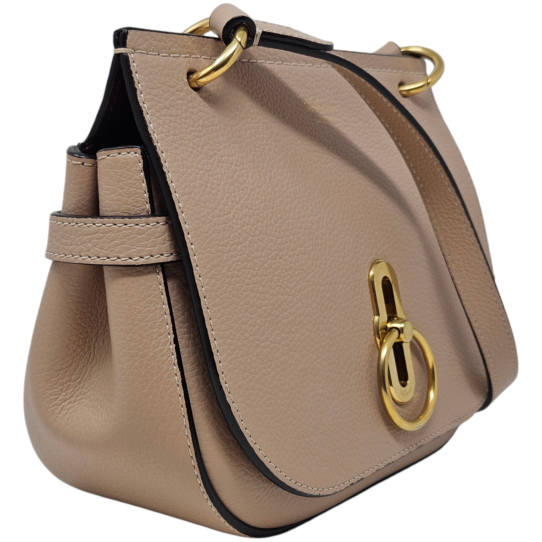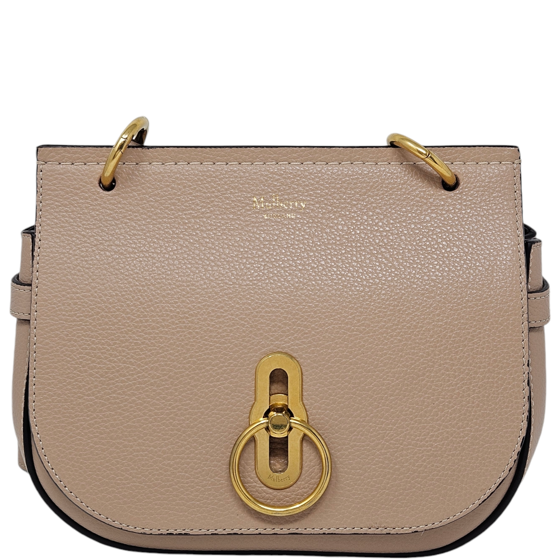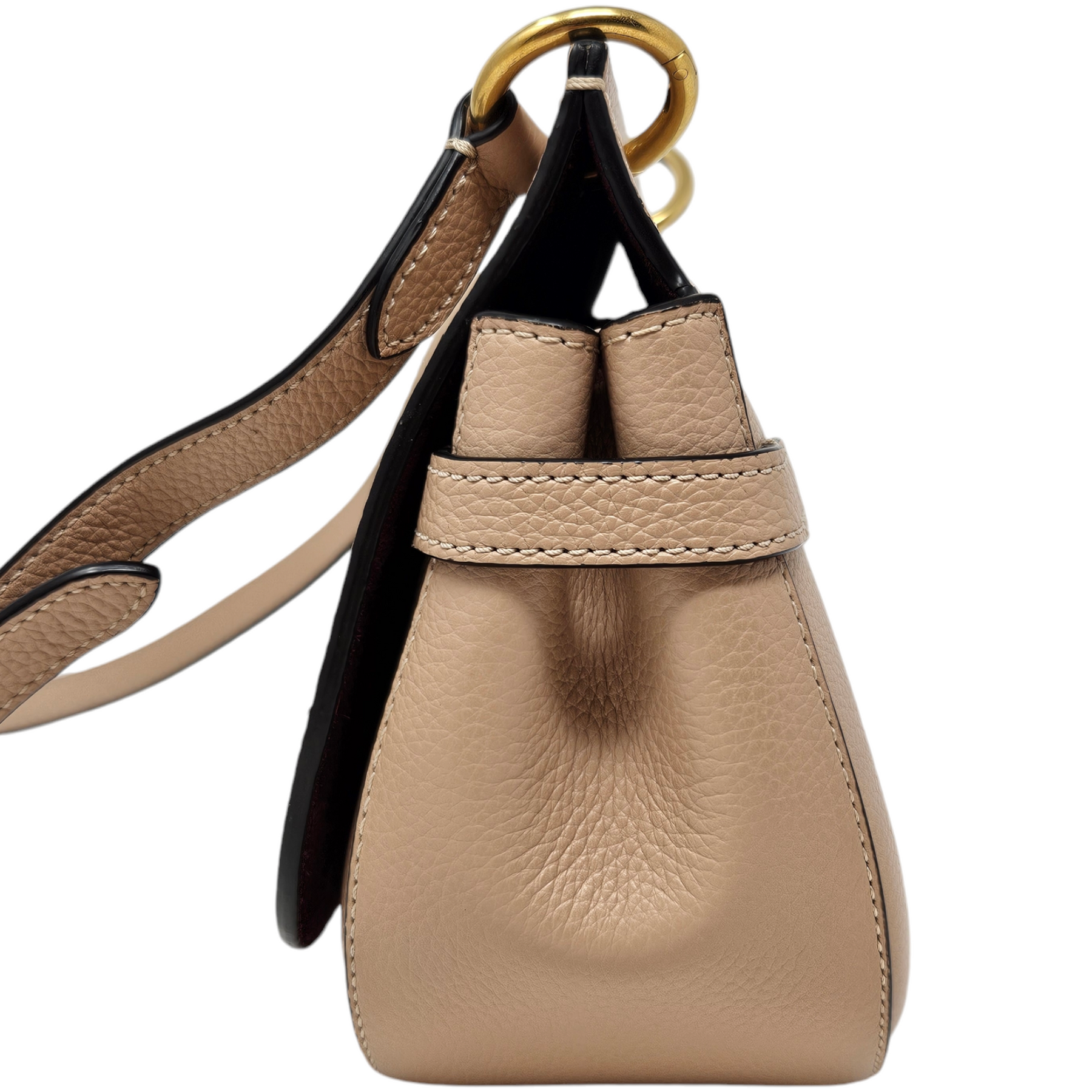 Materials: "Rosewater" (beige) pebbled leather with brass-finish hardware.