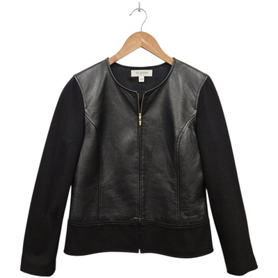 St. John Collection Leather & Jersey Jacket - Size 6/Small