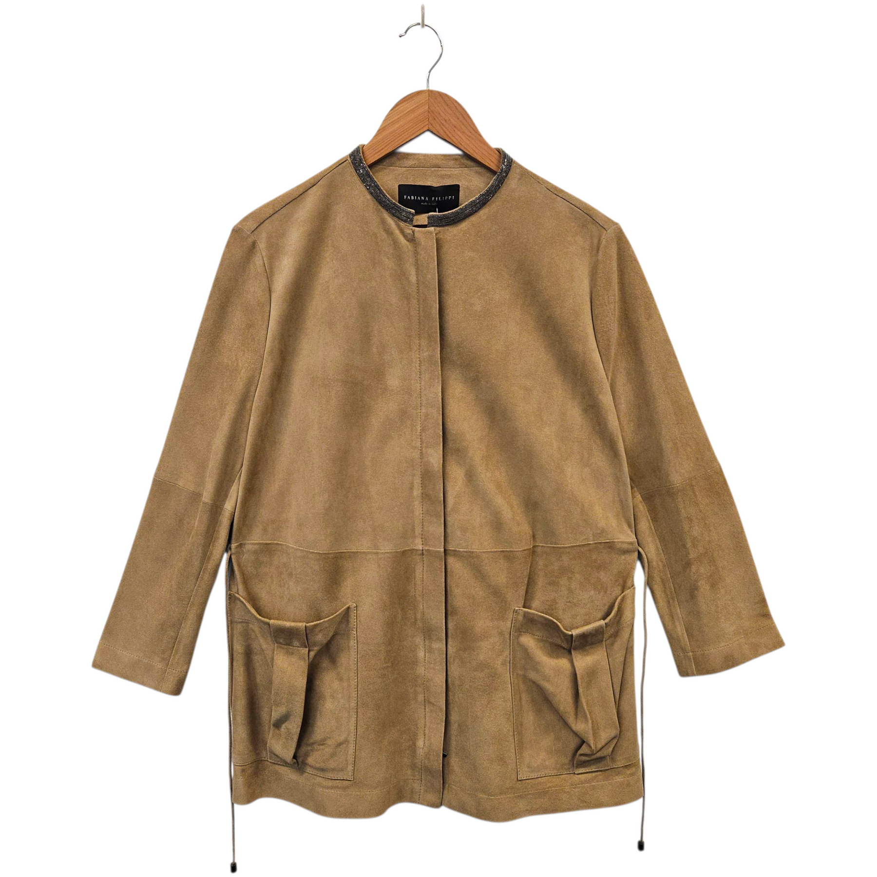 Approximate measurements: 44" bust, 42" waist, 46" bottom hem, 11" armhole drop, 20.5" sleeves, 5.5" shoulders, 28" total length.