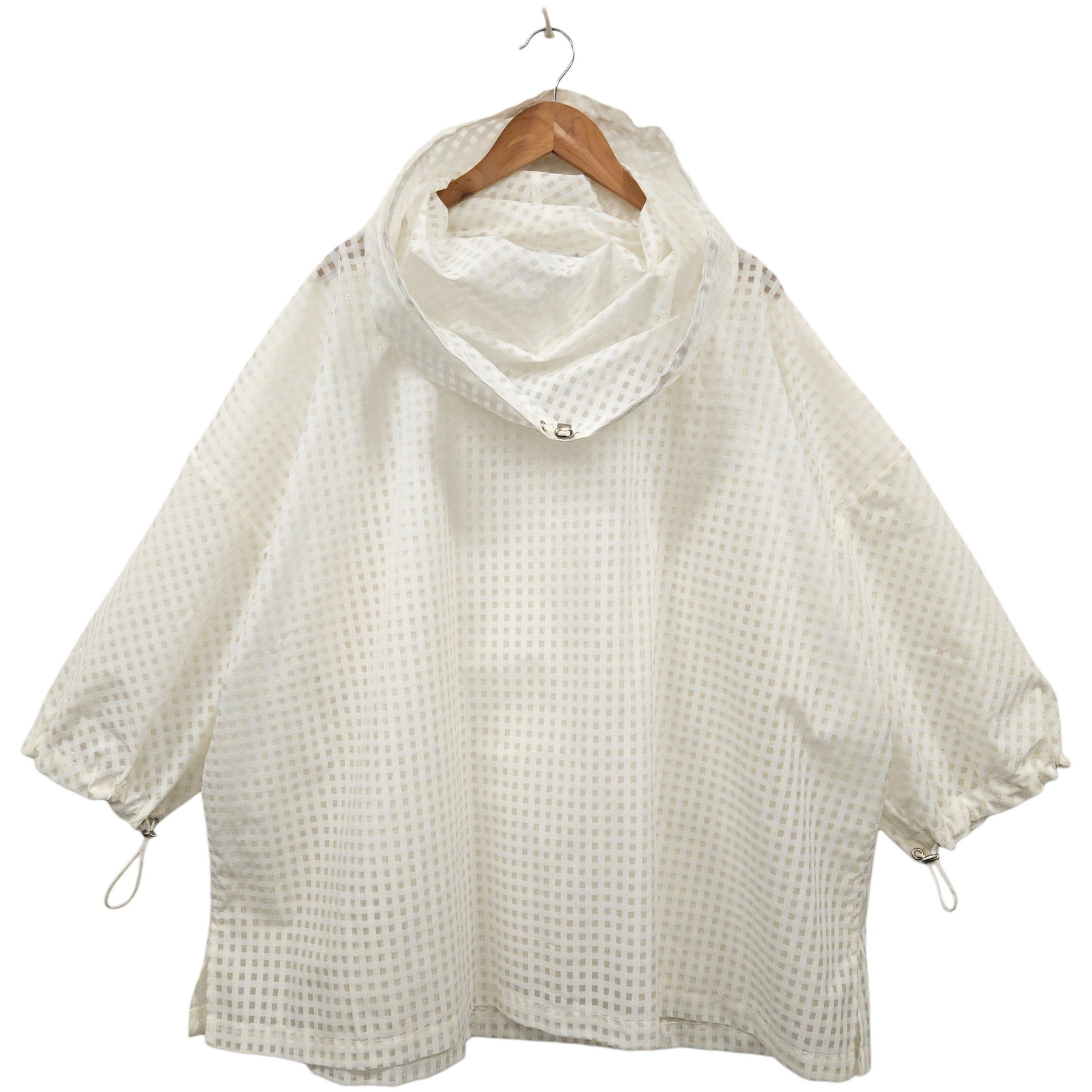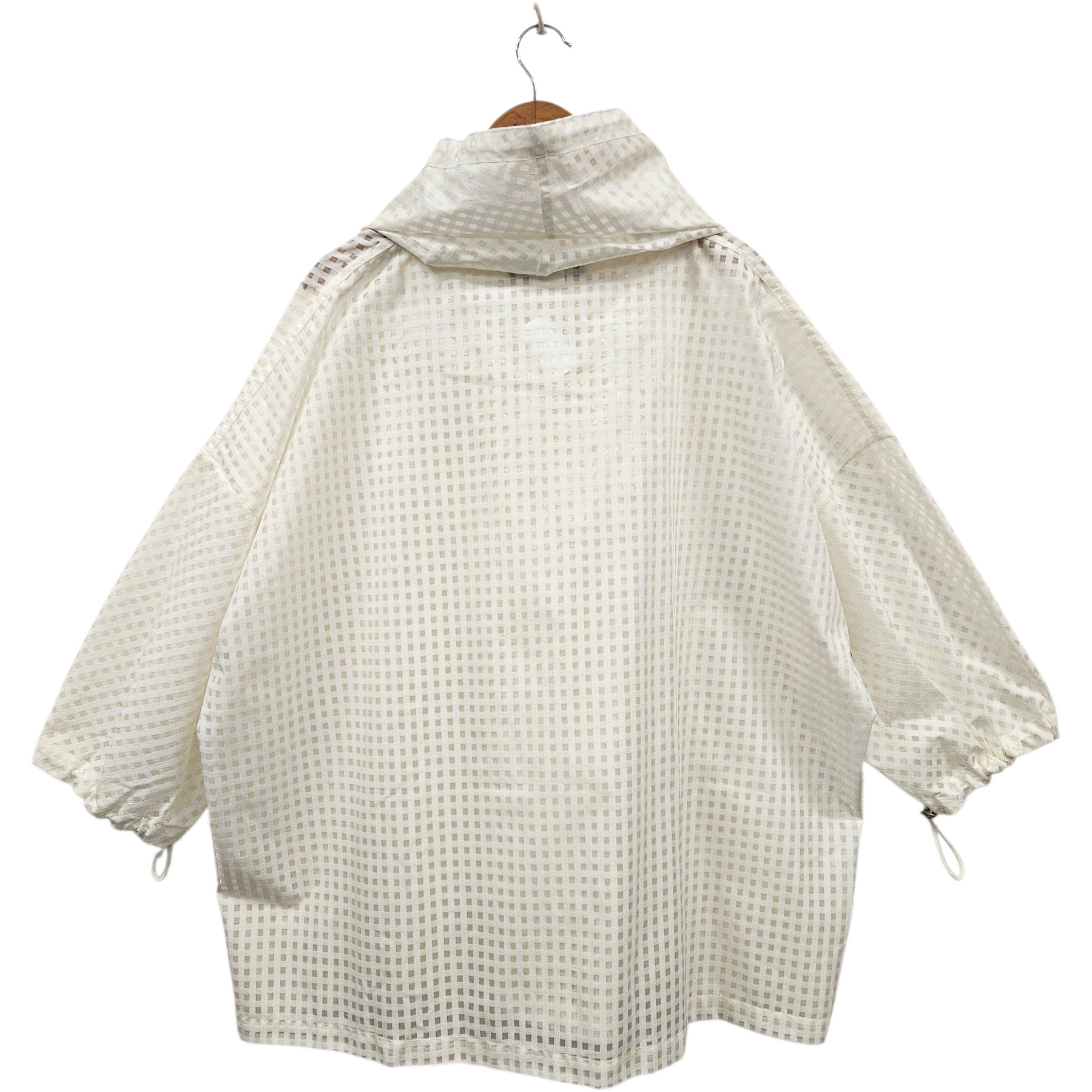 - Semi-sheer material with check pattern.