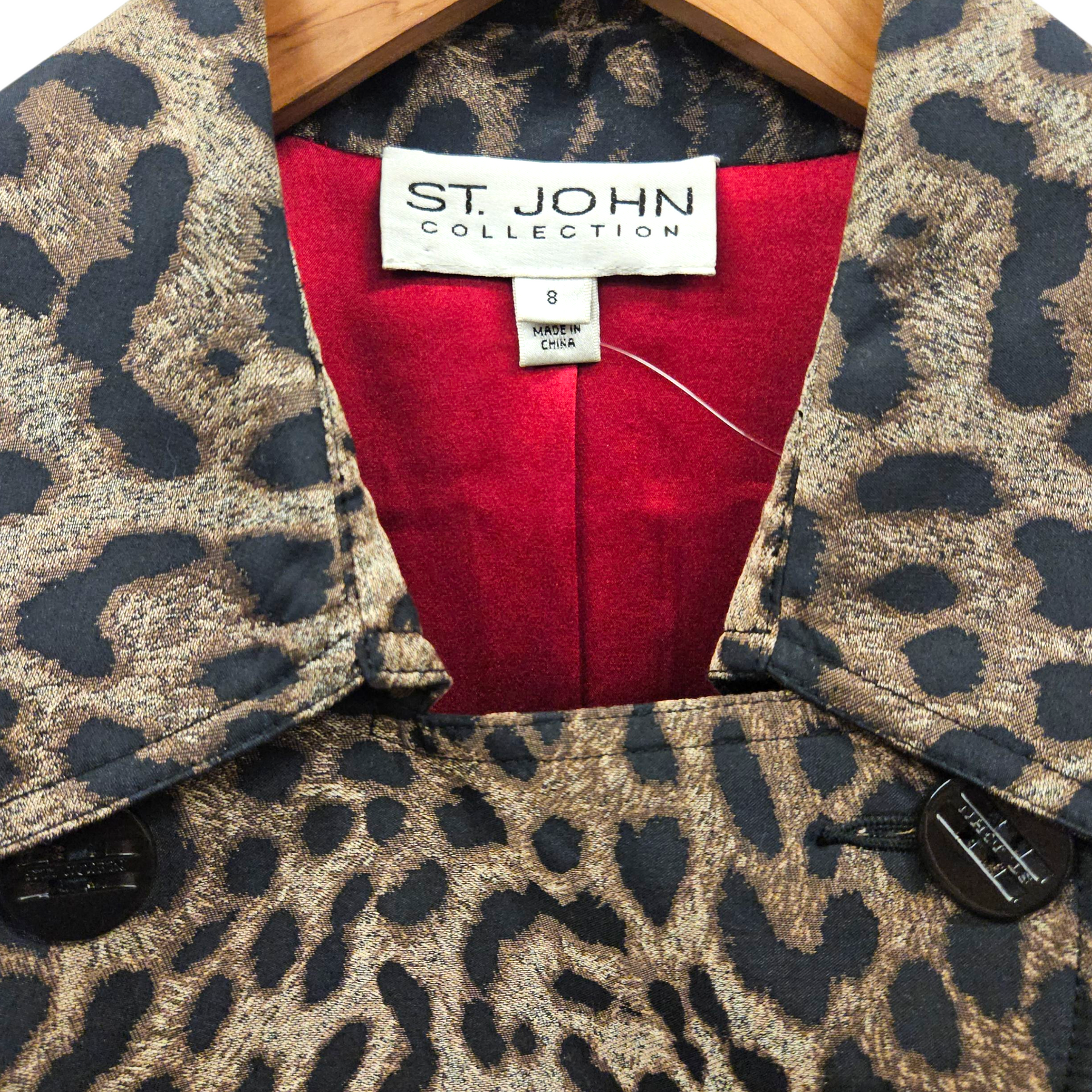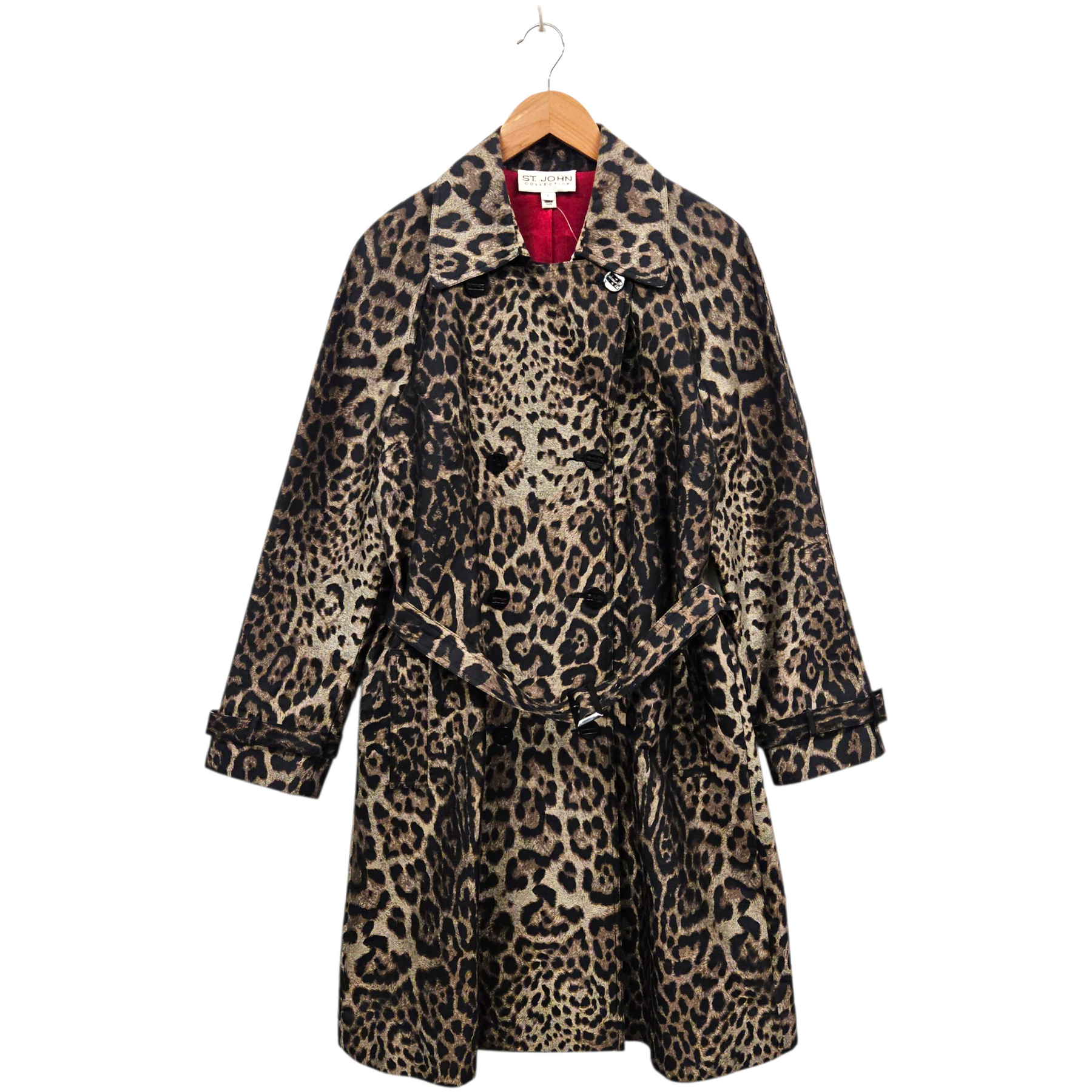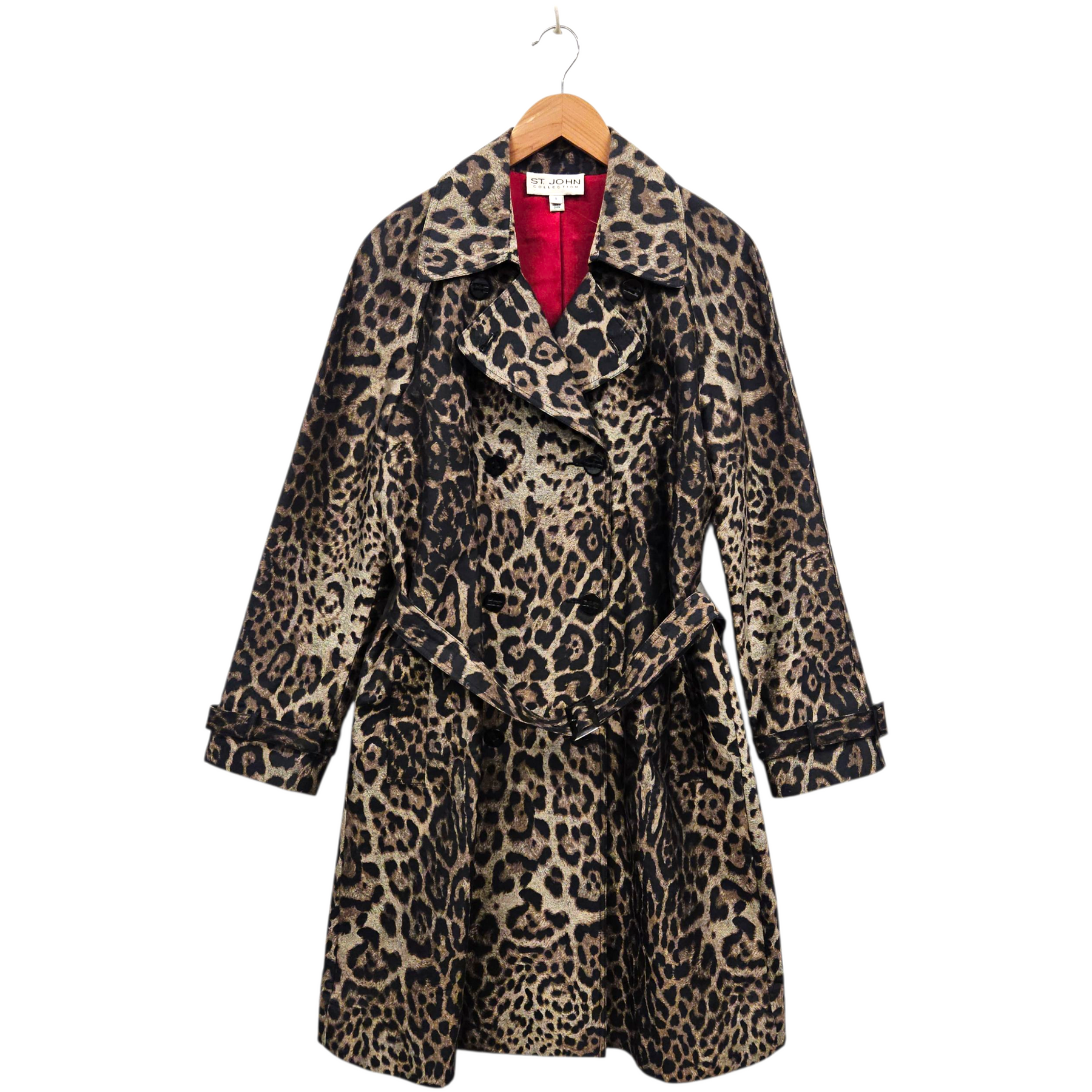 St. John Collection Leopard-Print Trench Coat - Size 8/Medium