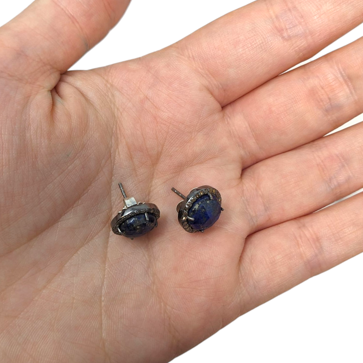 Materials: Faceted blue lapis, oxidized 925 sterling silver and diamond accent.
