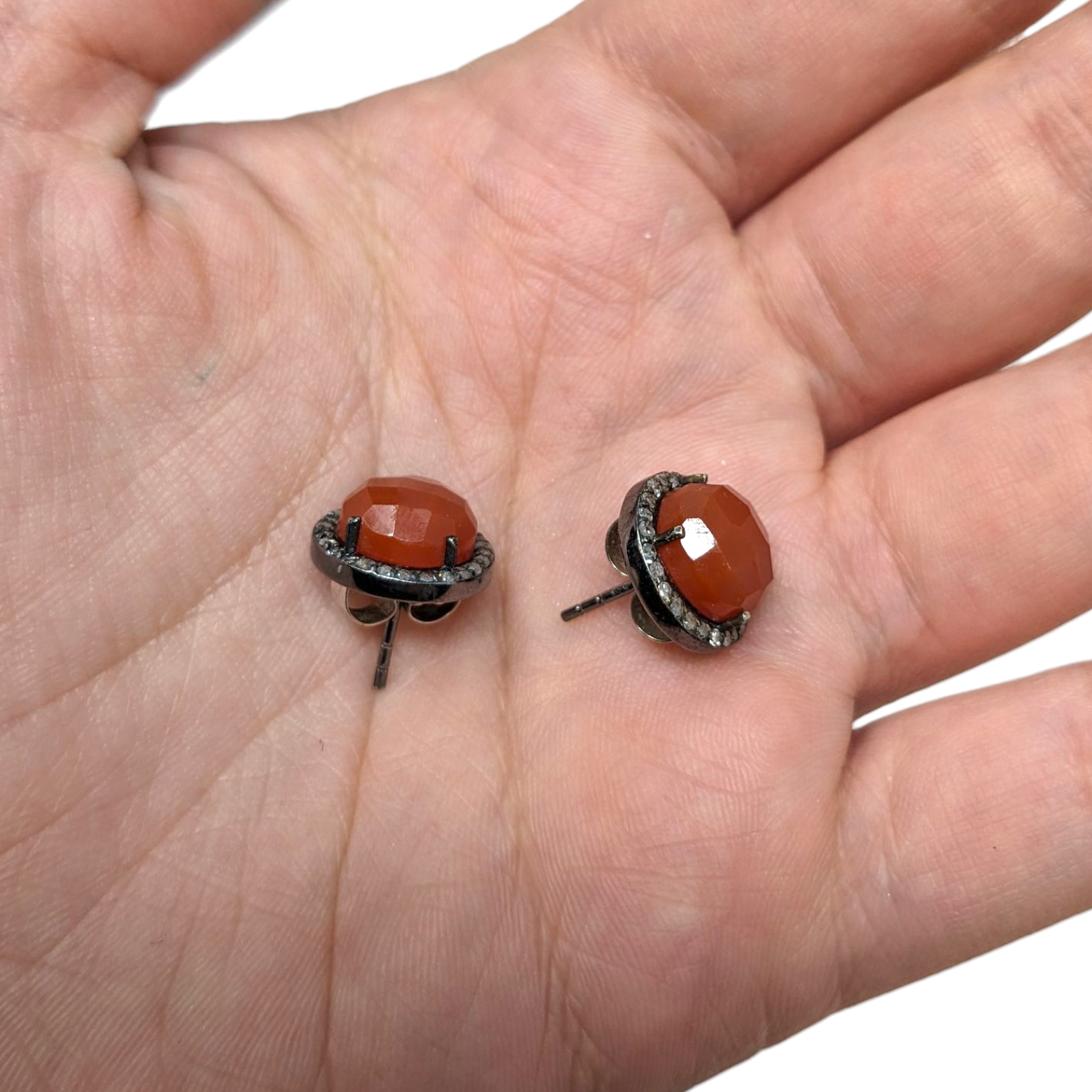 Margo Morrison Carnelian and Diamond Stud Earrings
