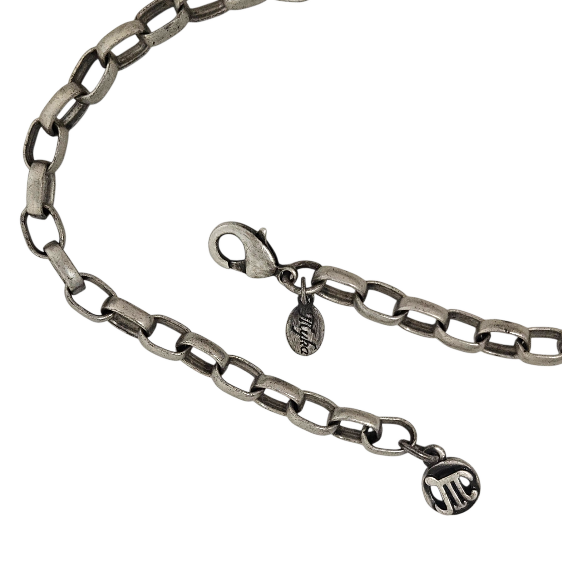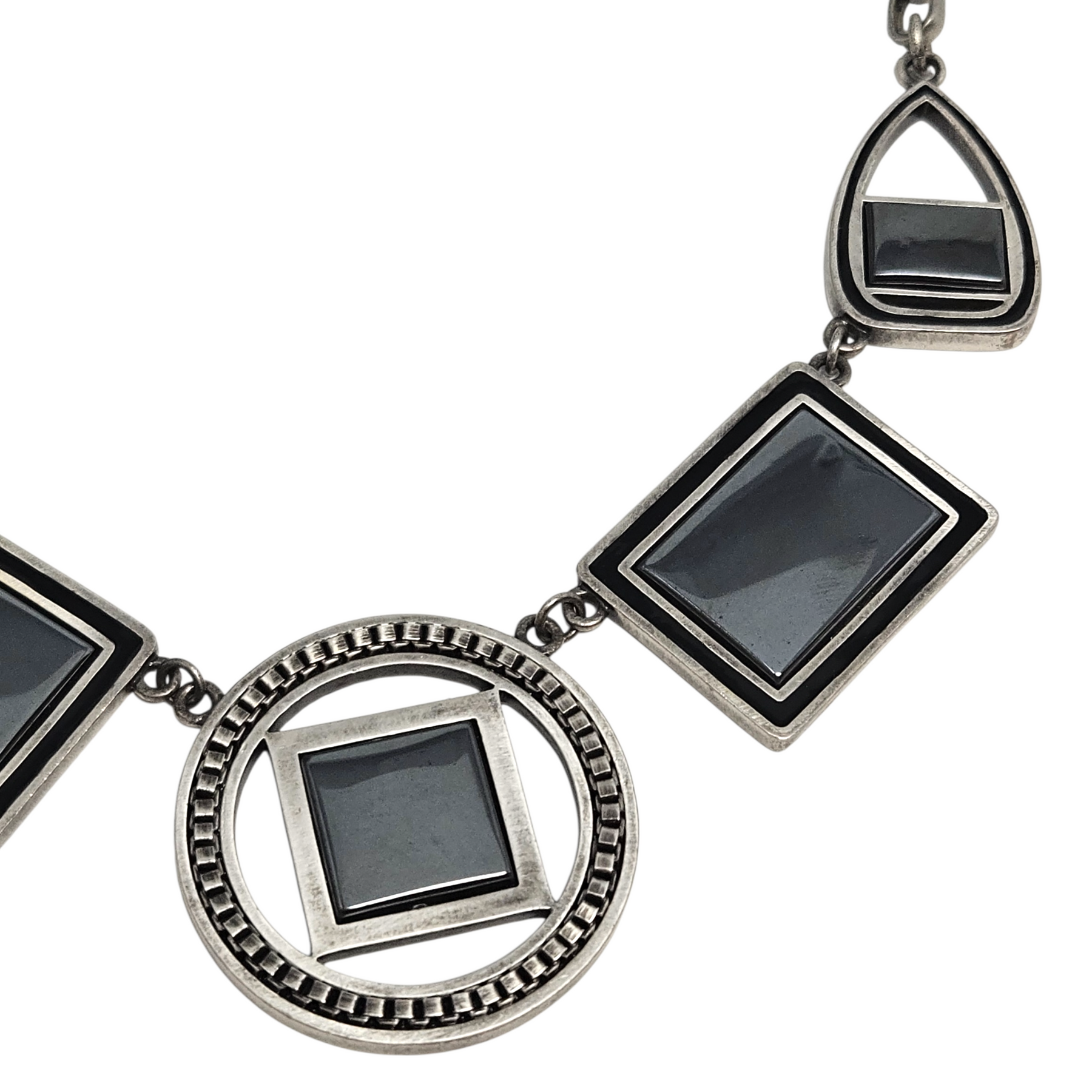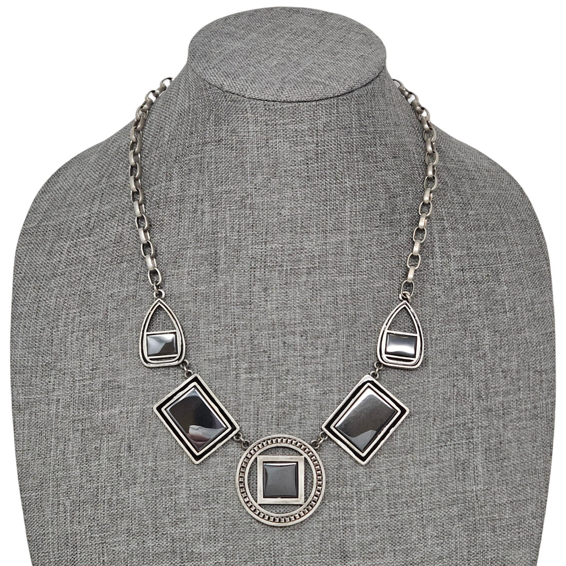 Materials: Antique-silver tone hardware with charcoal gemstone inlays (most likely hematite) & black accents.