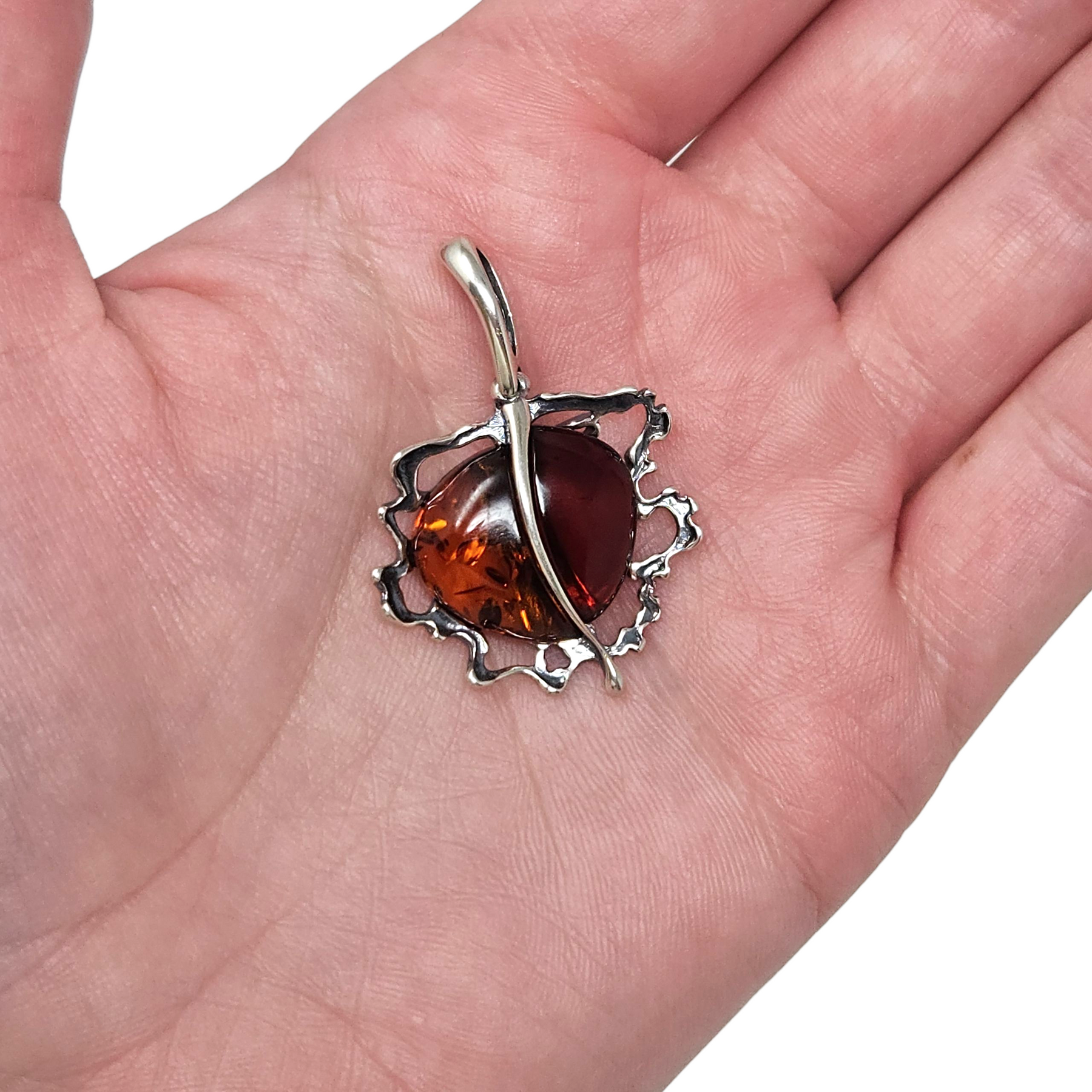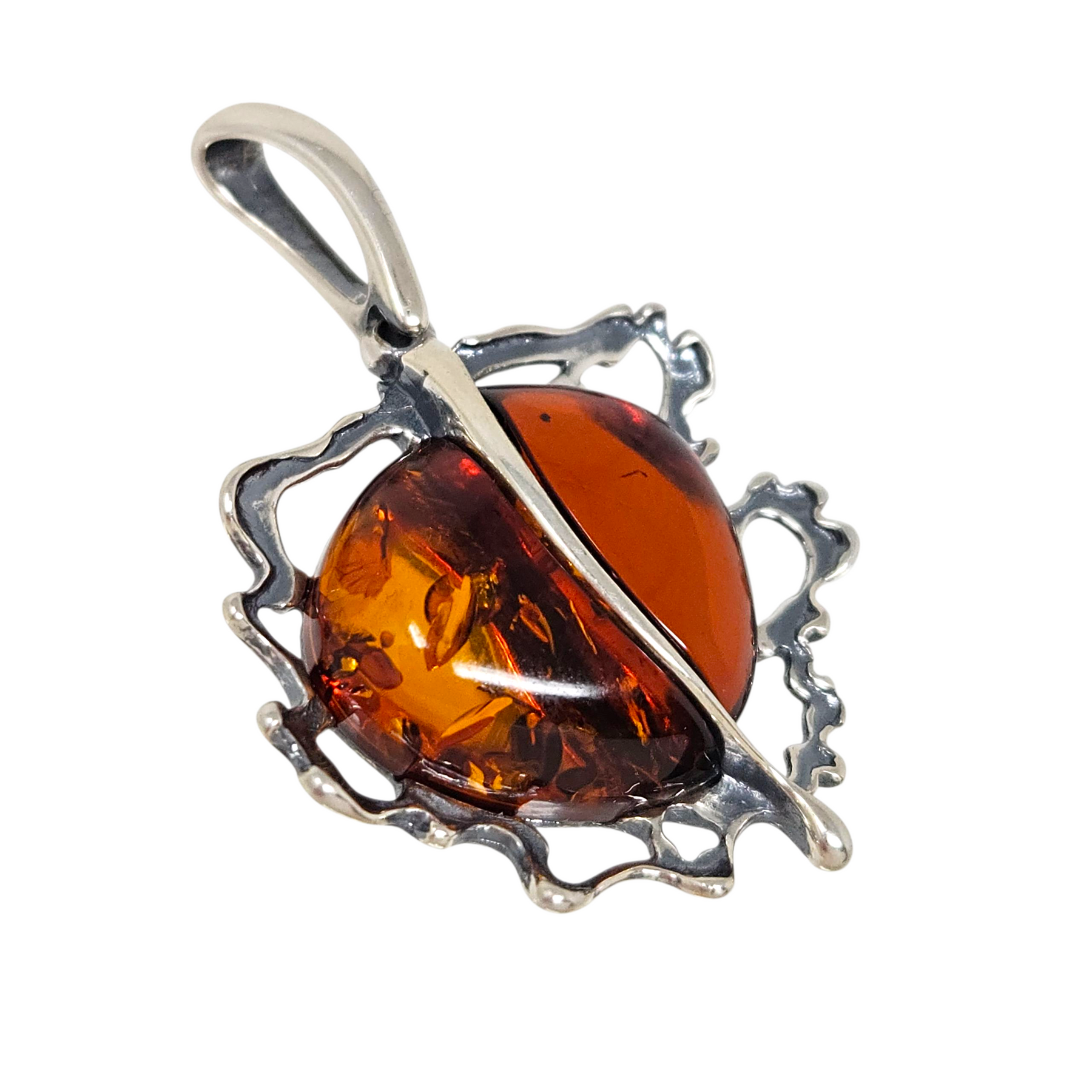 Materials: Genuine amber in a detailed .925 sterling silver setting.