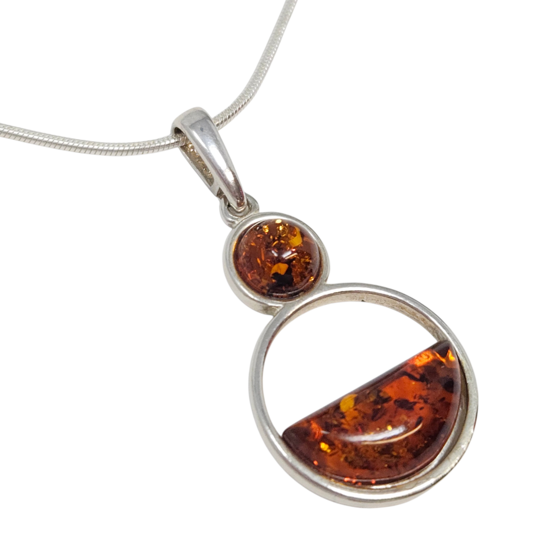 Sterling Silver & Amber Pendant Necklace