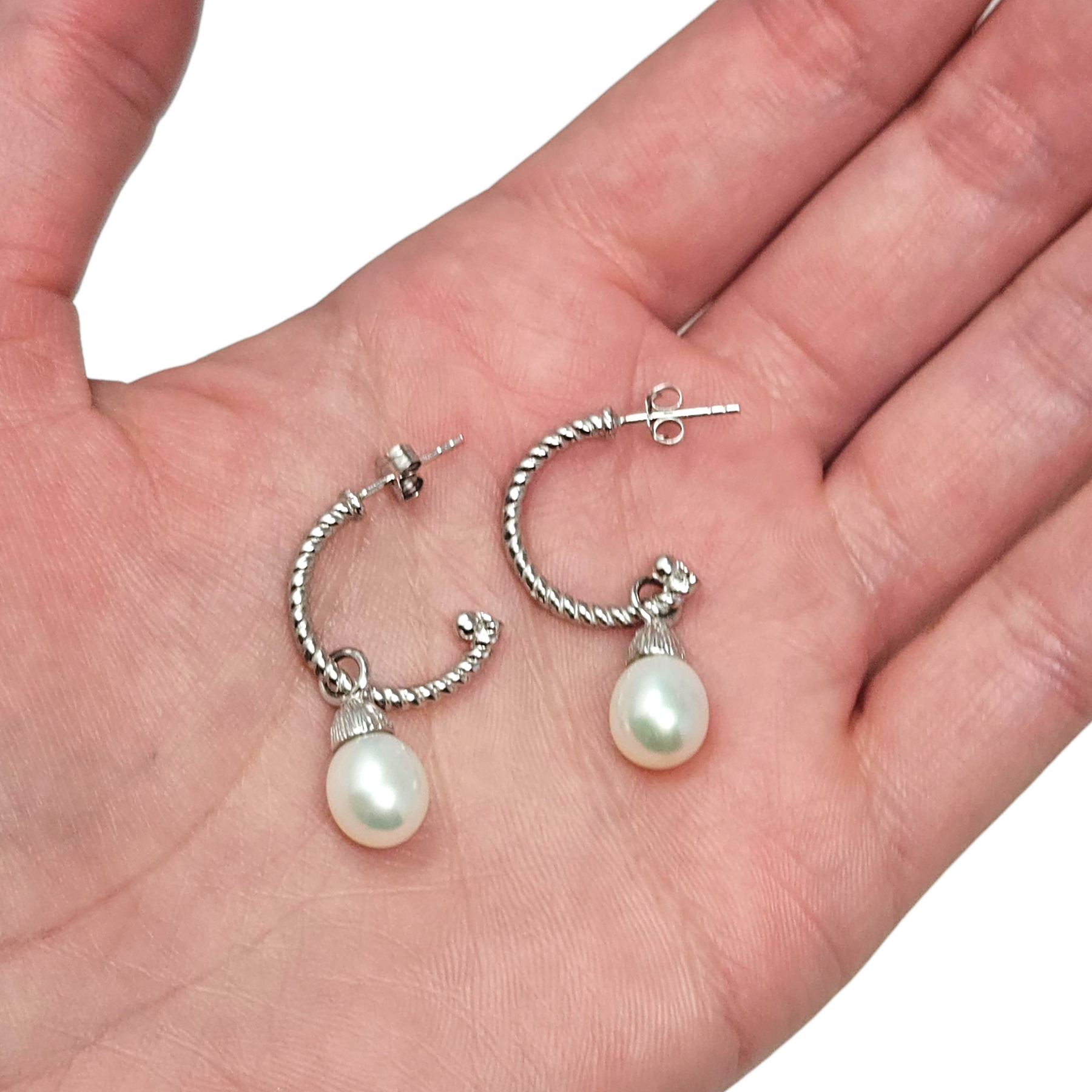 Materials: .925 sterling silver with a genuine dangling pearl.