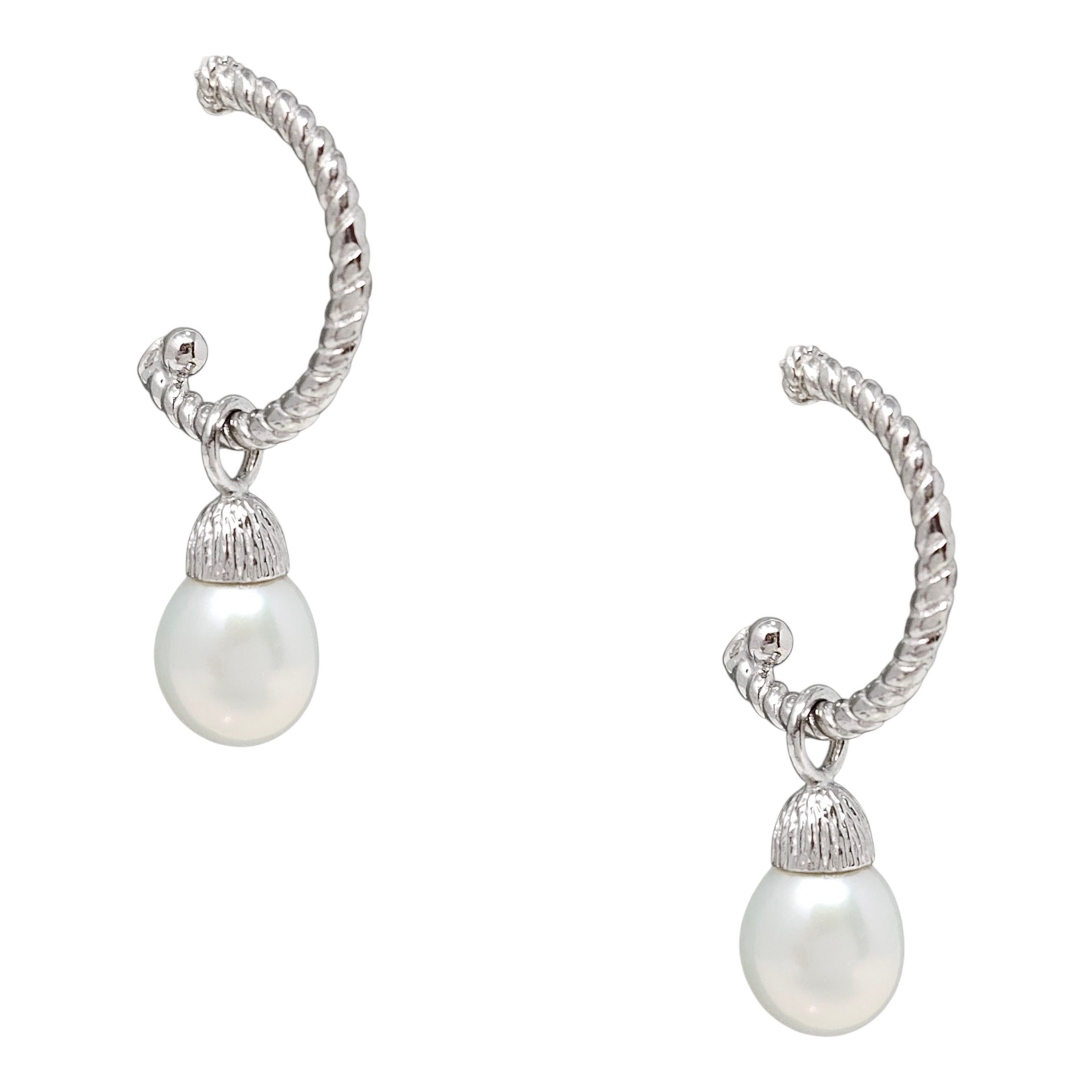 Sterling Silver Convertible Pearl Drop/ Hoop Earrings.