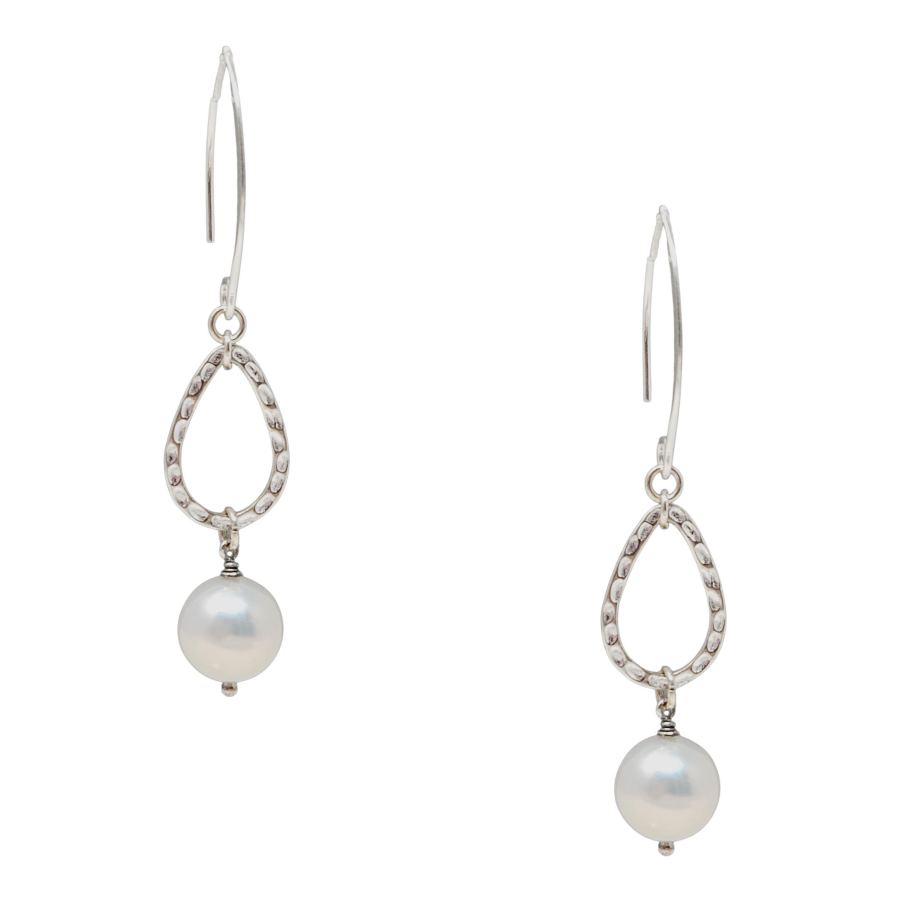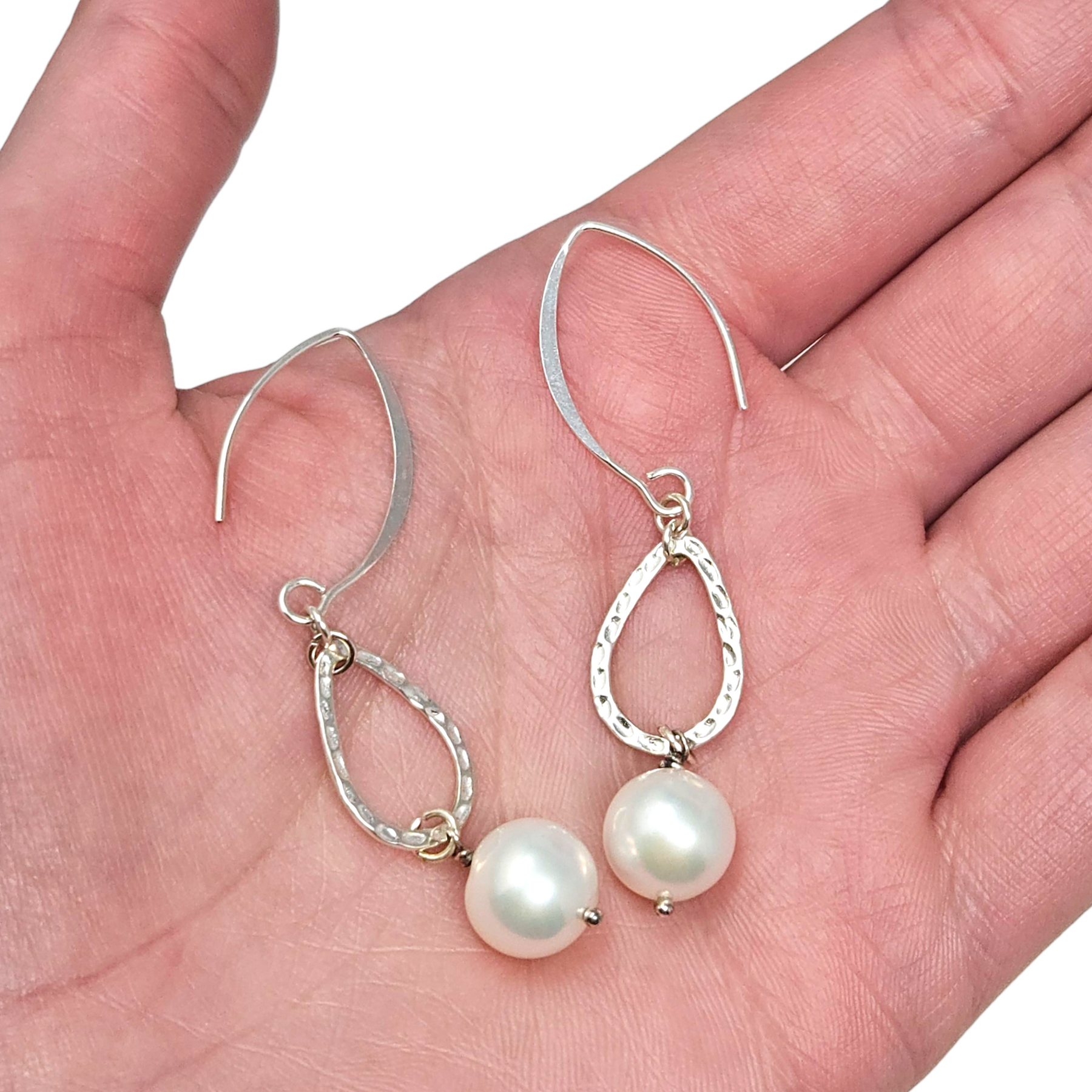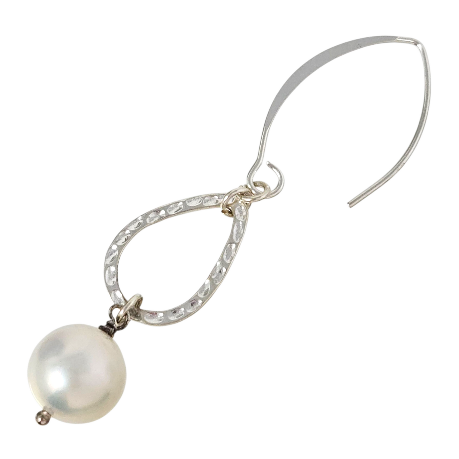 Materials: .925 sterling silver with hammered finish on teardrop, & dangling genuine pearl.