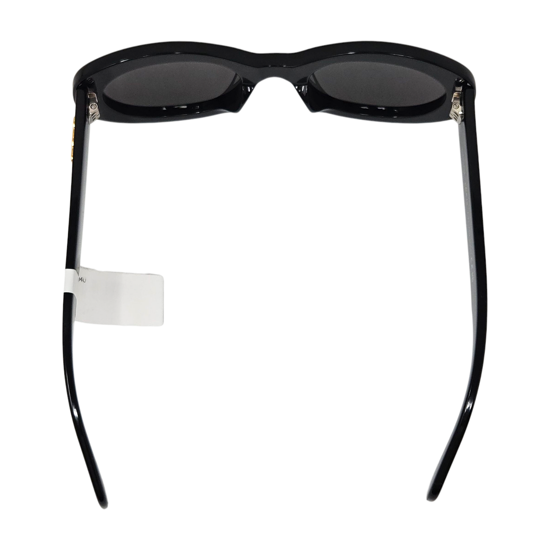 Materials: Black acetate frames with dark-grey lenses & gold-tone hardware.