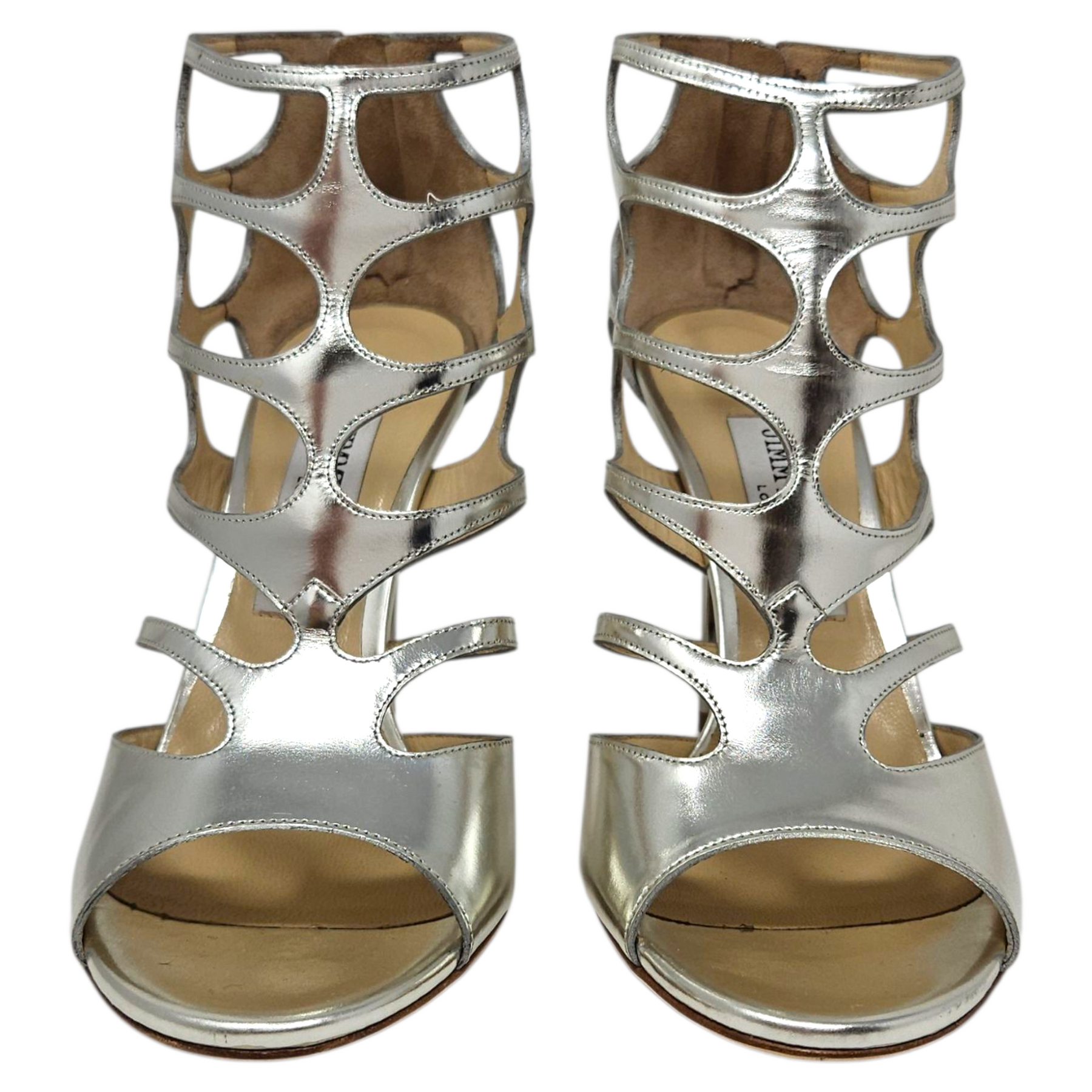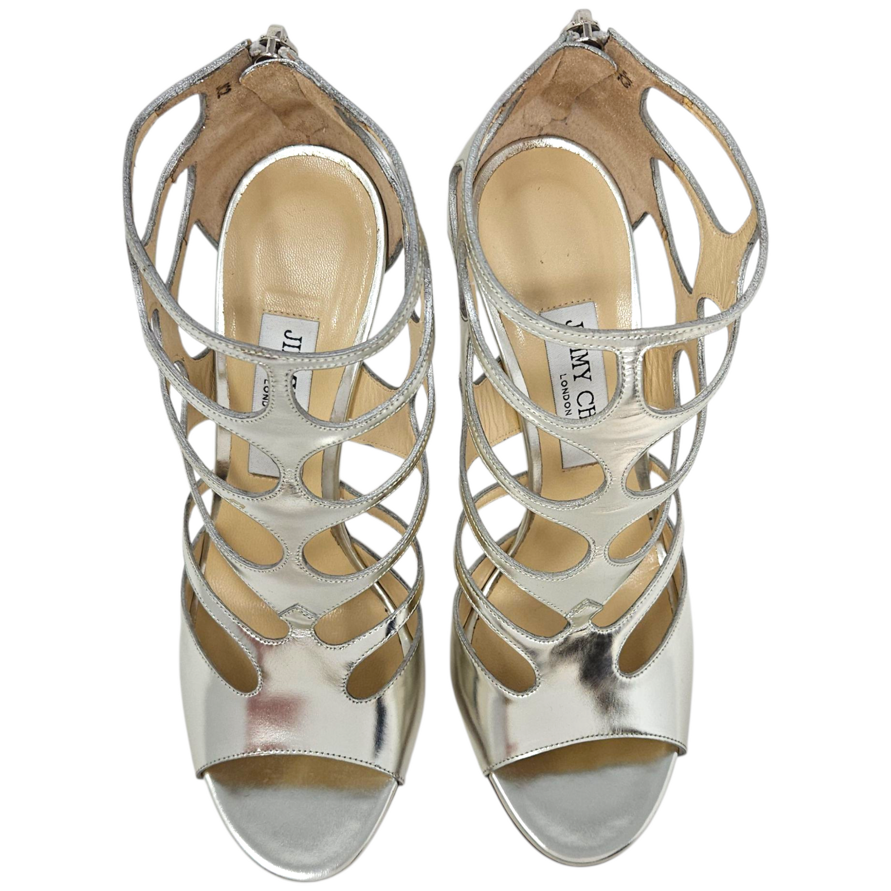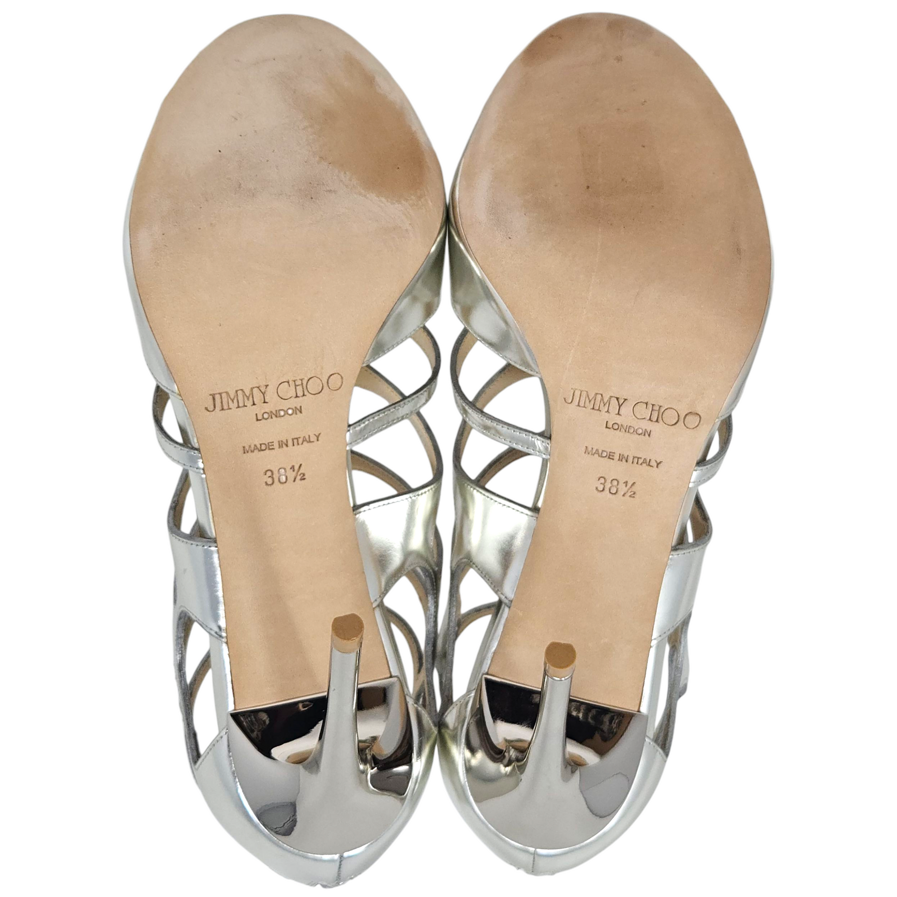 Jimmy Choo "Ren Mirror" Strappy Leather Heels size 38.5/8.