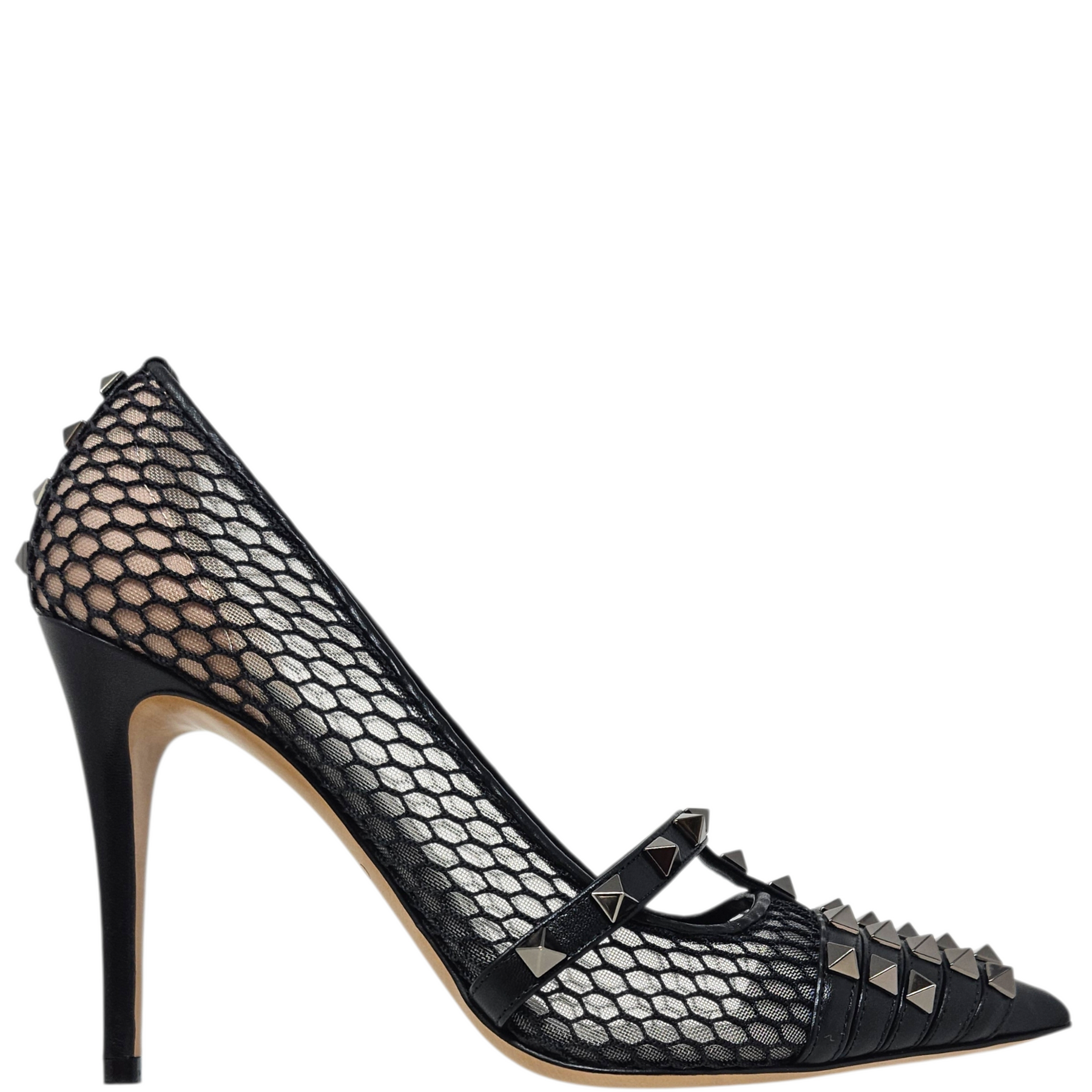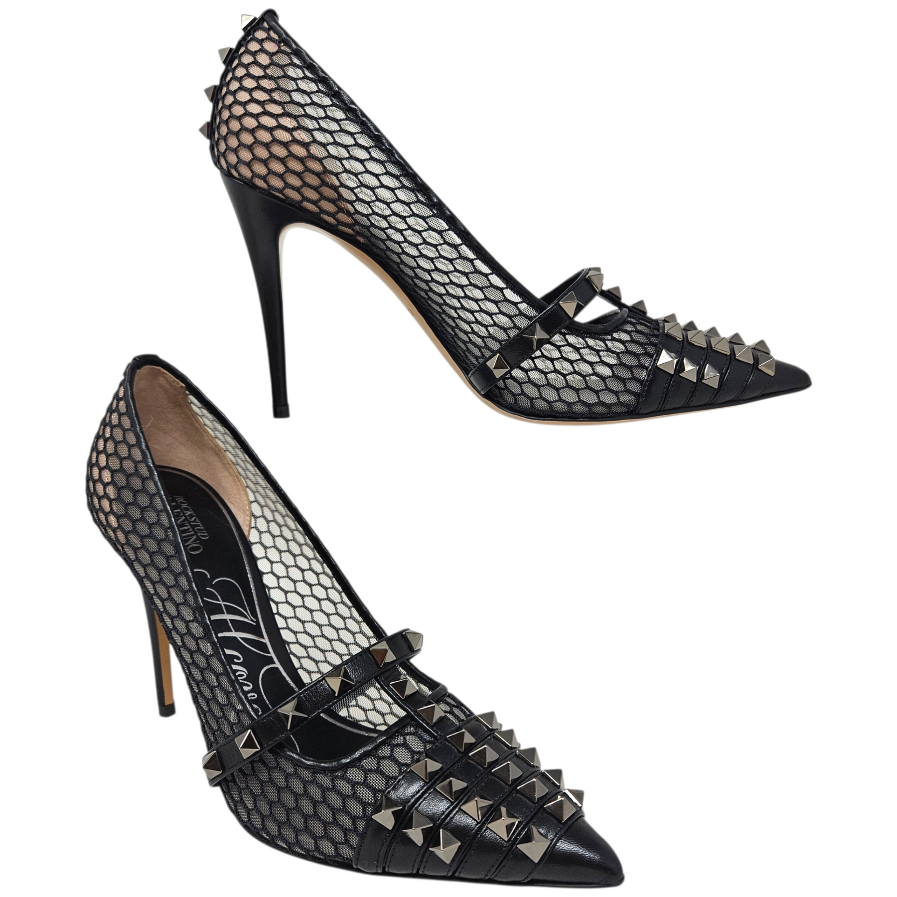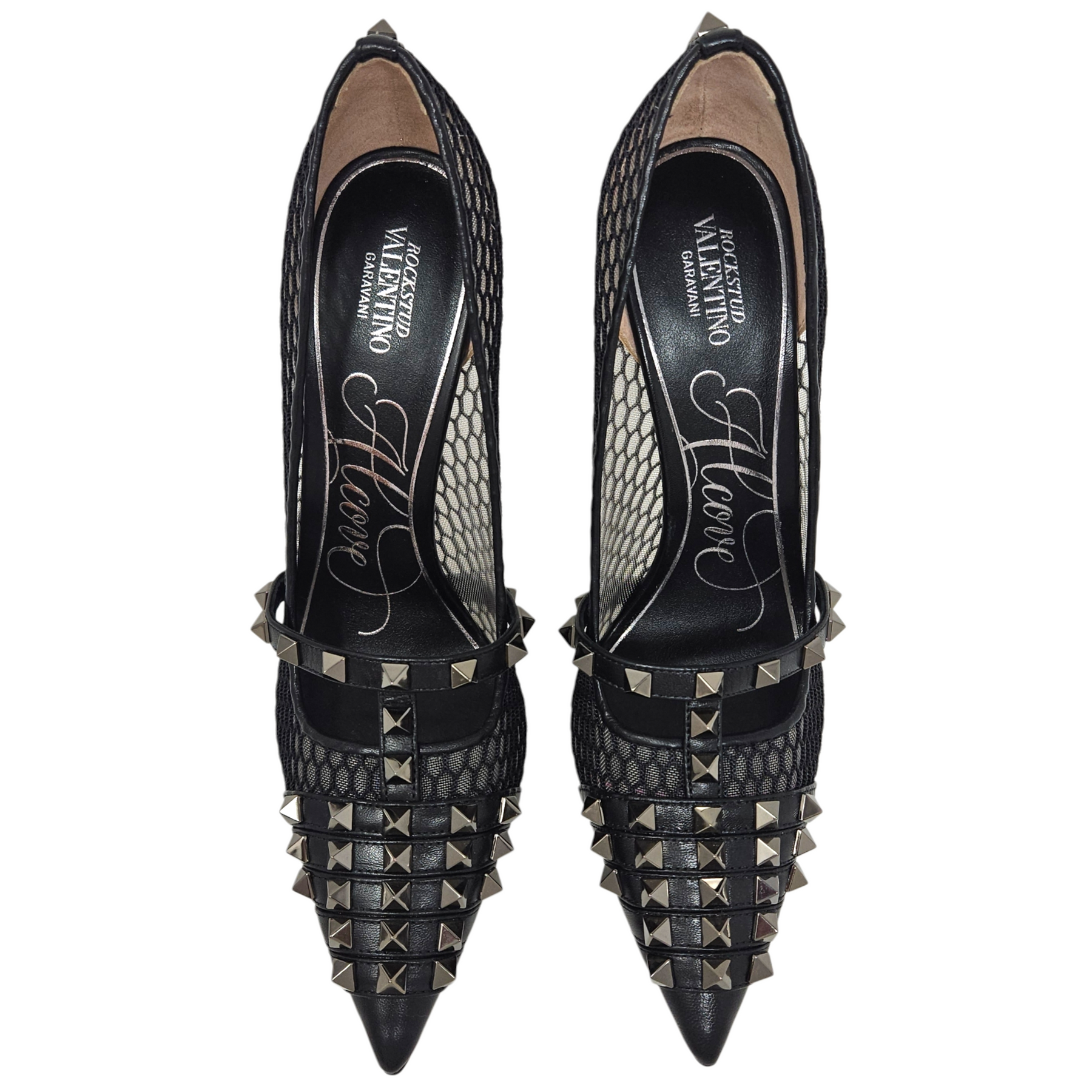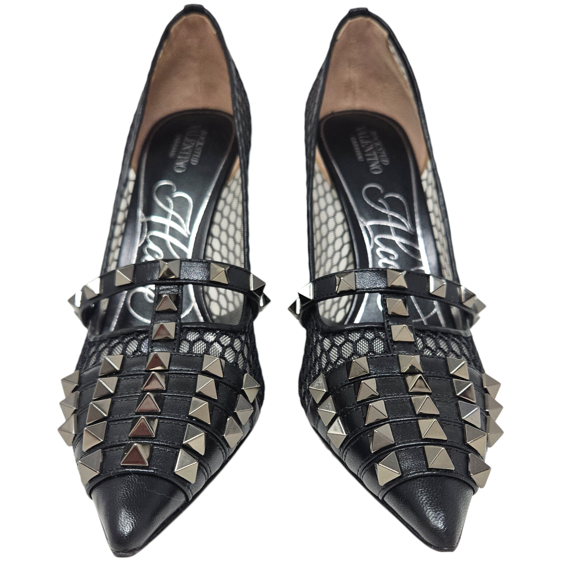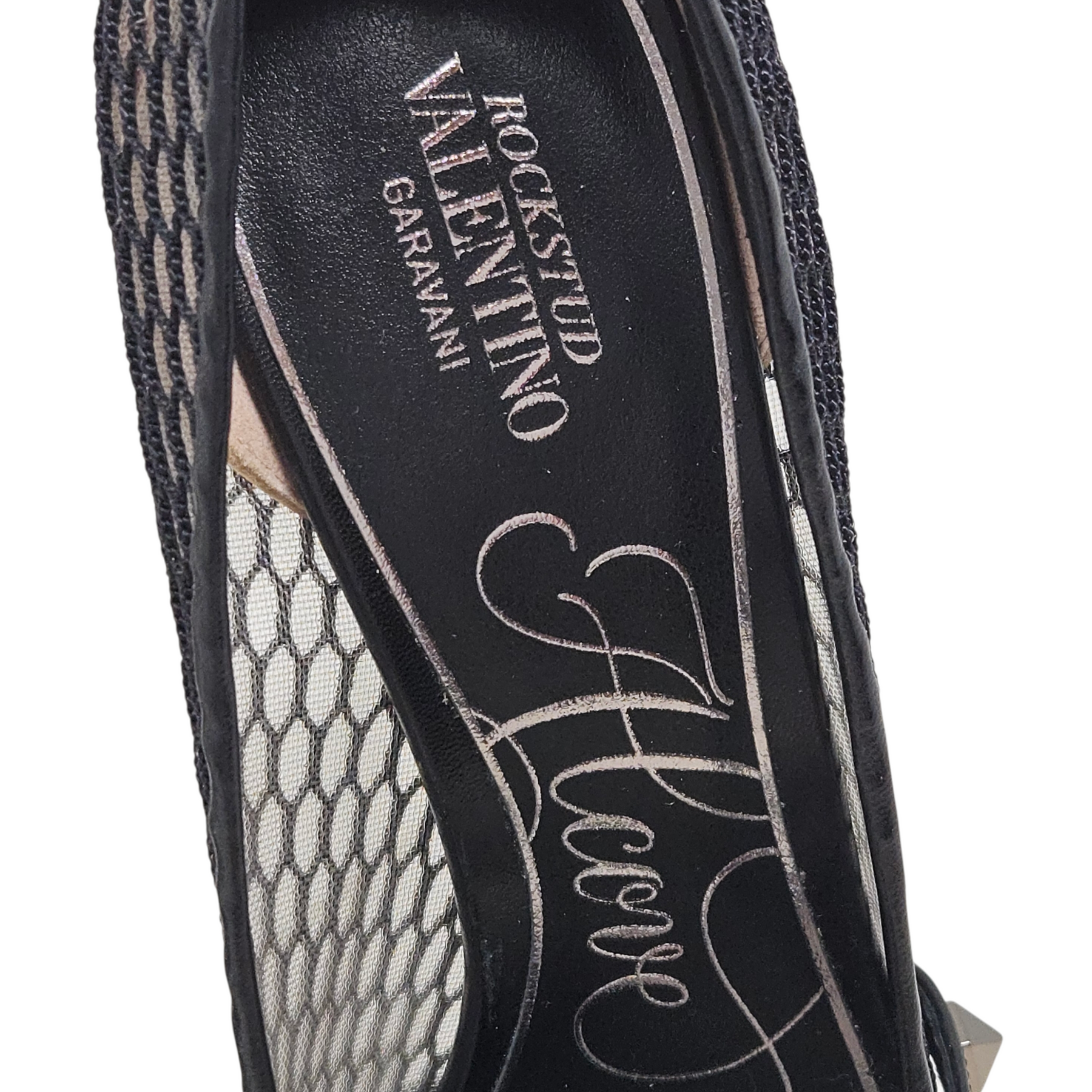Valentino Garavani "Rockstud Alcove" Mesh & Leather Pumps size 38/8 (narrow fit).