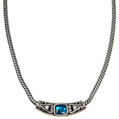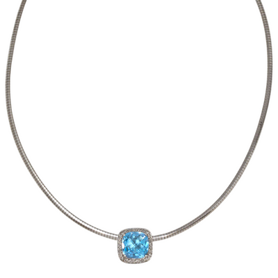 Sterling Silver, Blue Topaz, & Diamond Pendant Necklace