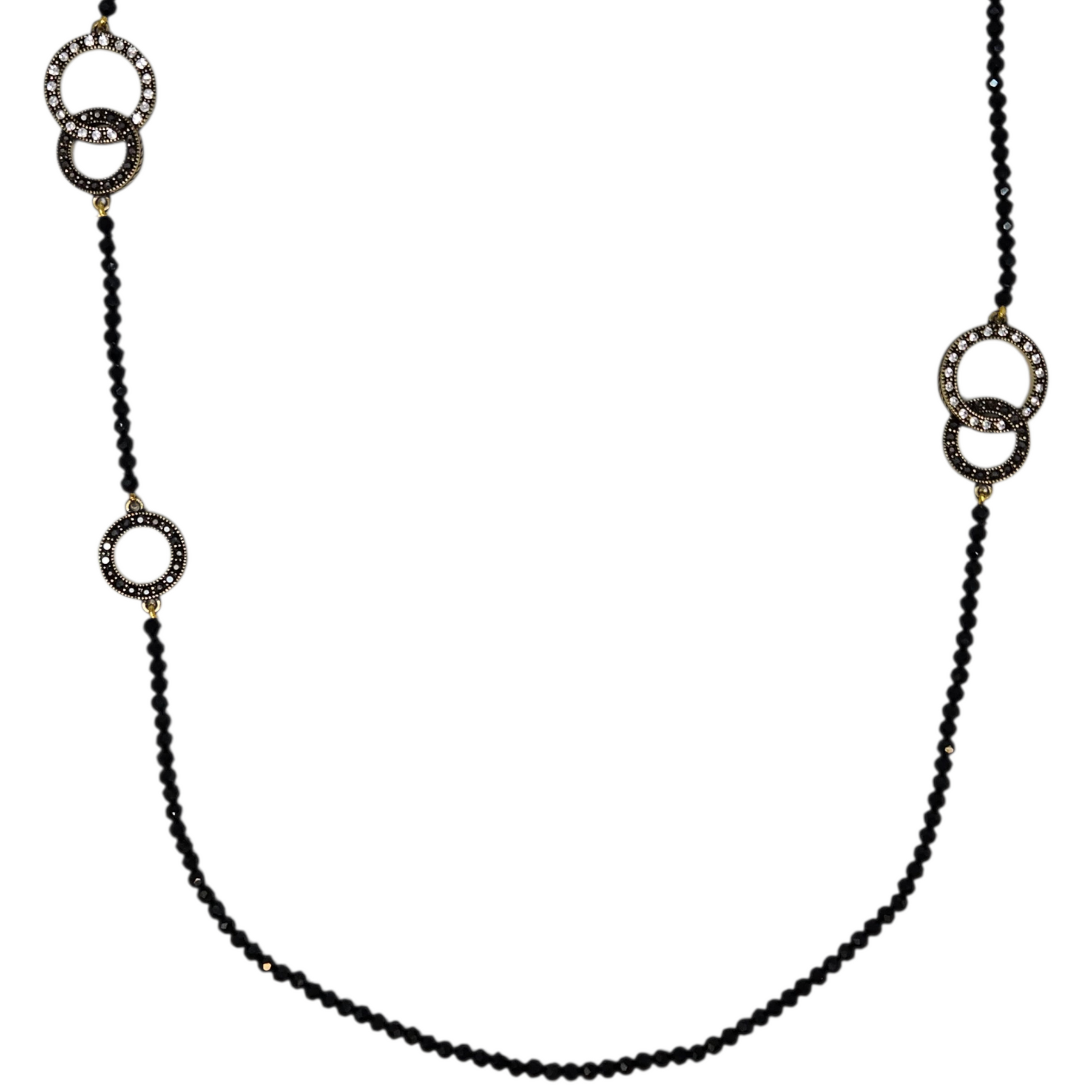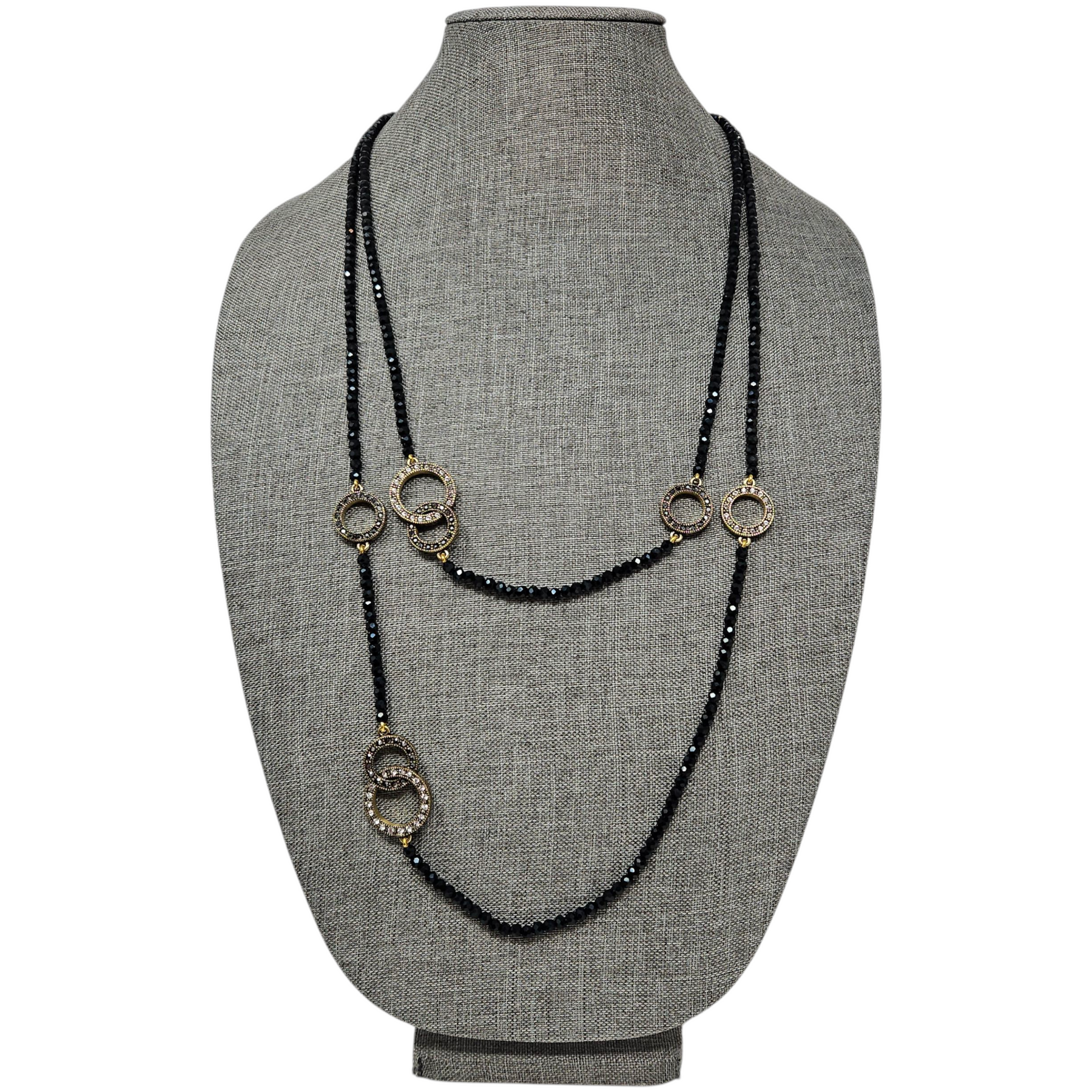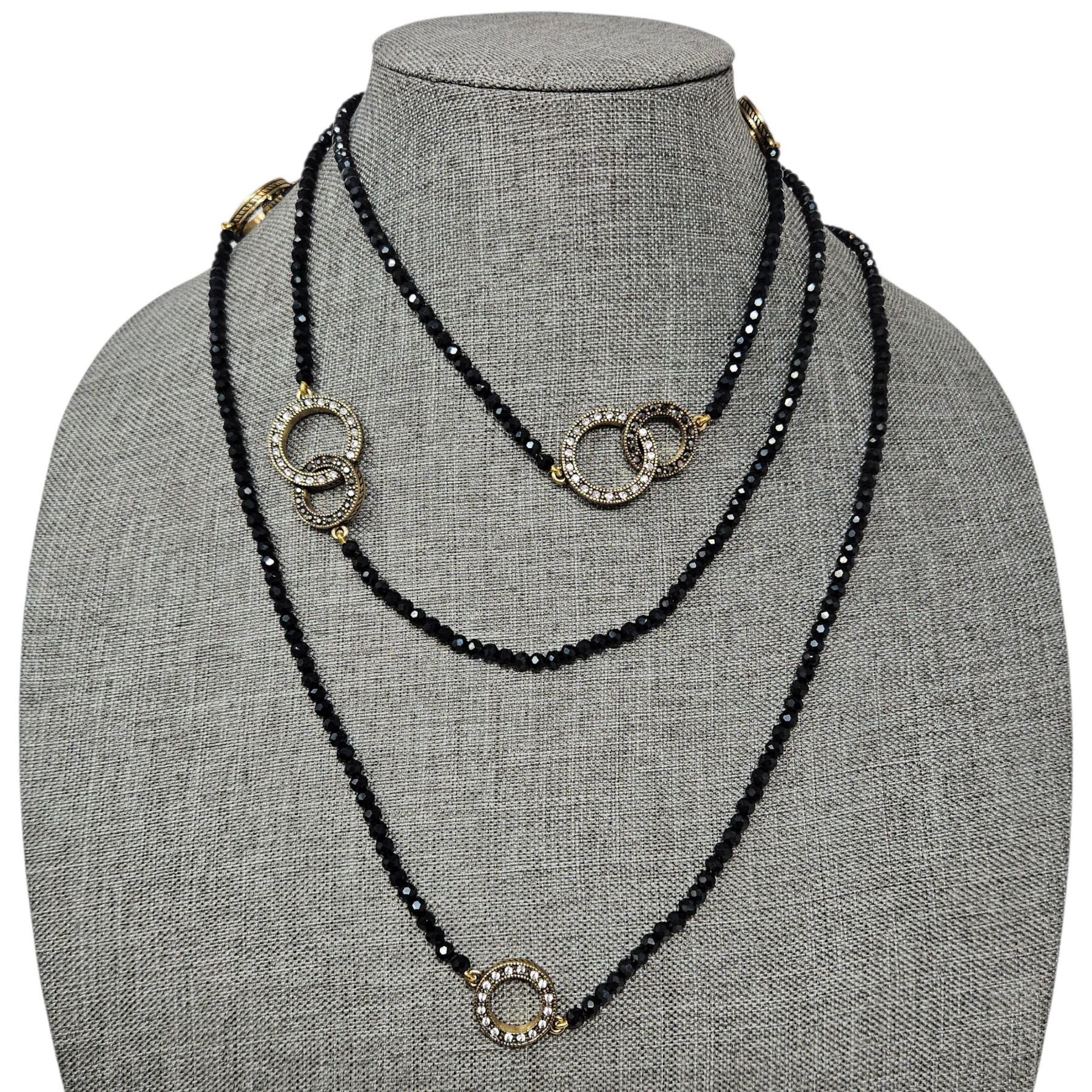 Materials: Black faceted crystal beads, bronze-tone plating over brass, with clear & grey crystal accents.