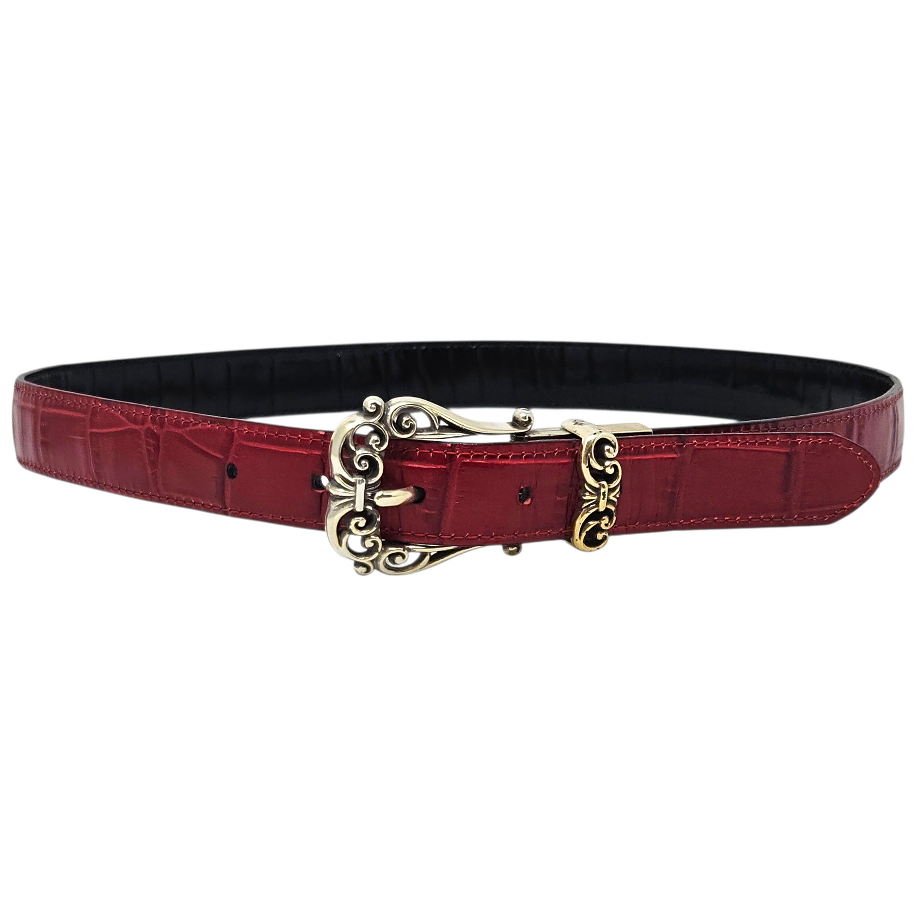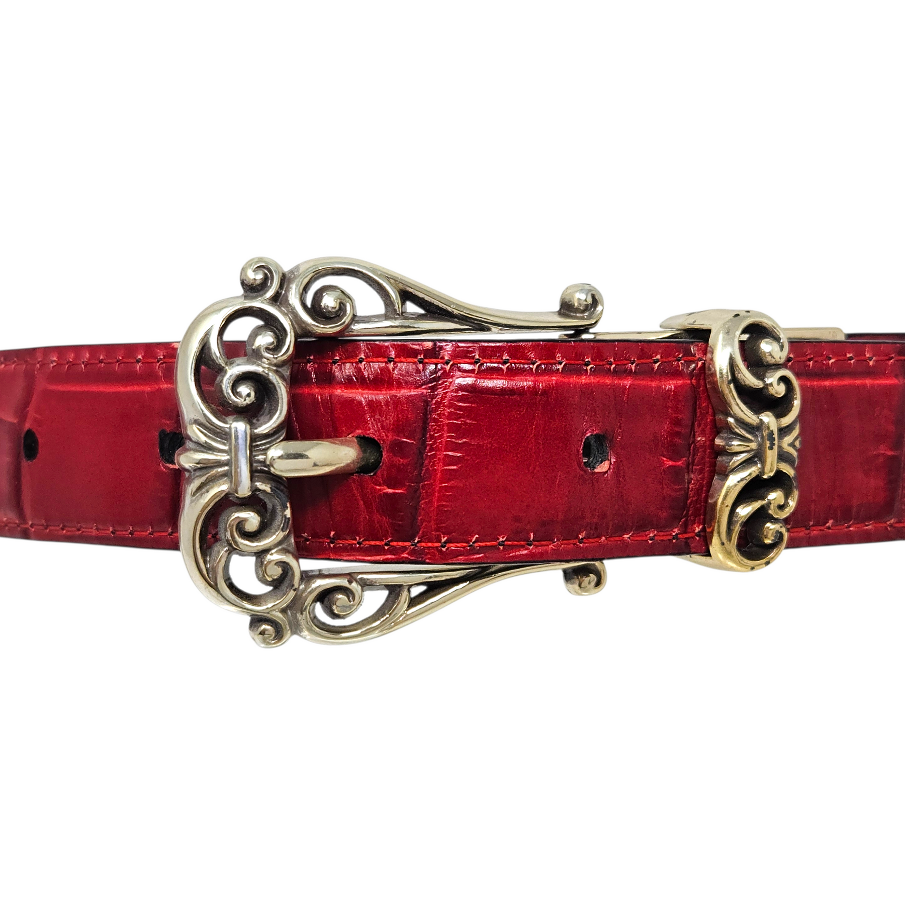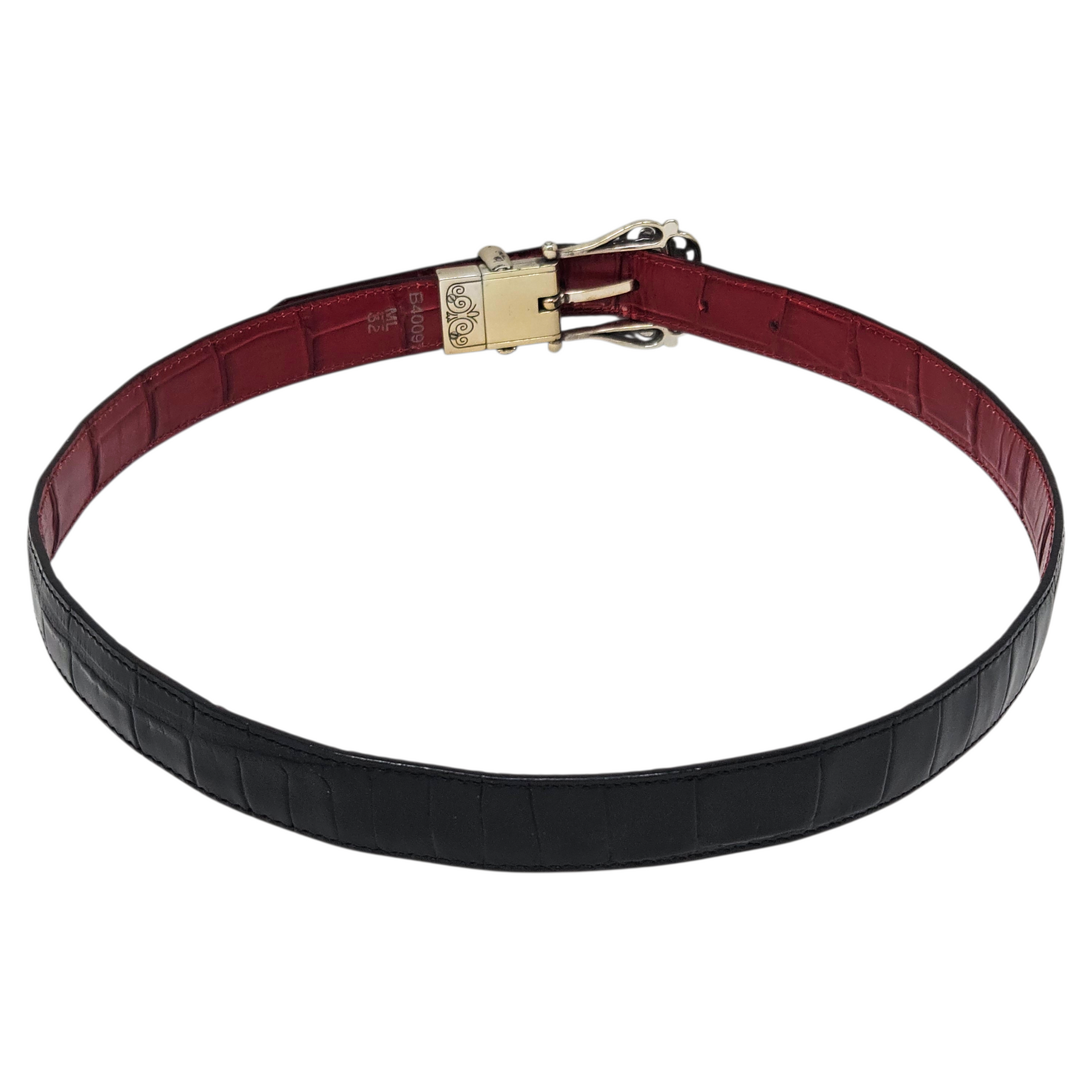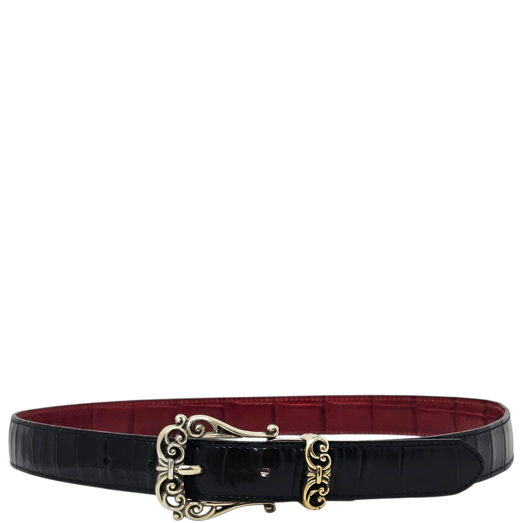Materials: Black & red emboosed leather with silver-tone hardware.