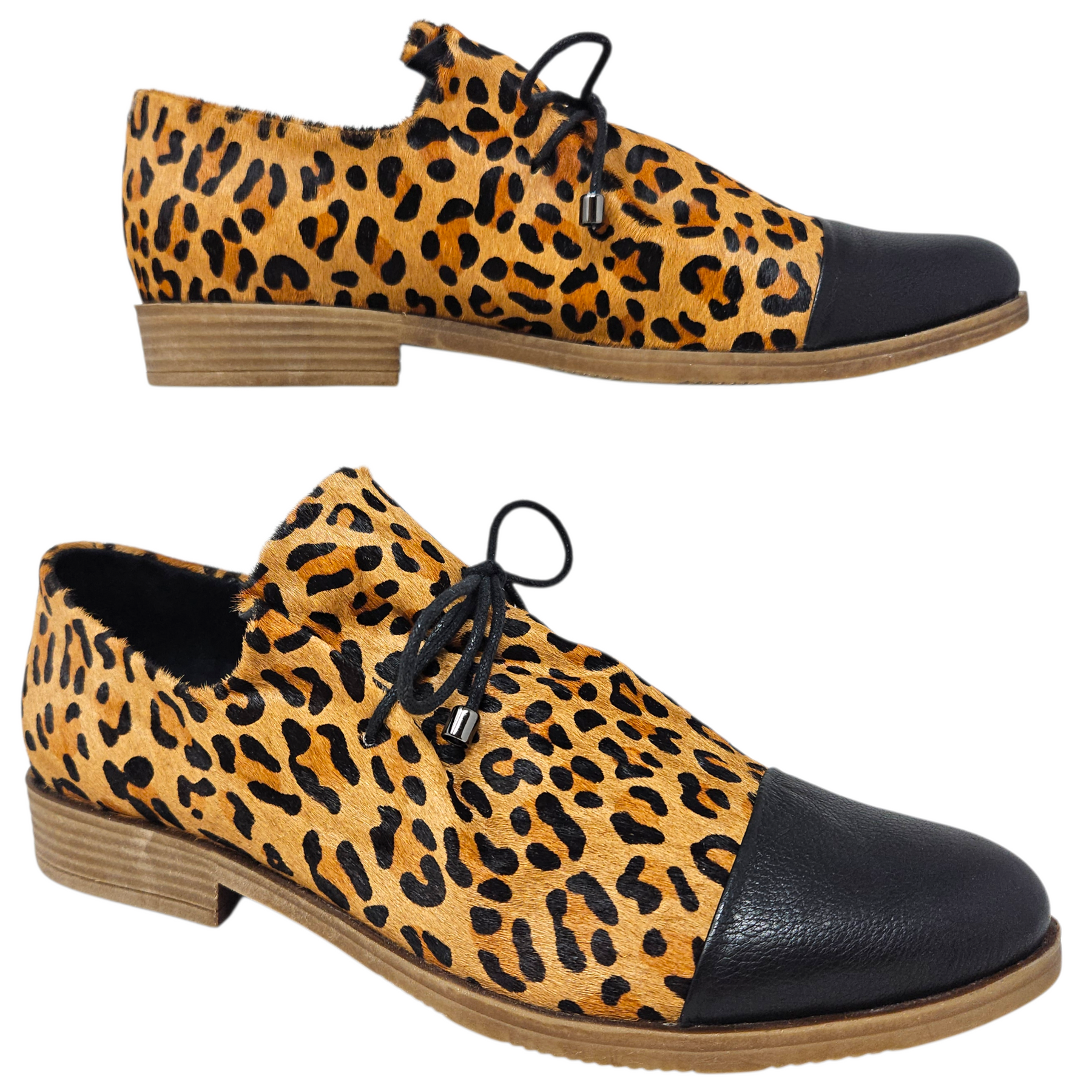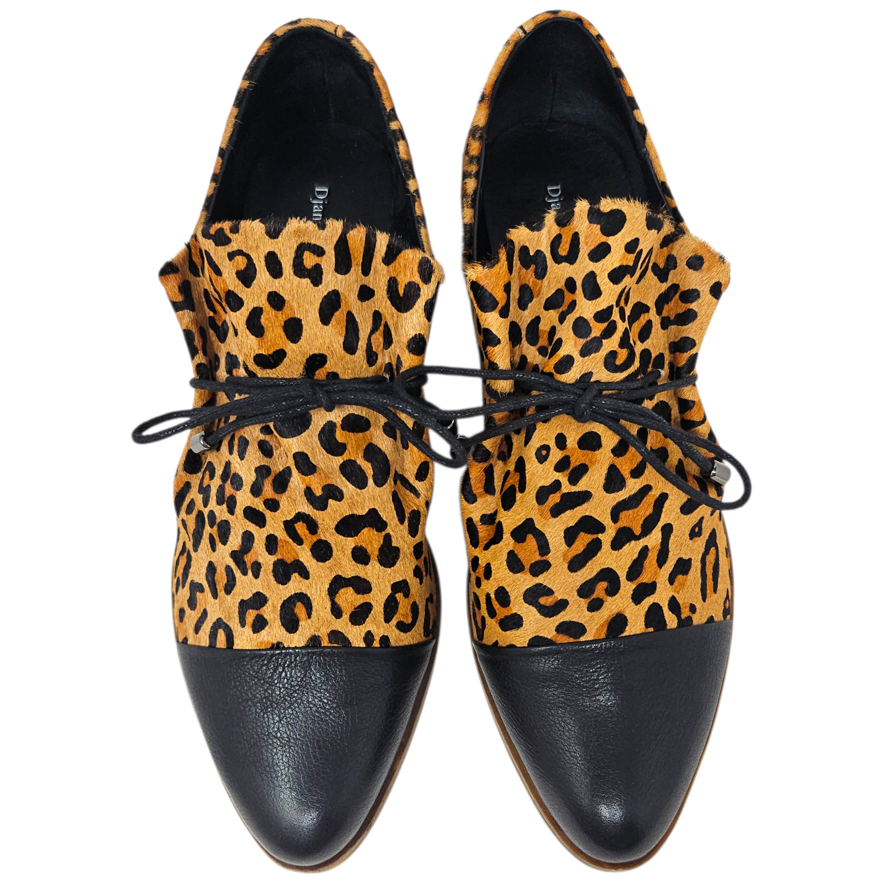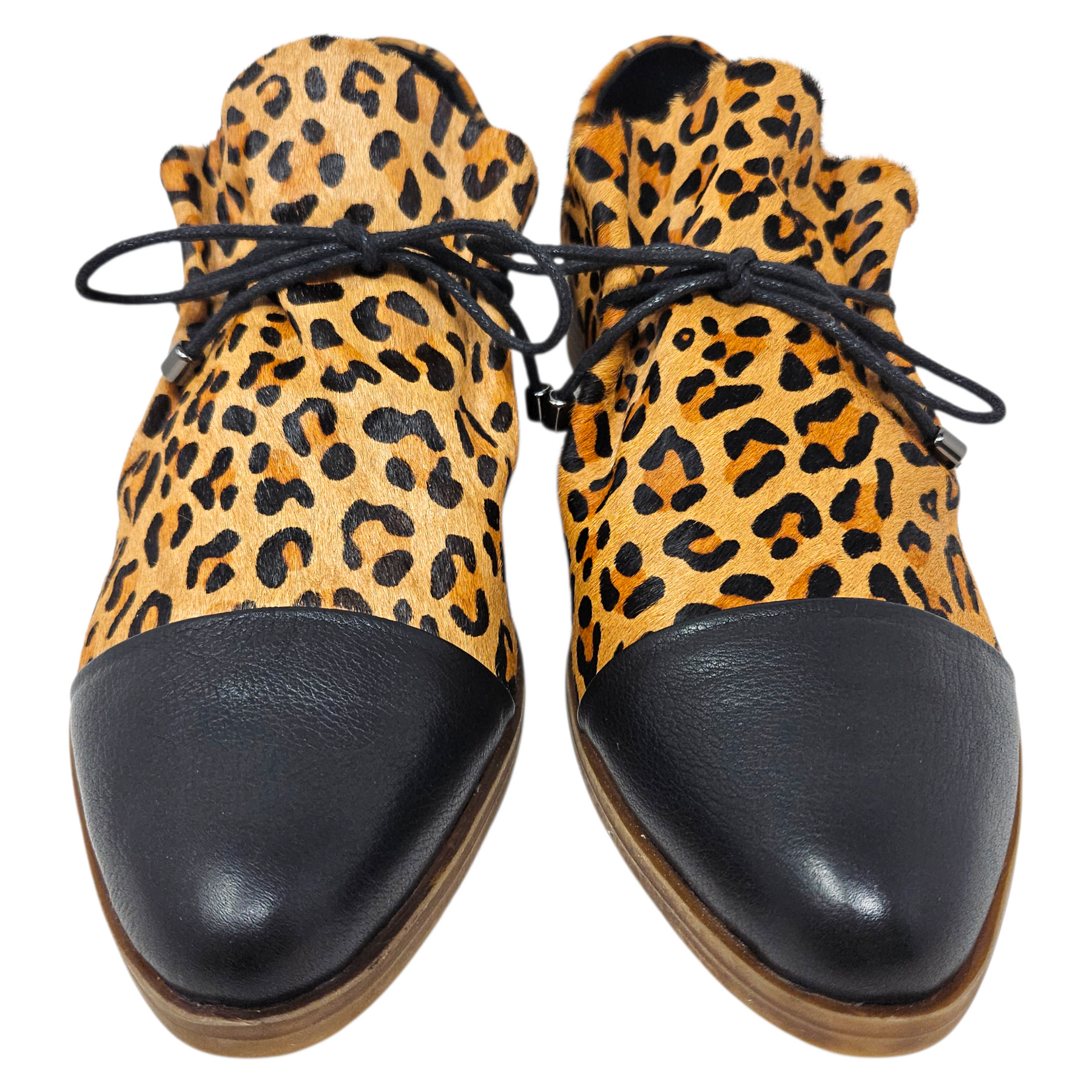 - Leopard-printed calfhair.