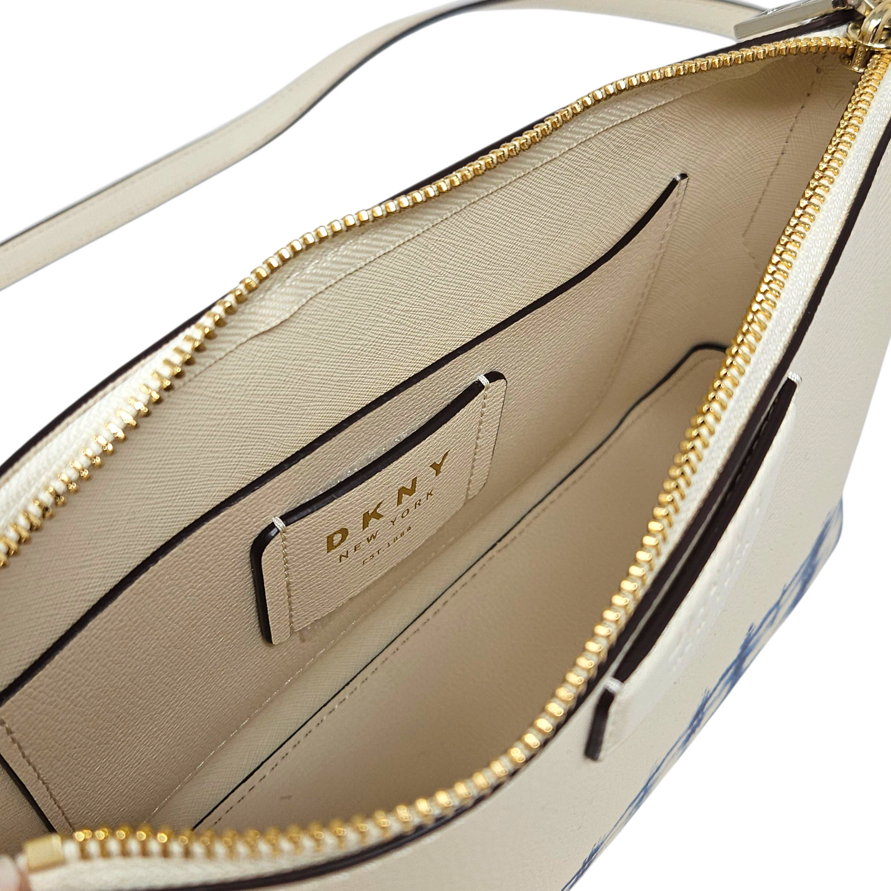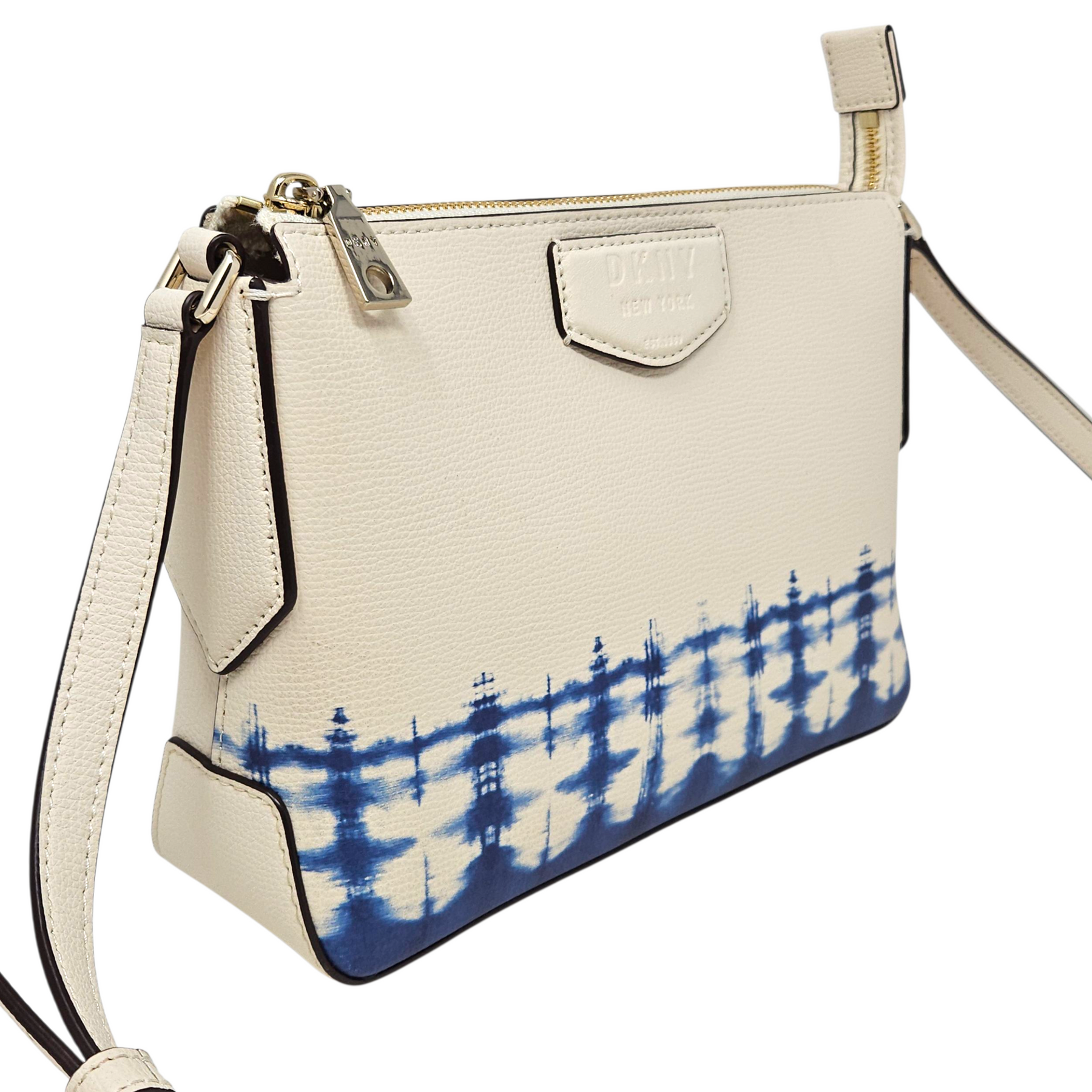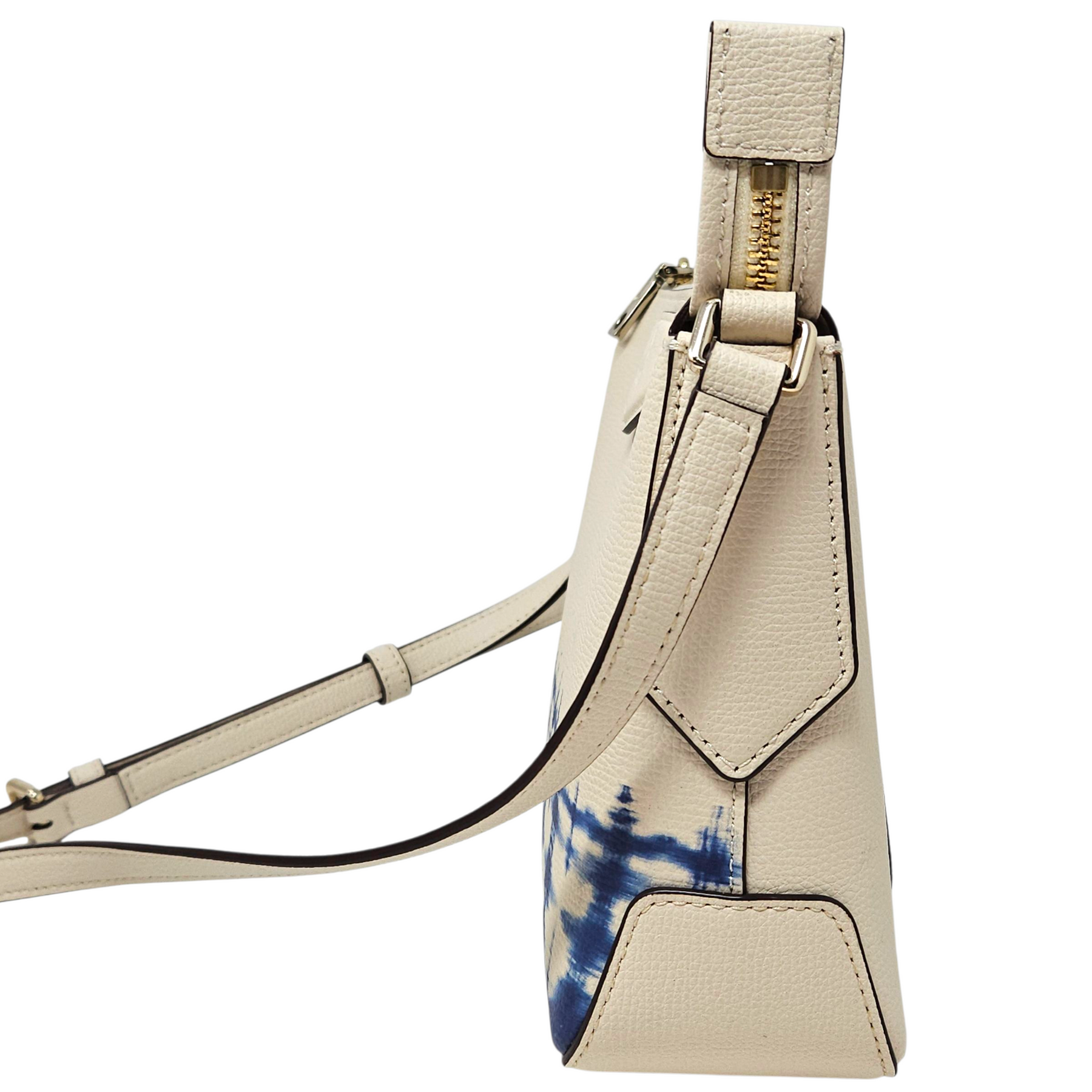 Materials: Cream & blue pebbled leather with gold-tone hardware.