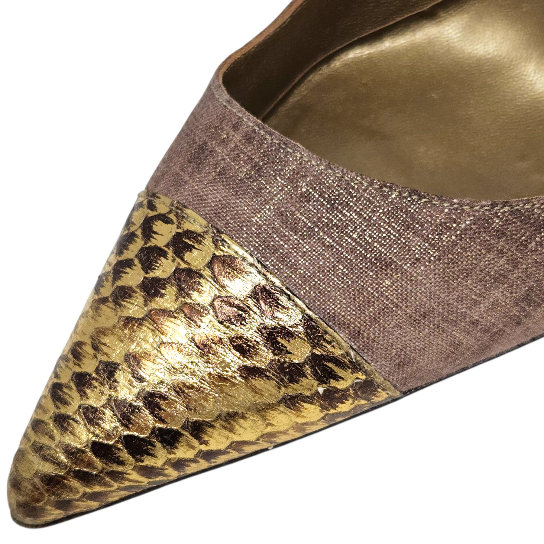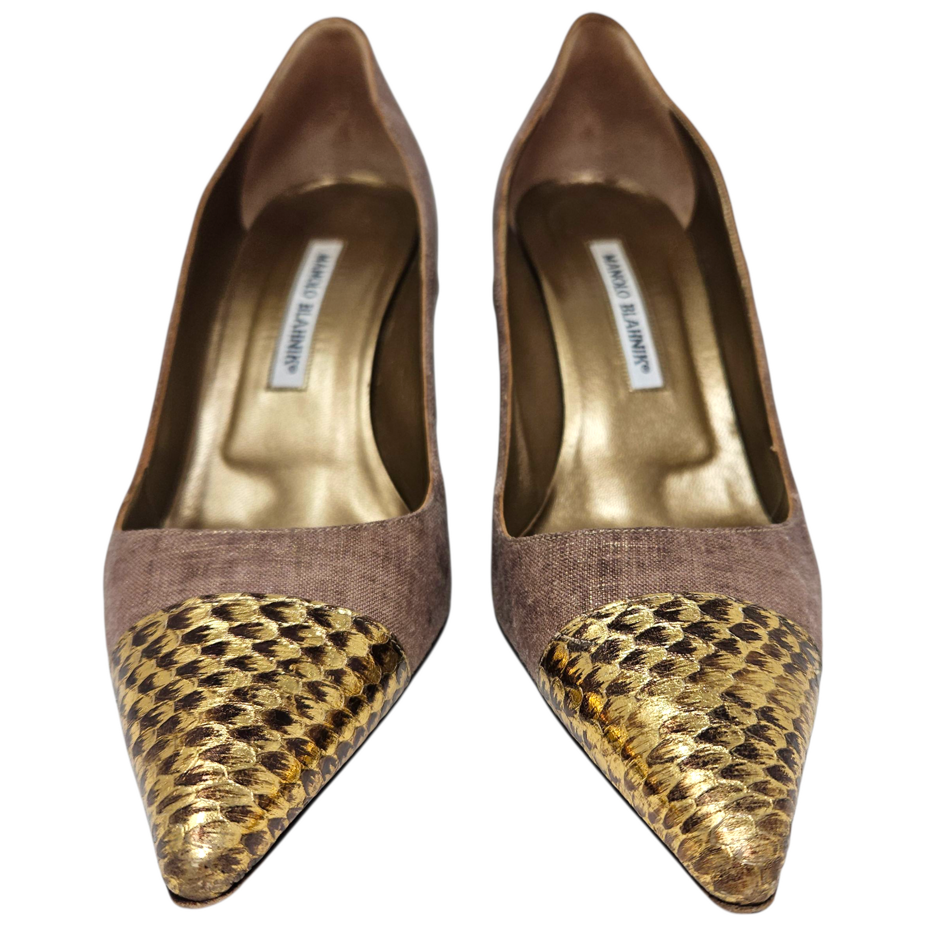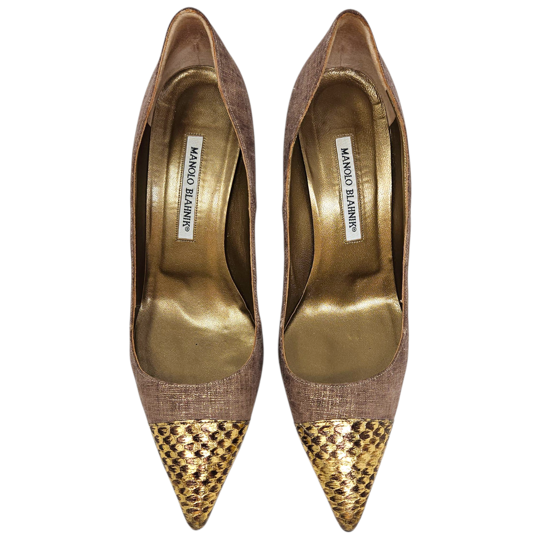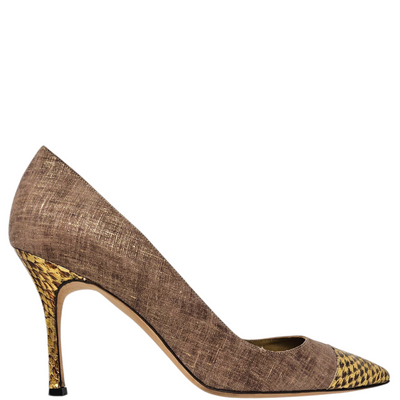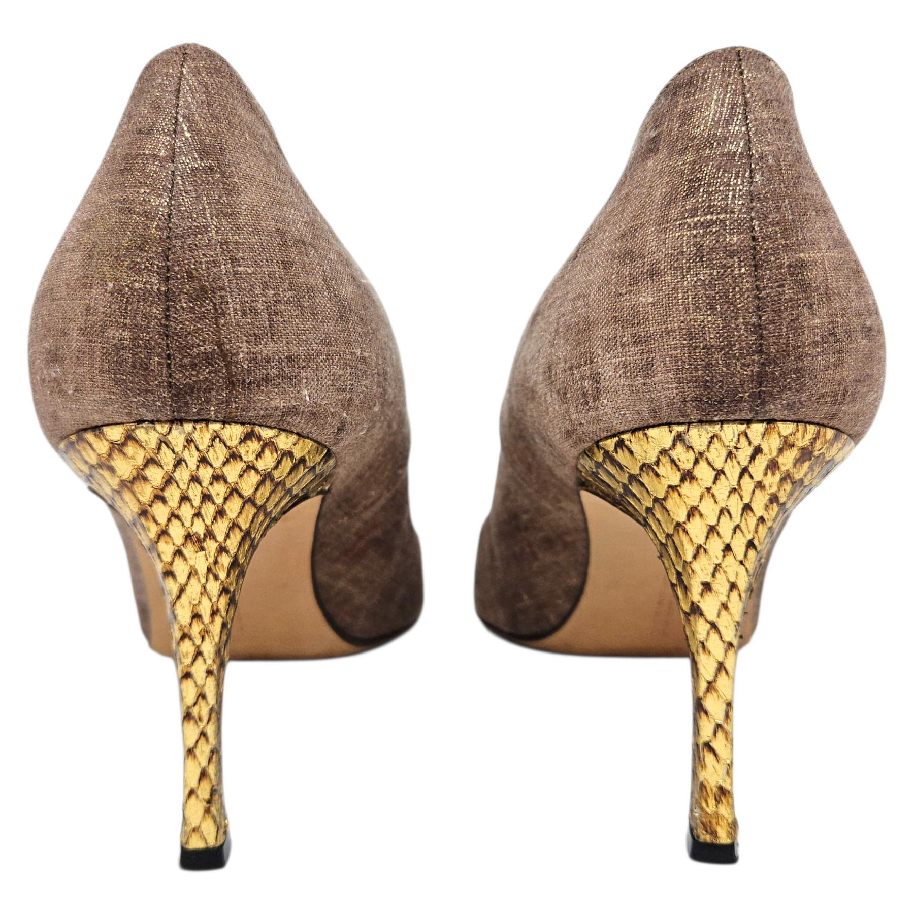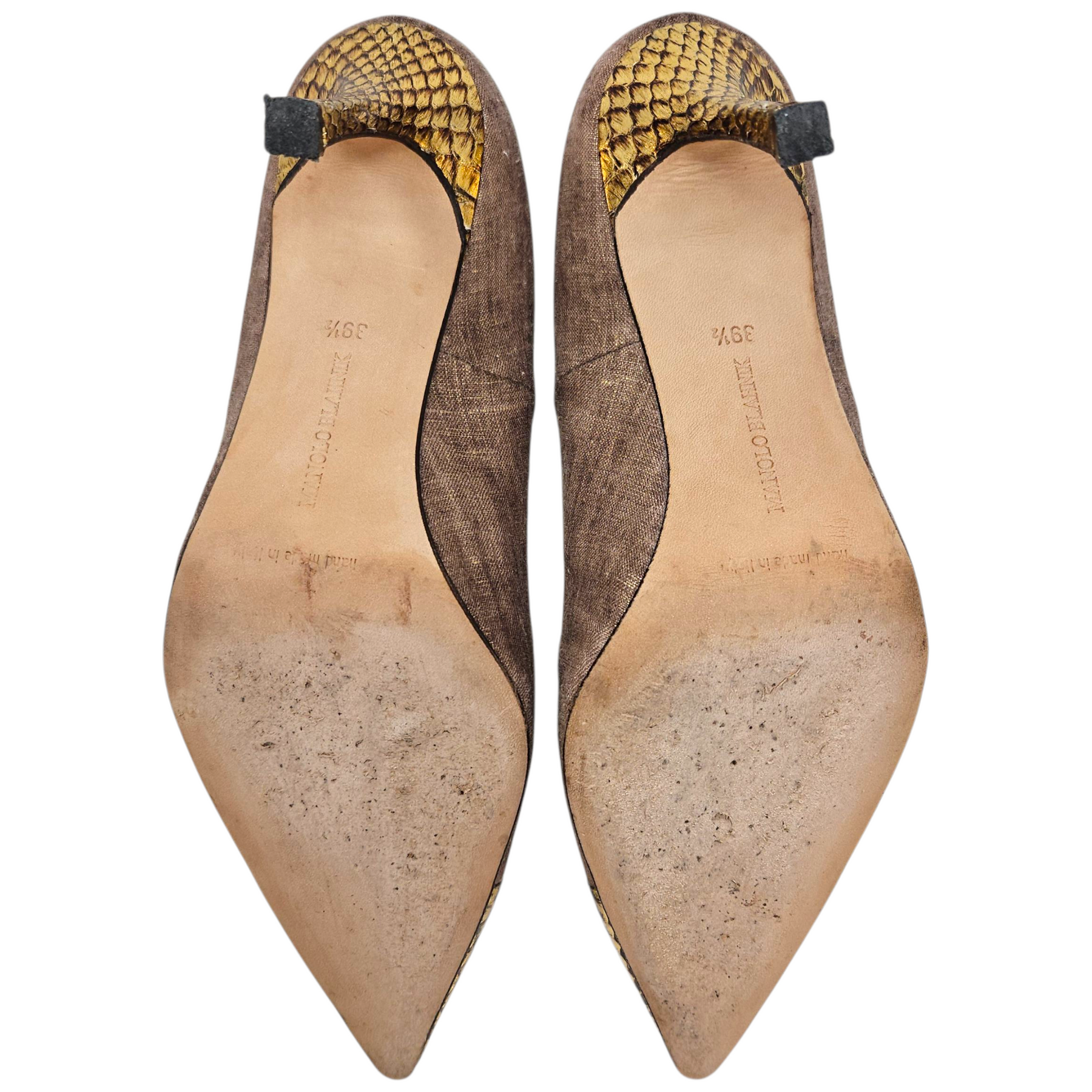Manolo Blahnik "Bipunta" Linen & Leather Pumps size 39.5=8.5/9.