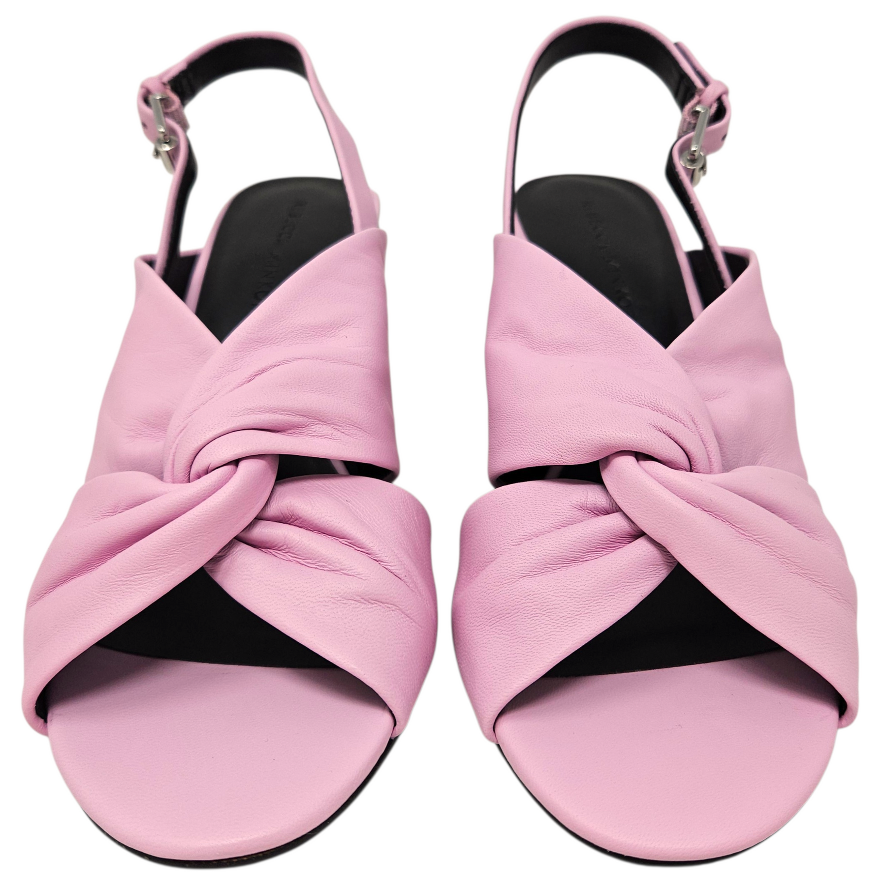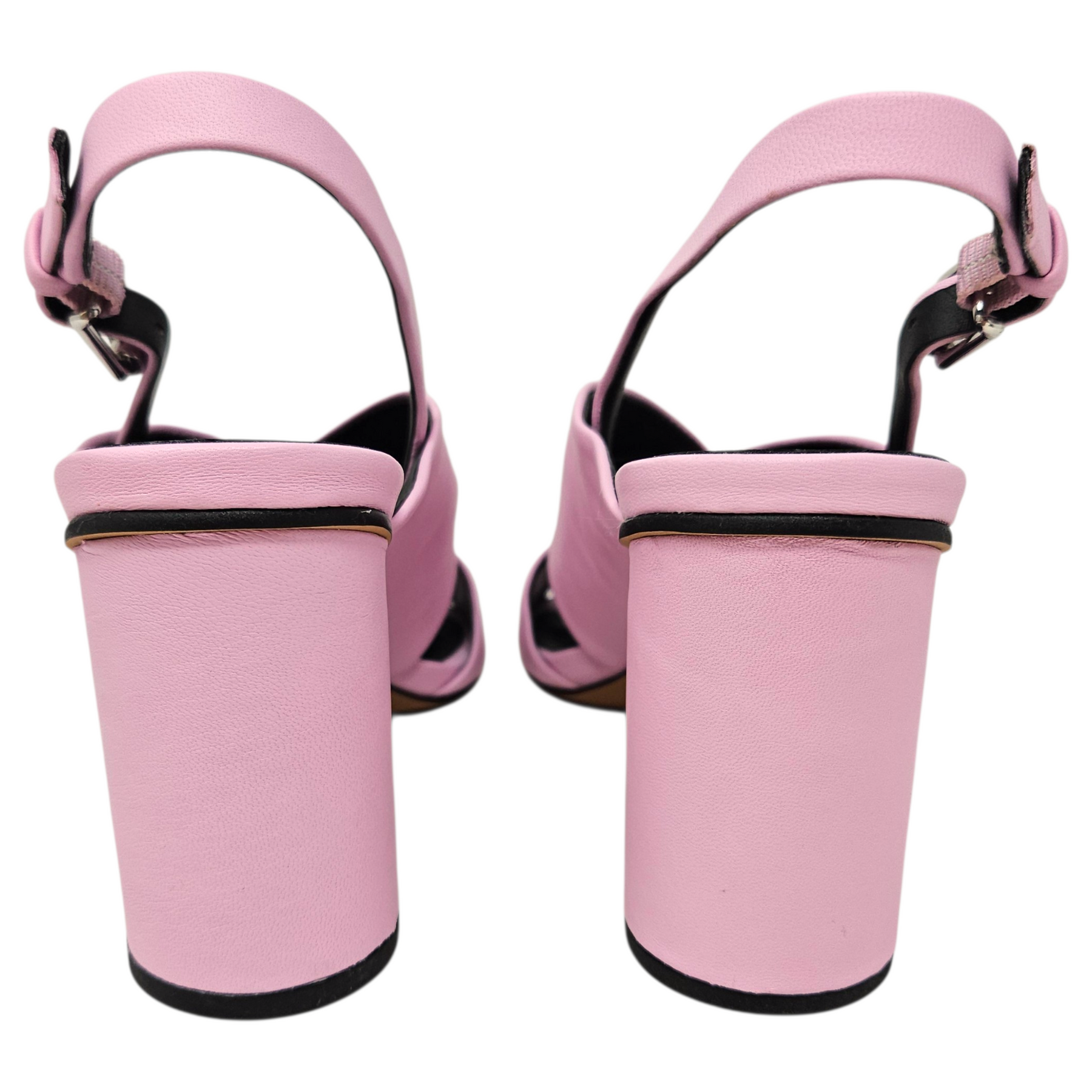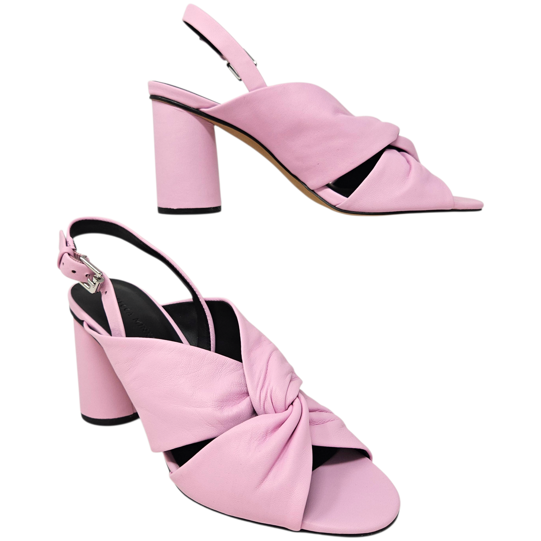 Materials: Soft pink leather with silver-tone hardware.