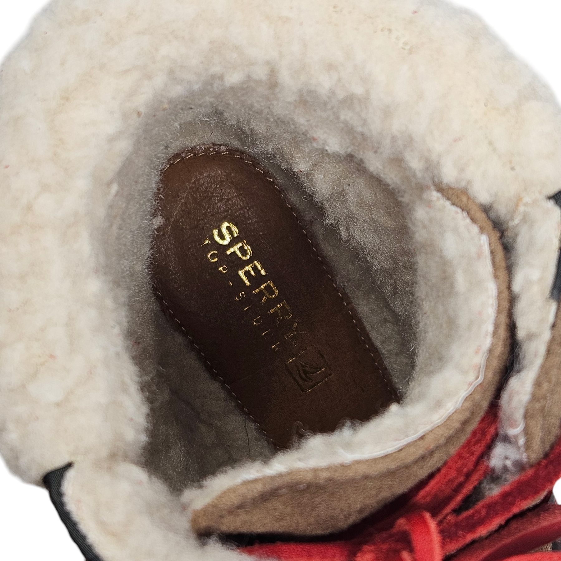 - Cream shearling lining.