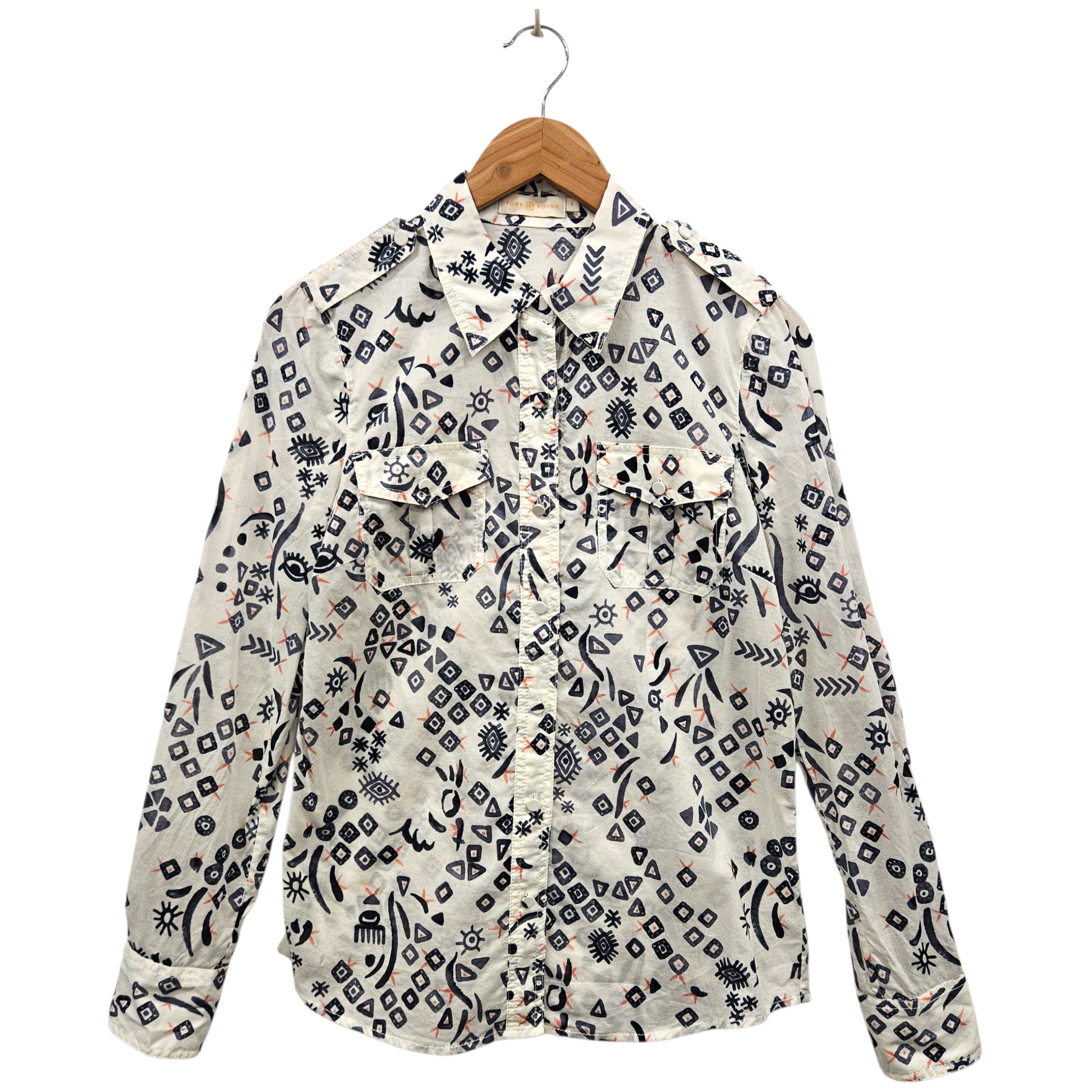 Regular price $75.00Tory Burch Printed Cotton Shirt size 8/medium.