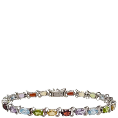 Sterling Silver & Mixed Gemstones Tennis Bracelet