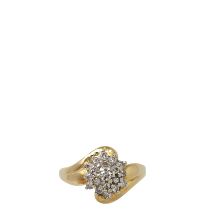 14K Gold & Diamond Cluster Ring - Size 7.25-7.5
